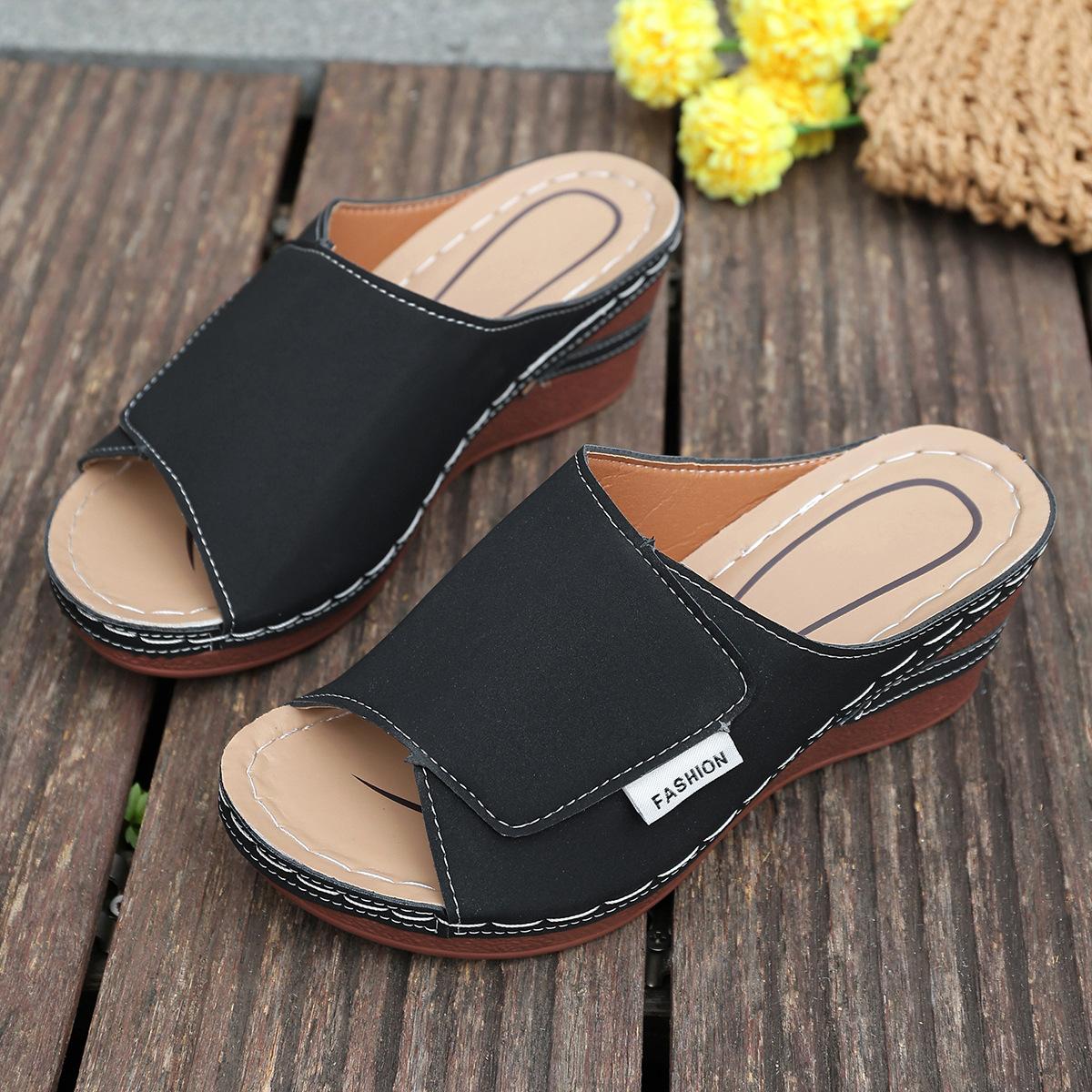 Pantuflas Casuales de Plataforma Gruesa Talla Grande Transfronterizas Mujer 2025 Nuevo Estilo de Una Tira Color Sólido Sencillas Moda Pantuflas Boca de Pez Venta al por Mayor