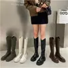 Zapatos holgados de moda con forro polar, botas de caballero caqui de corte ajustado, otoño e invierno, delgadas, nuevas, de gamuza, atractivas, botas largas para mujer