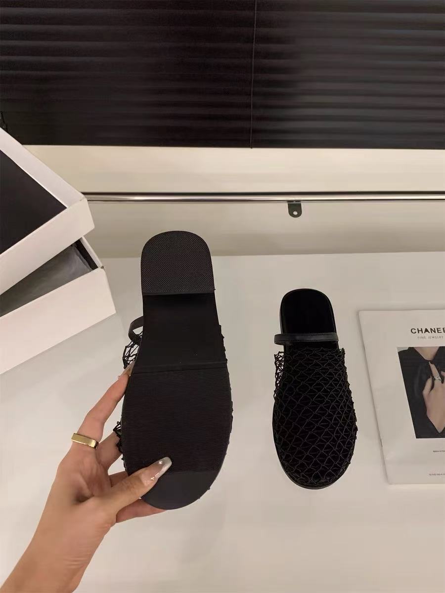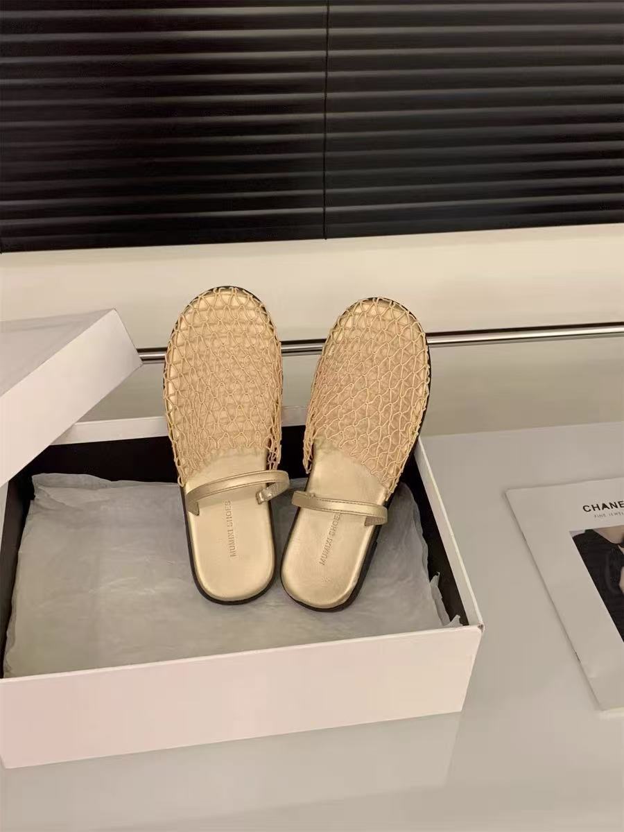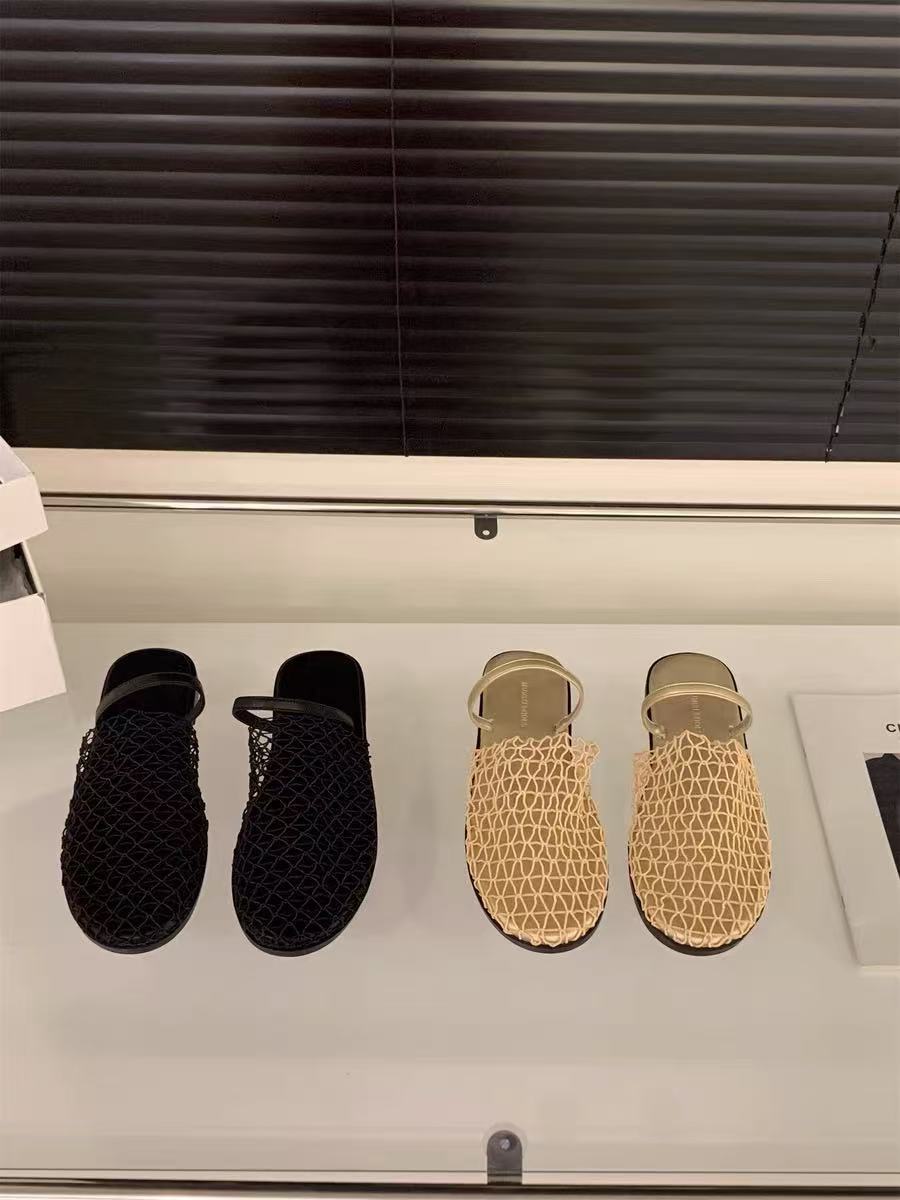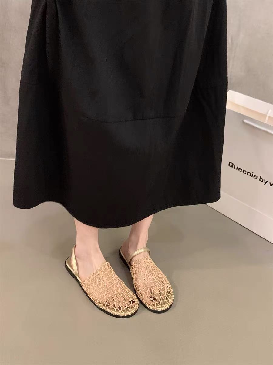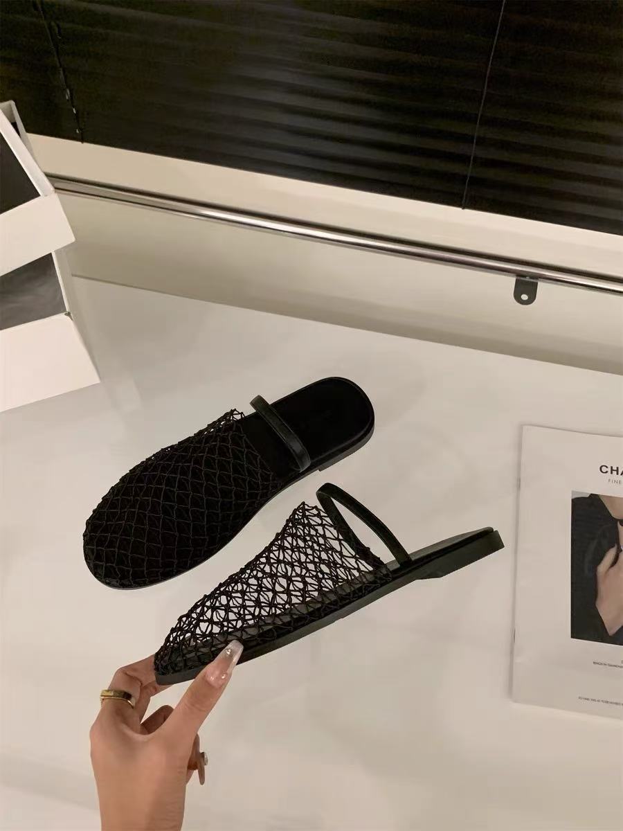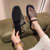 Pantuflas Casuales de Estilo Coreano de Una Tira Verano Nuevo Diseño de Moda Malla Tejida Calado Pantuflas de Punta Cerrada