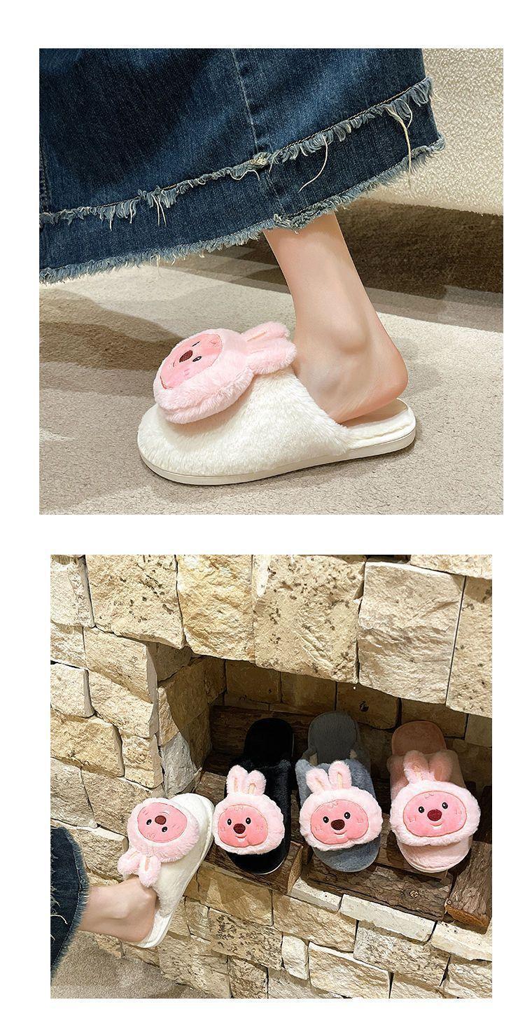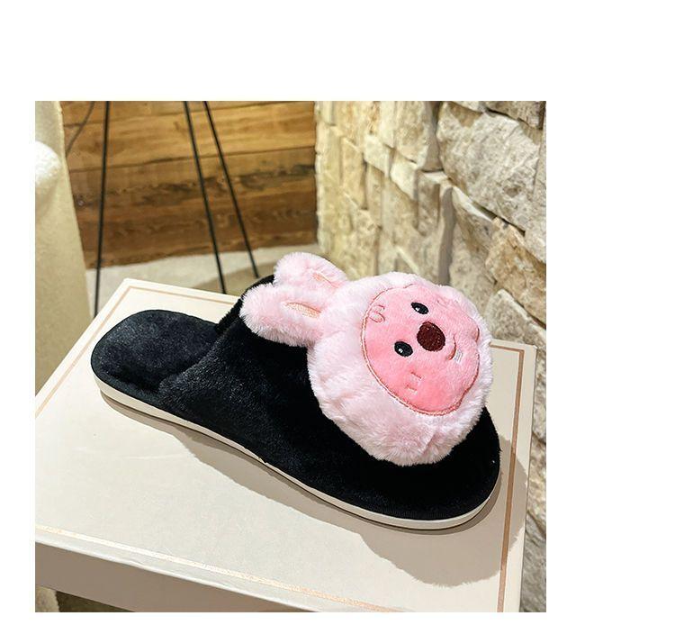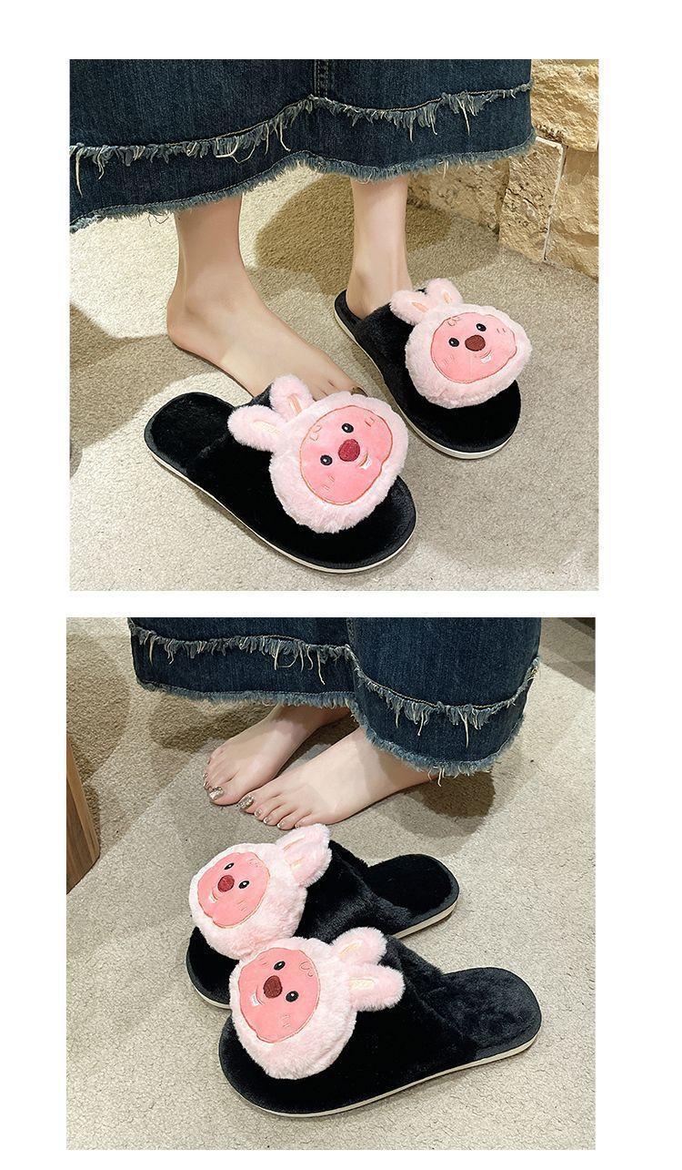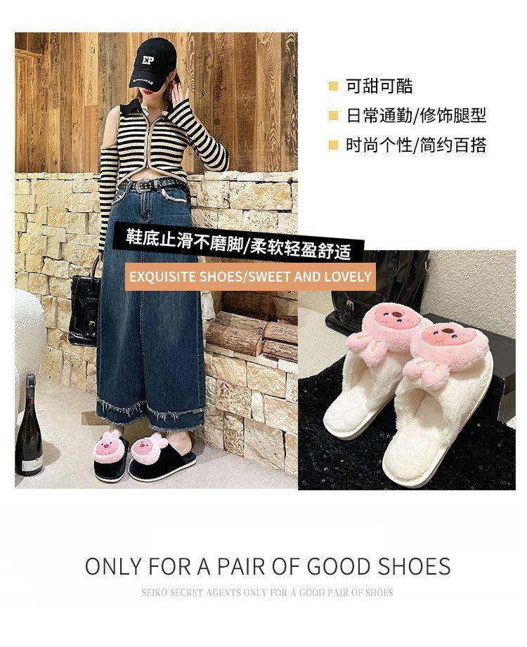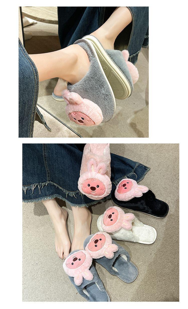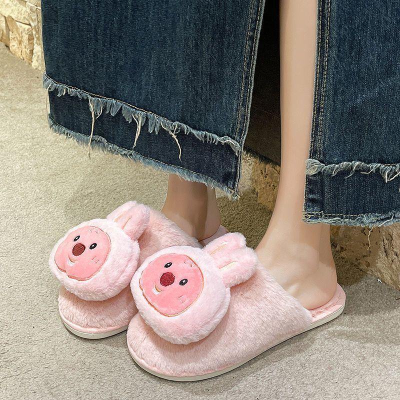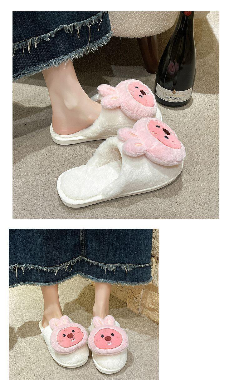 Otoño/Invierno 2025 Nuevas Pantuflas de Algodón para Pareja Encantadora Antideslizantes de Dibujos Animados para Estudiantes Pantuflas Versátiles Peludas Ropa de Exterior para Mujer