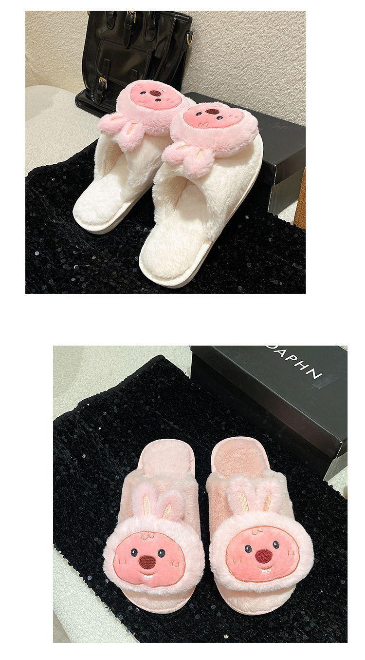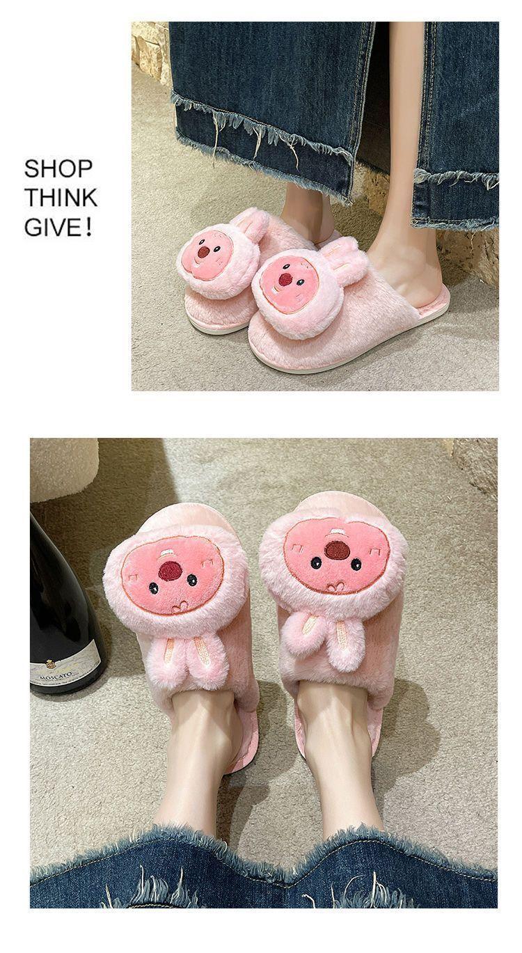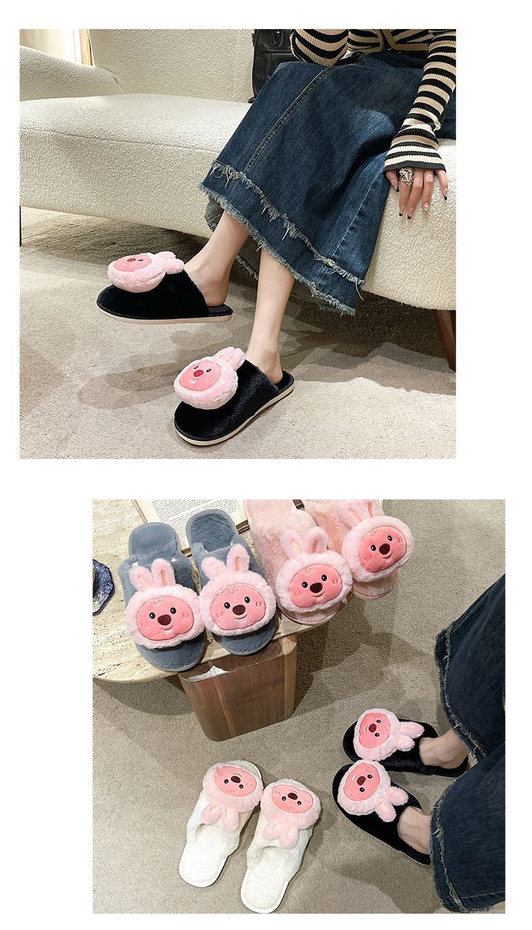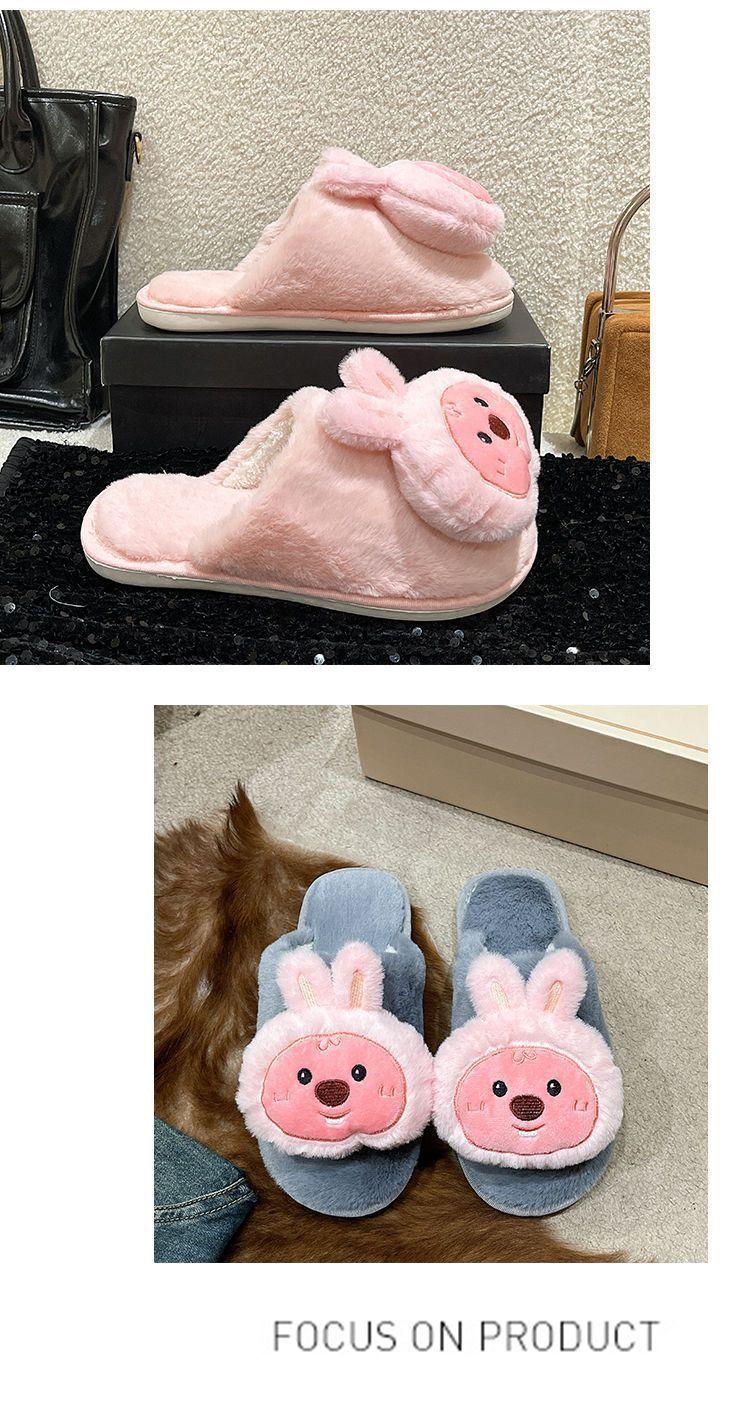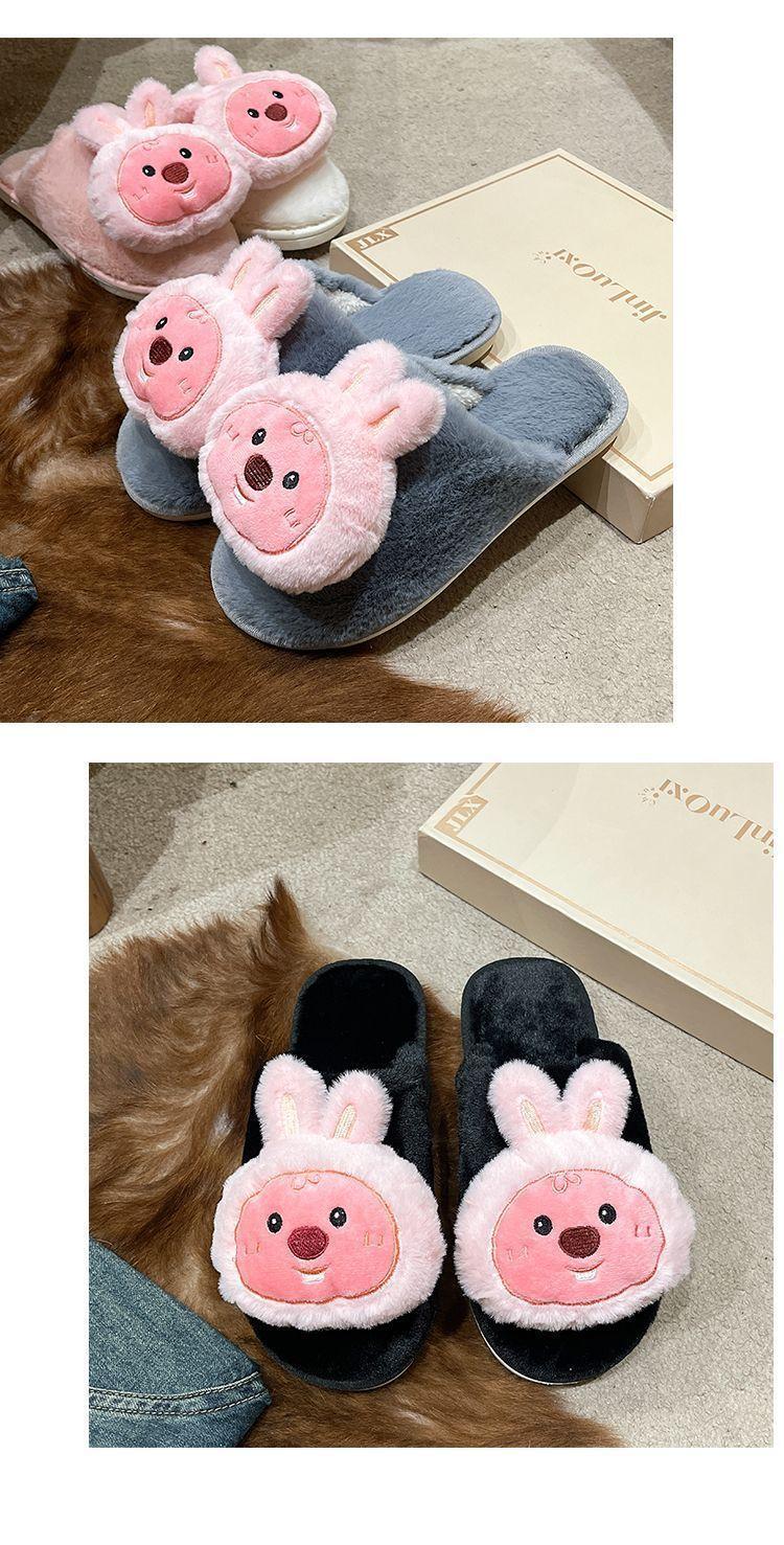 Otoño/Invierno 2025 Nuevas Pantuflas de Algodón para Pareja Encantadora Antideslizantes de Dibujos Animados para Estudiantes Pantuflas Versátiles Peludas Ropa de Exterior para Mujer