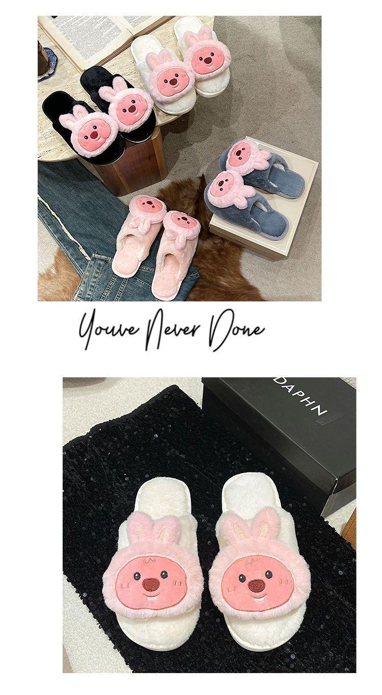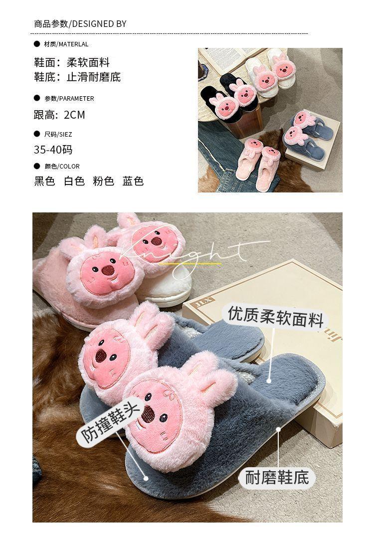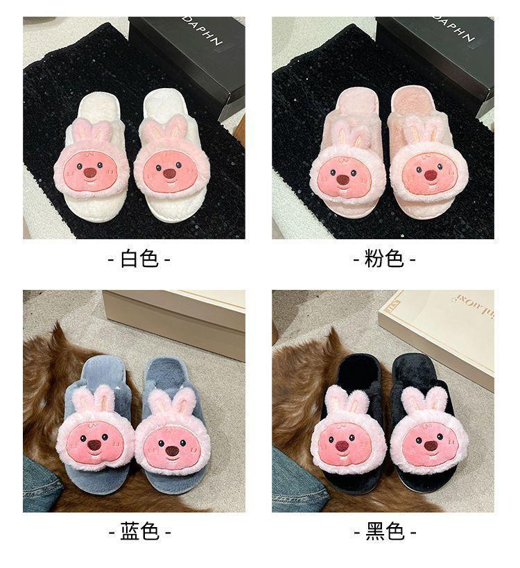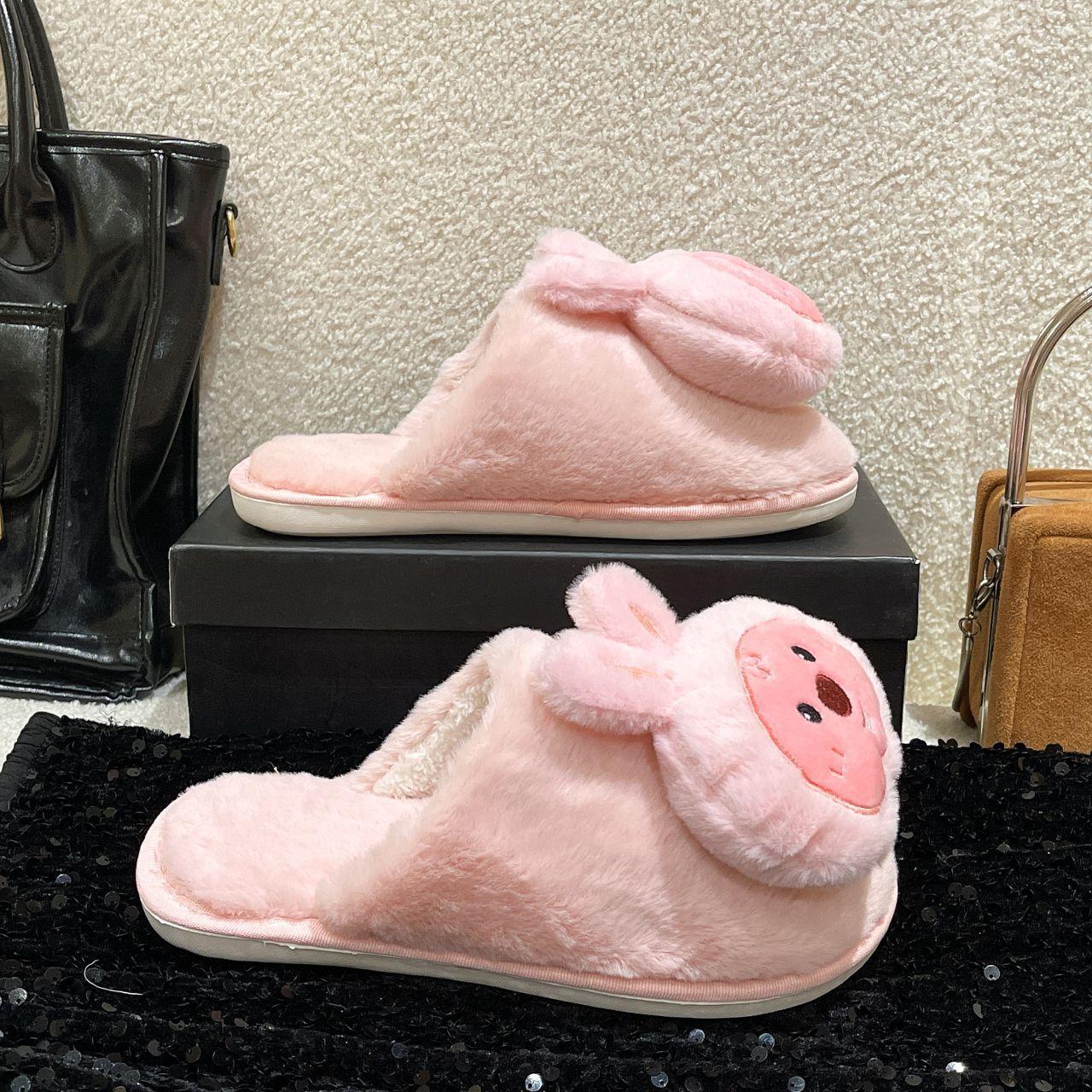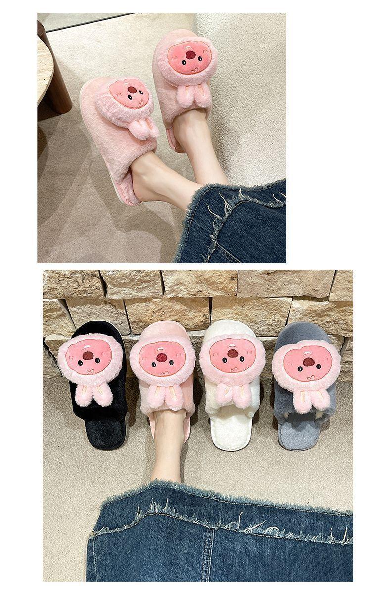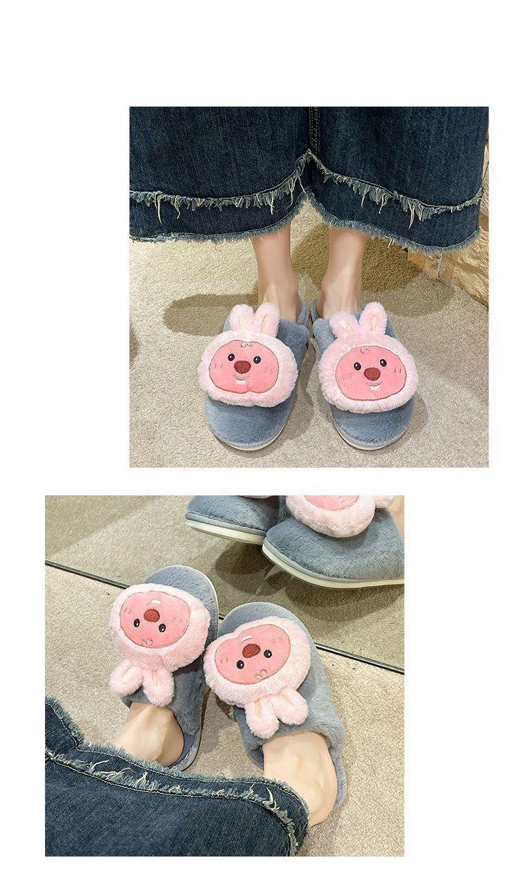 Otoño/Invierno 2025 Nuevas Pantuflas de Algodón para Pareja Encantadora Antideslizantes de Dibujos Animados para Estudiantes Pantuflas Versátiles Peludas Ropa de Exterior para Mujer