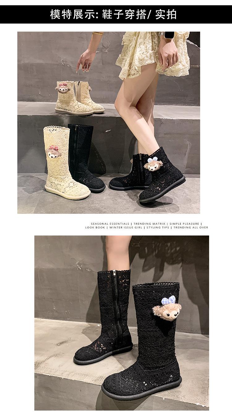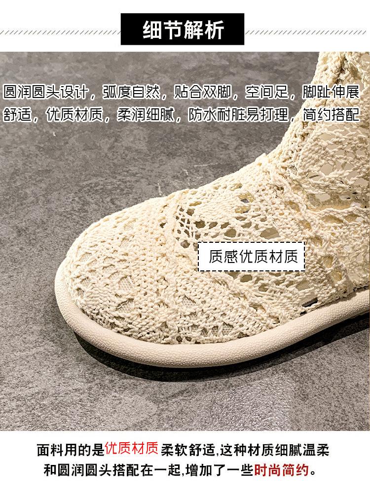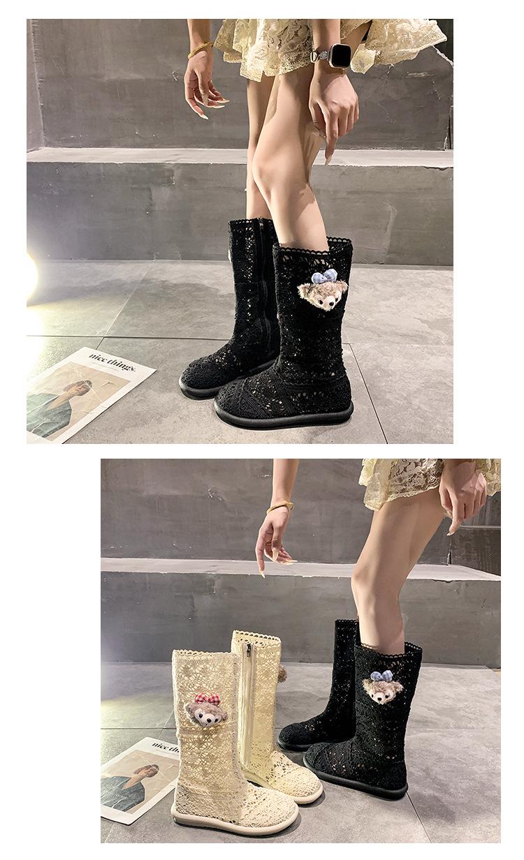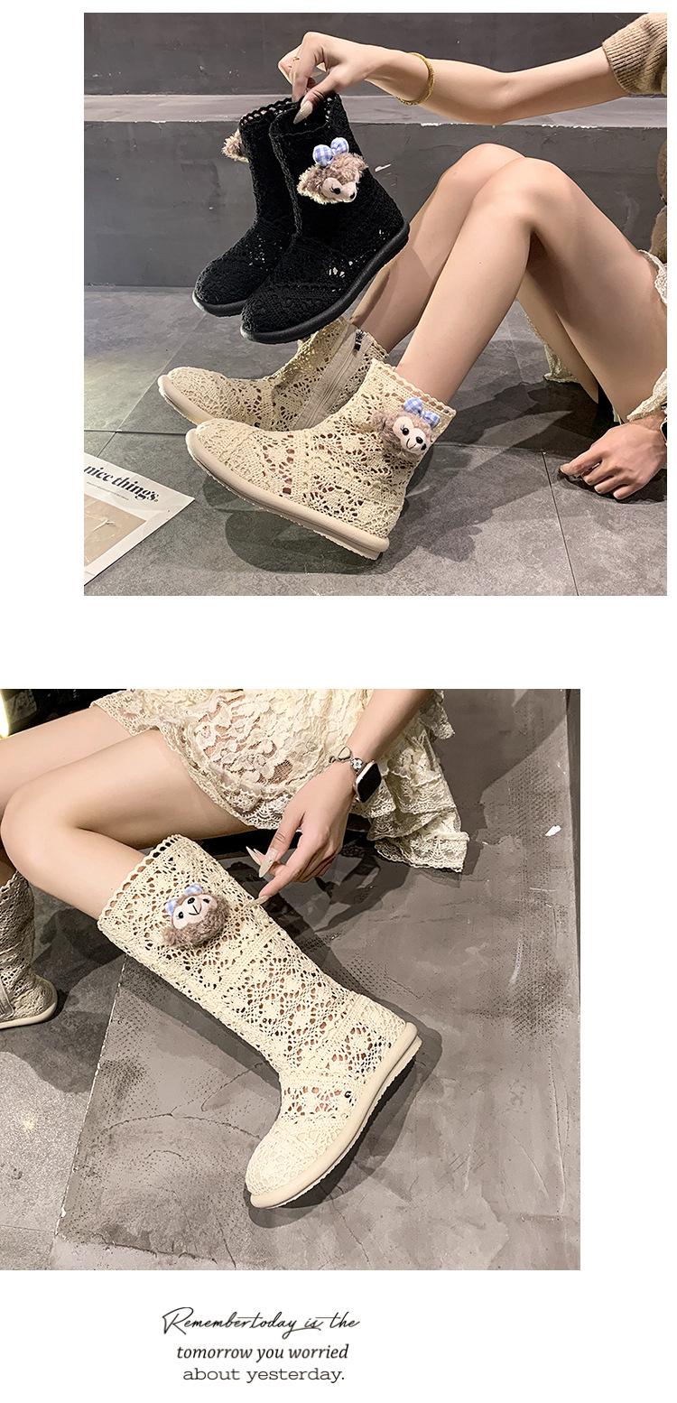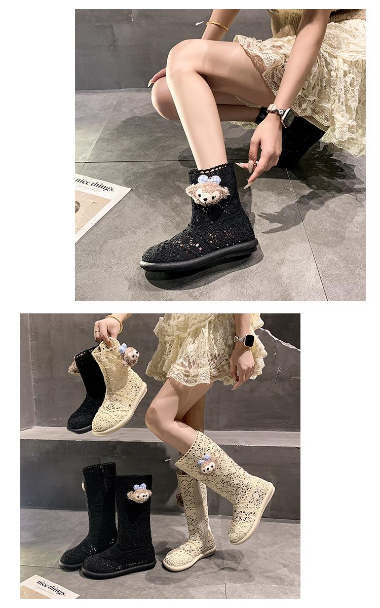 Botas Frescas de Verano Mujer 2025 Nuevas Malla Fina Botas Largas Martin Sandalias de Algodón Lino Estilo Literario Mori Botas de Cuero para Mujer