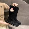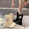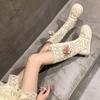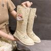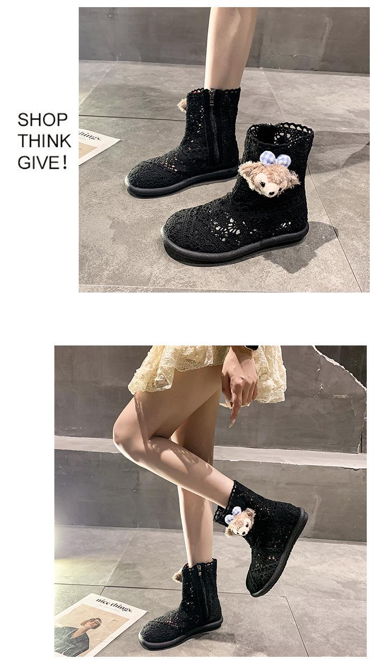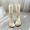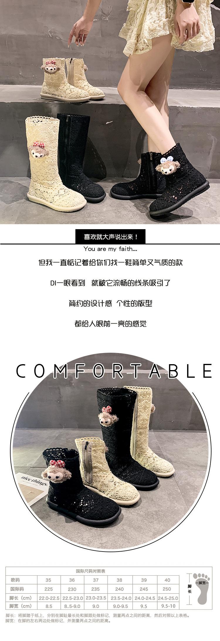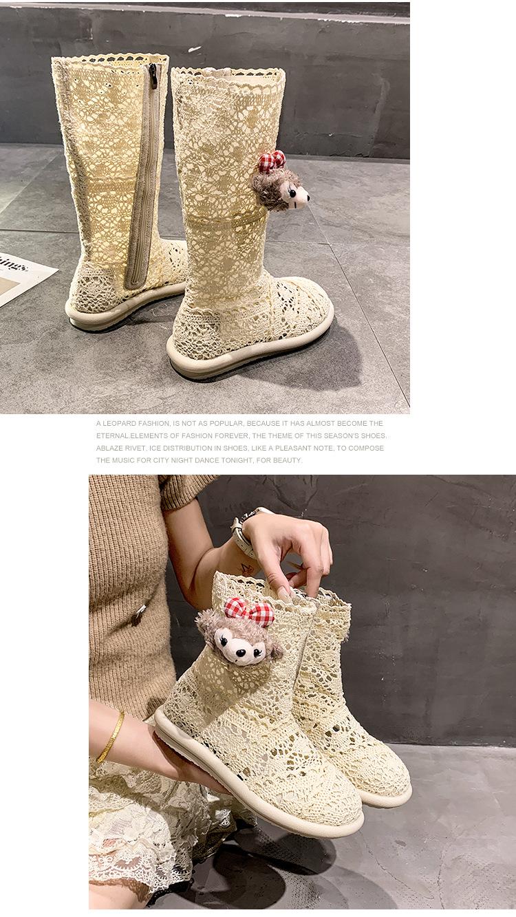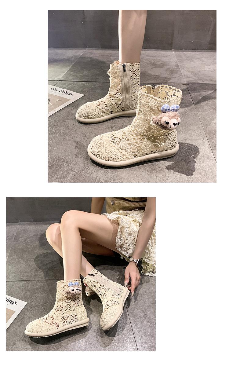 Botas Frescas de Verano Mujer 2025 Nuevas Malla Fina Botas Largas Martin Sandalias de Algodón Lino Estilo Literario Mori Botas de Cuero para Mujer