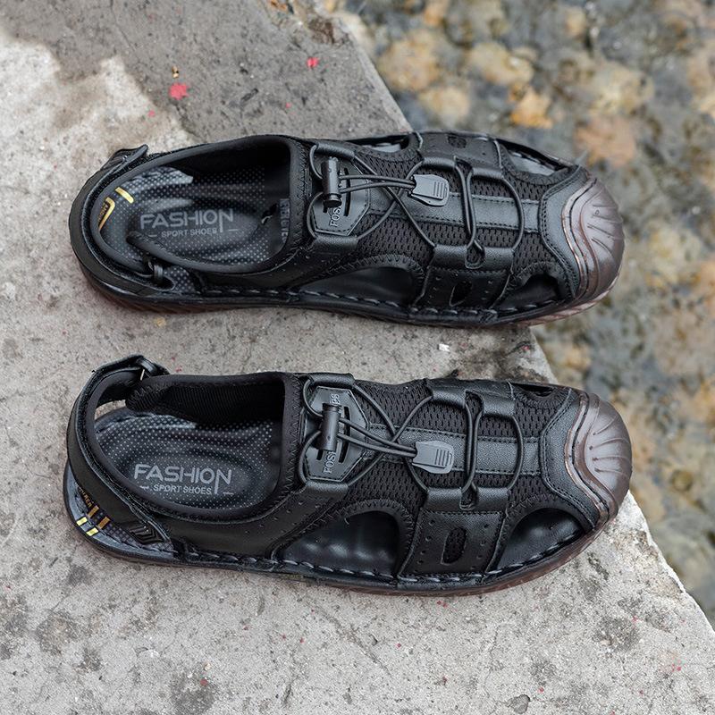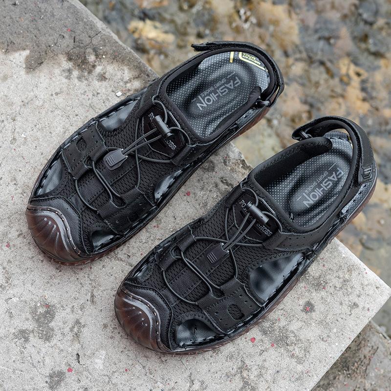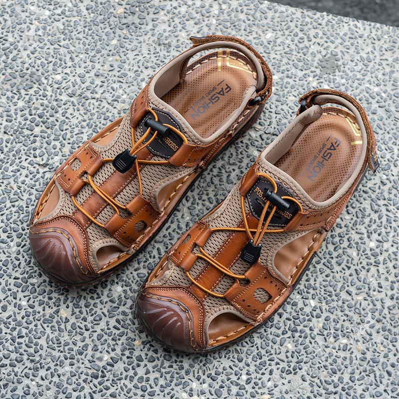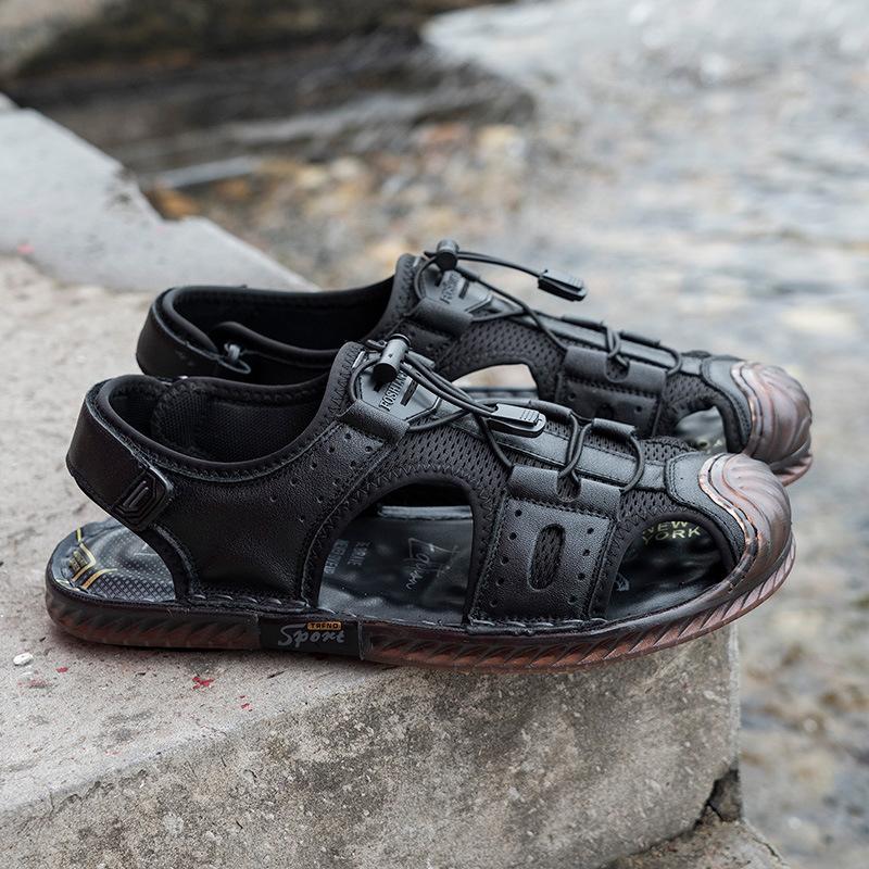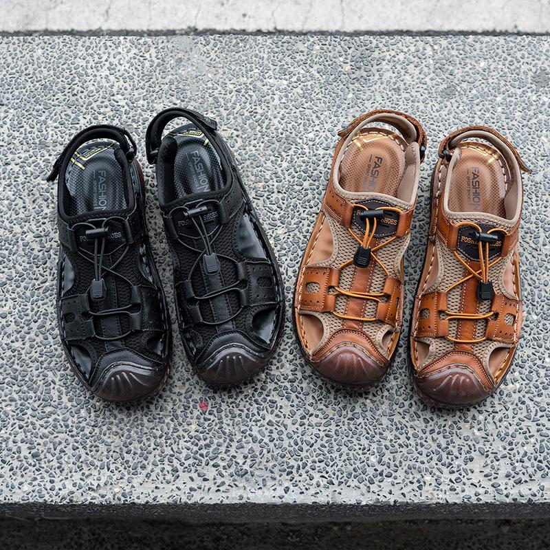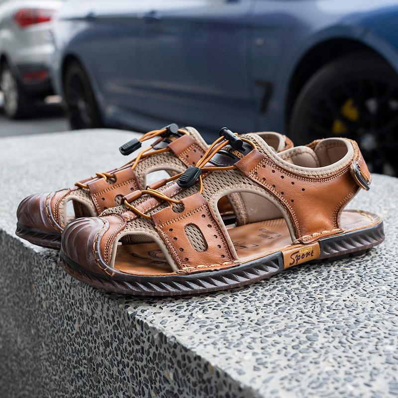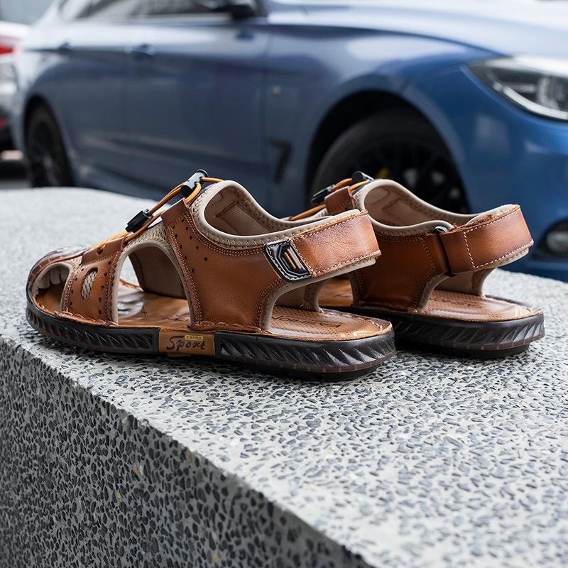Sandalias de Cuero Genuino para Hombre de Piel de Vaca de Primera Capa Sandalias Casuales Nuevas de Verano Antideslizantes para Conducir y Playa