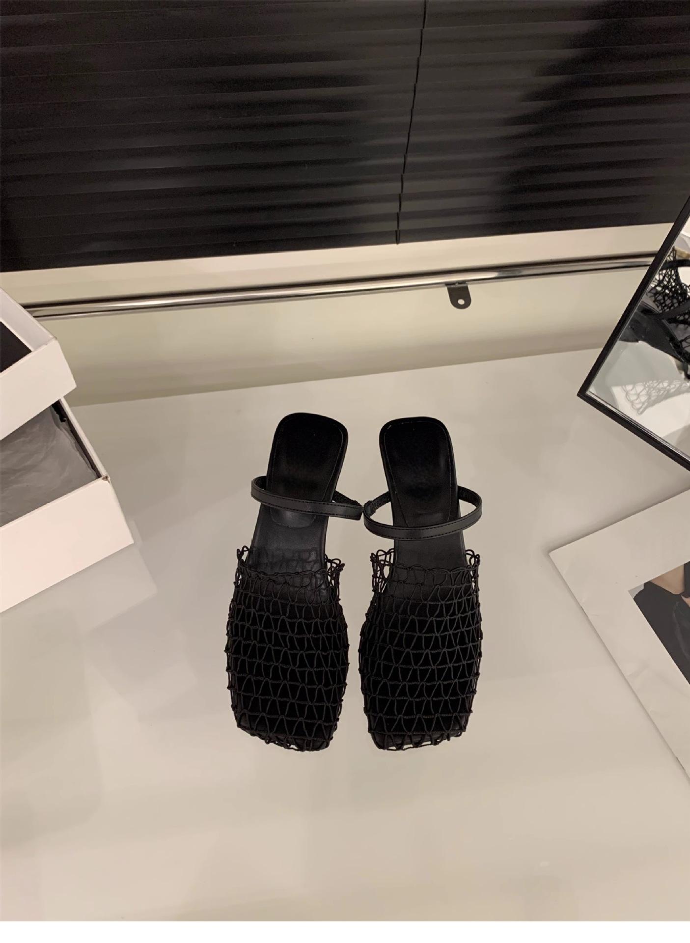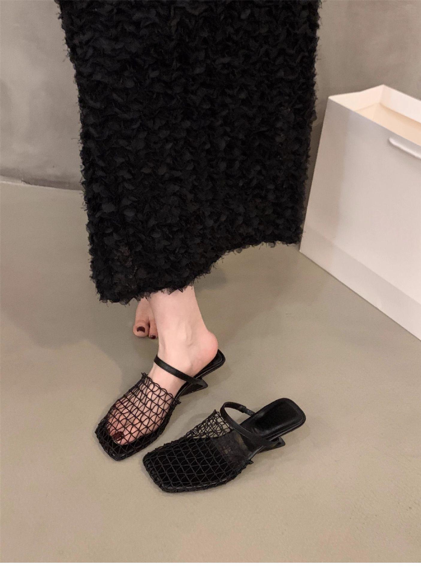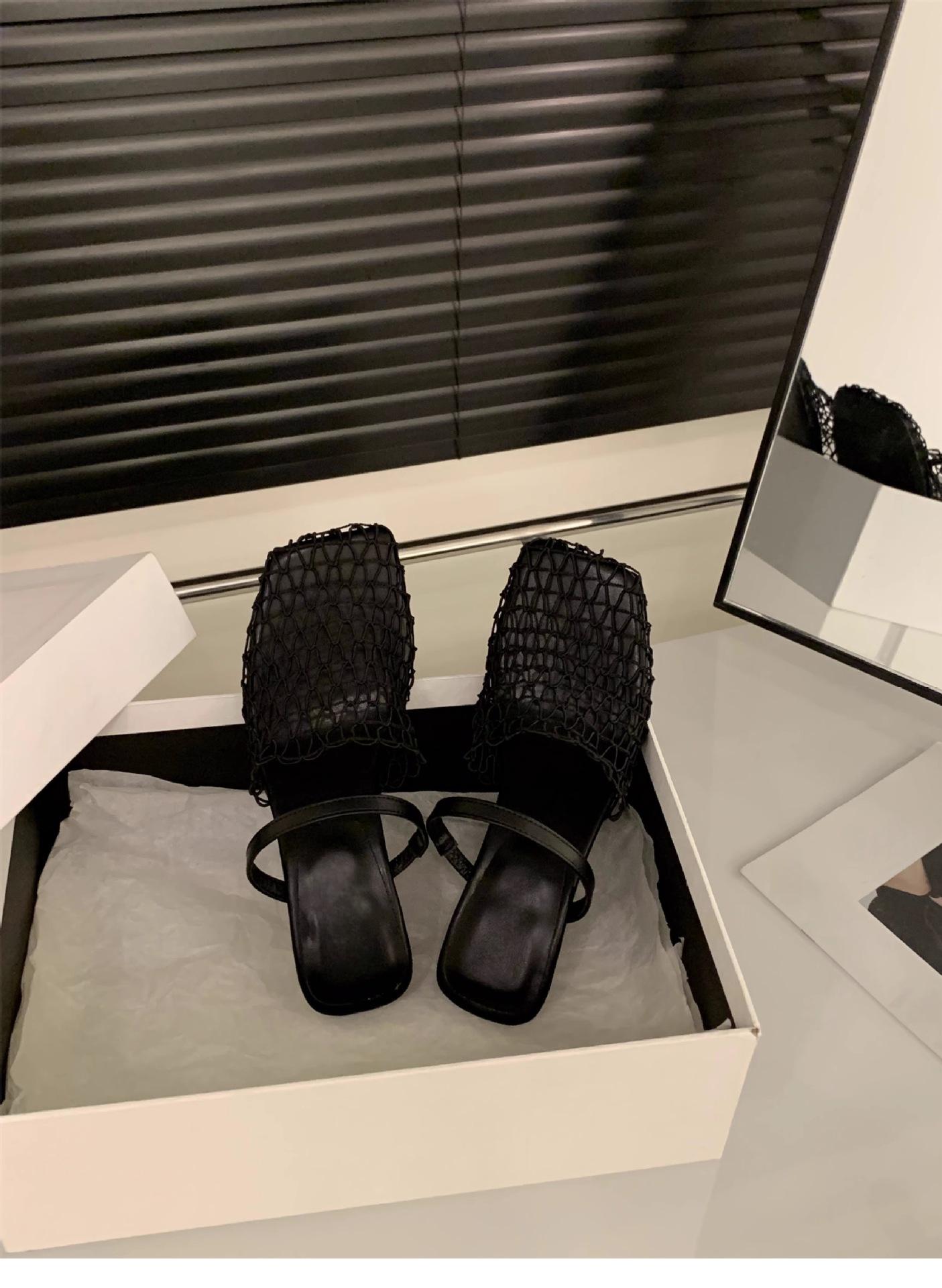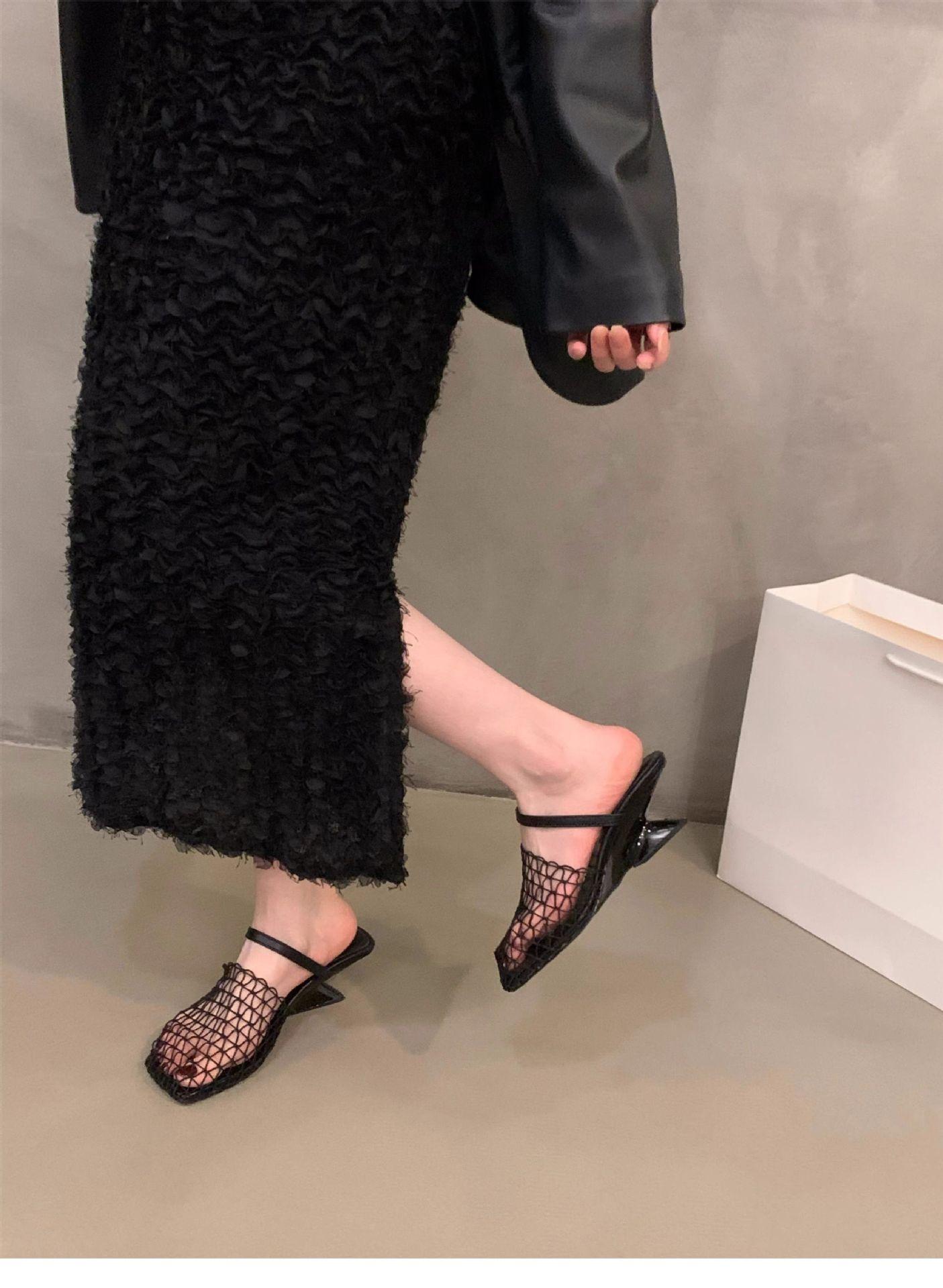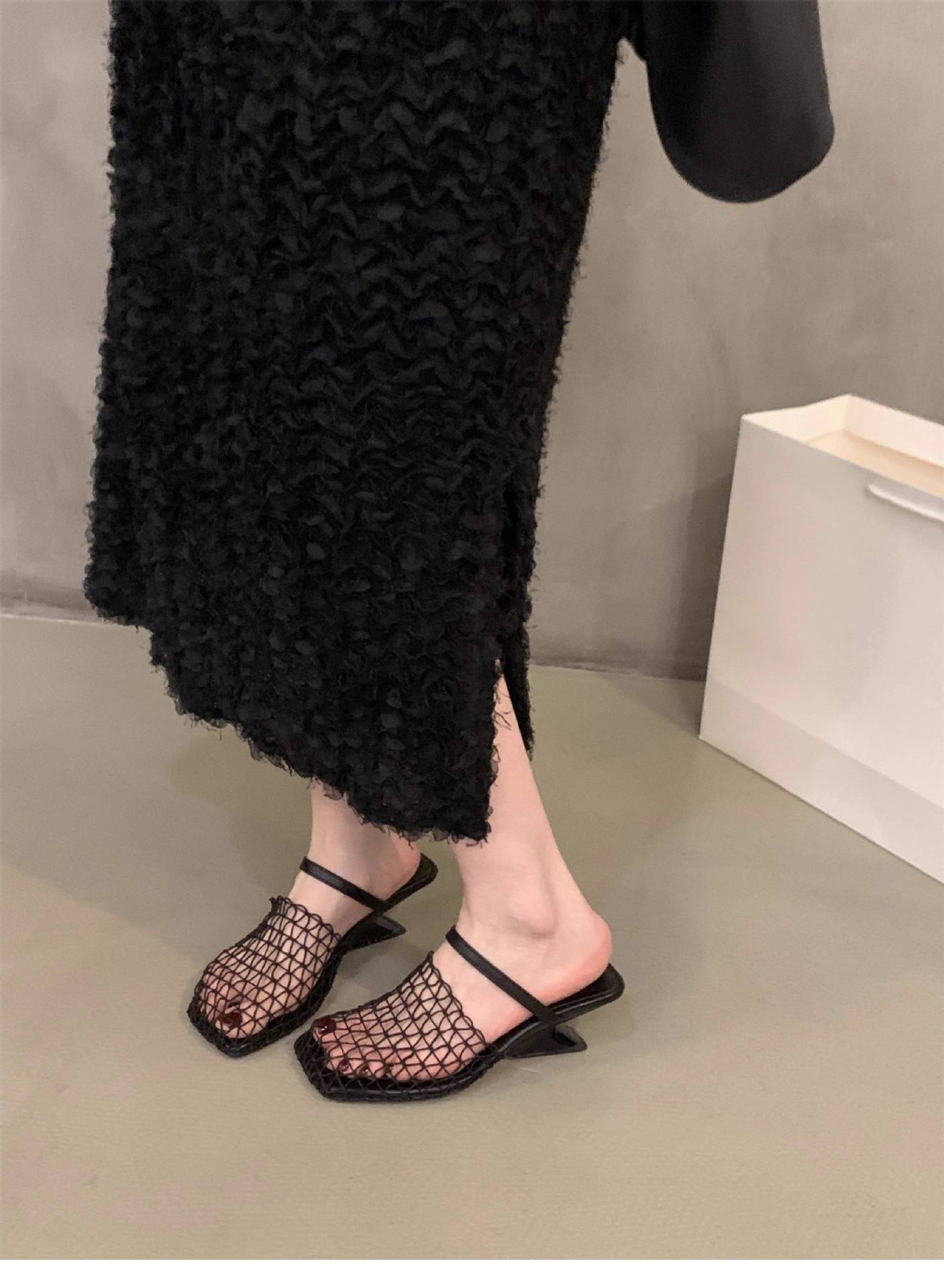 Pantuflas de Malla Trenzada Francesa con Corte en la Puntera para Exterior de Mujer 2025 Verano Nuevas Sandalias Romanas de Tacón Alto con Cuña