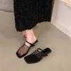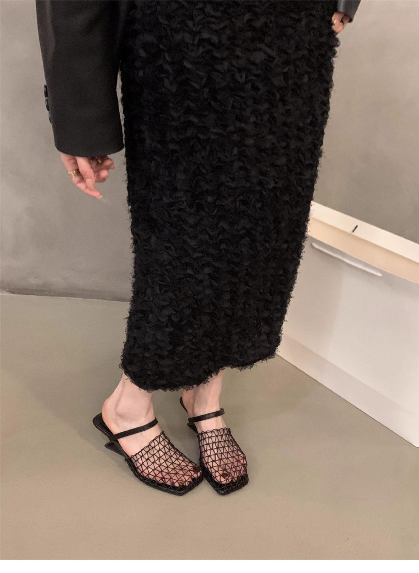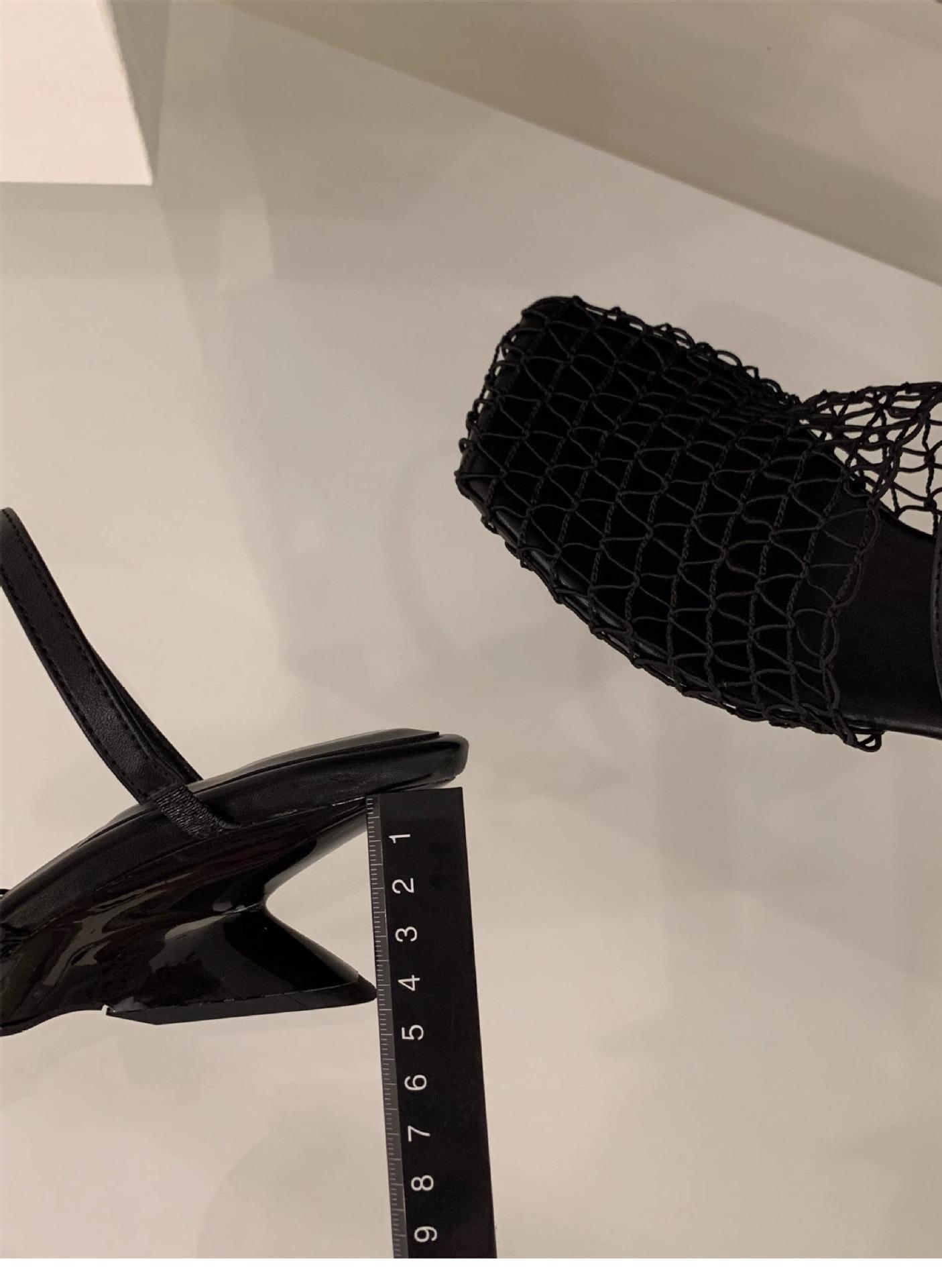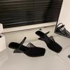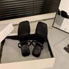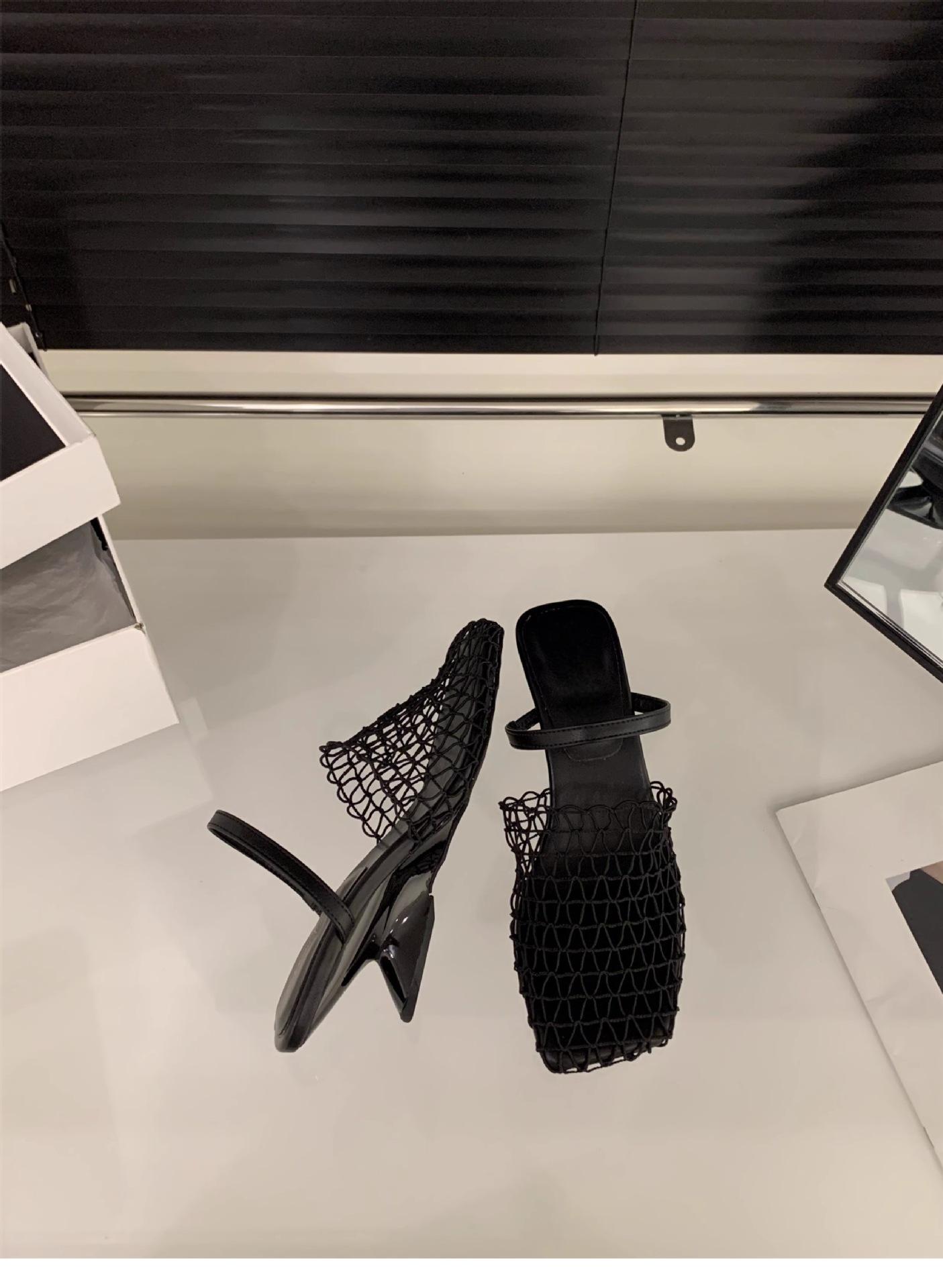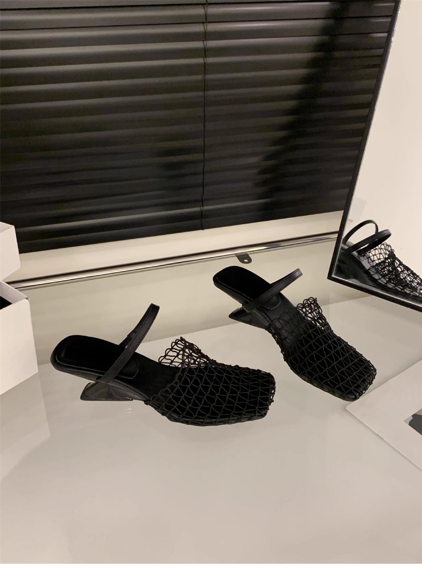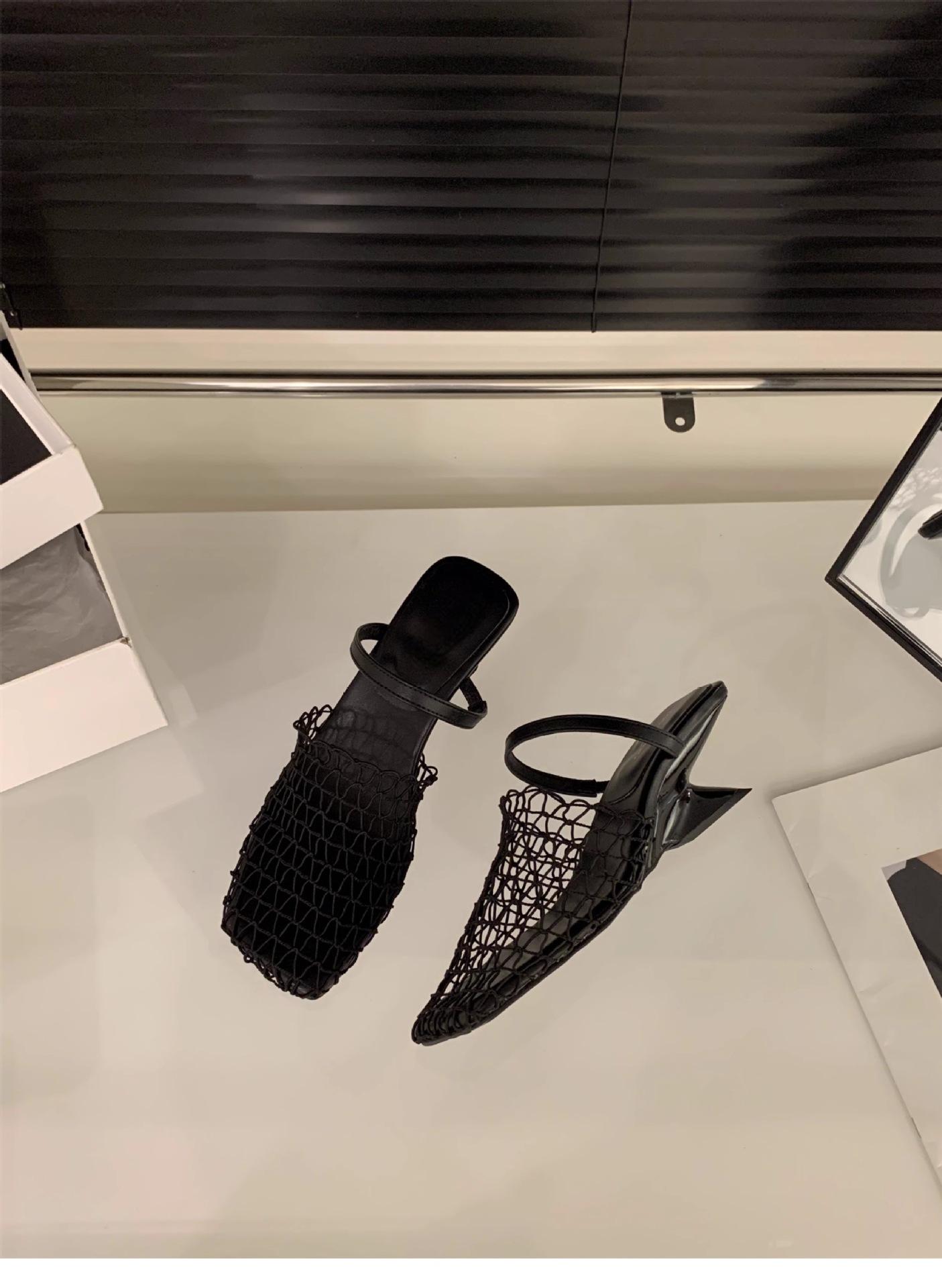 Pantuflas de Malla Trenzada Francesa con Corte en la Puntera para Exterior de Mujer 2025 Verano Nuevas Sandalias Romanas de Tacón Alto con Cuña