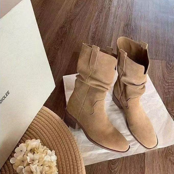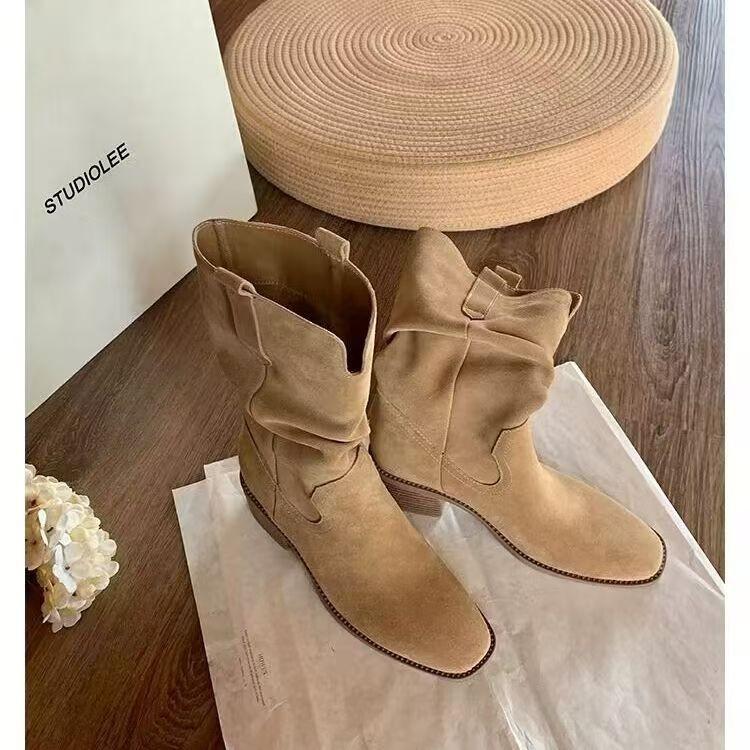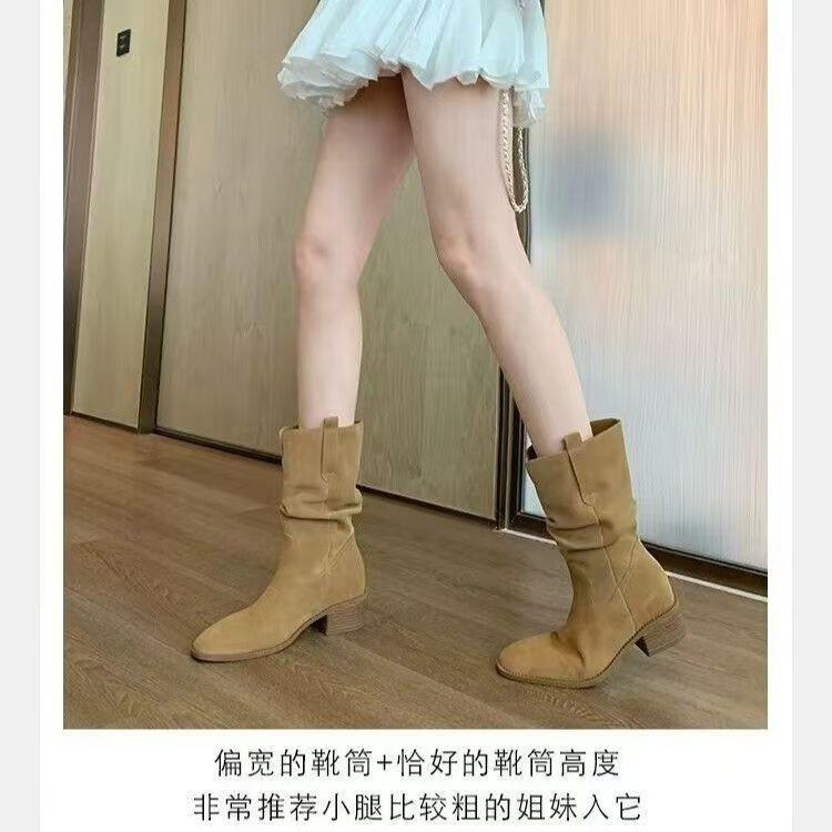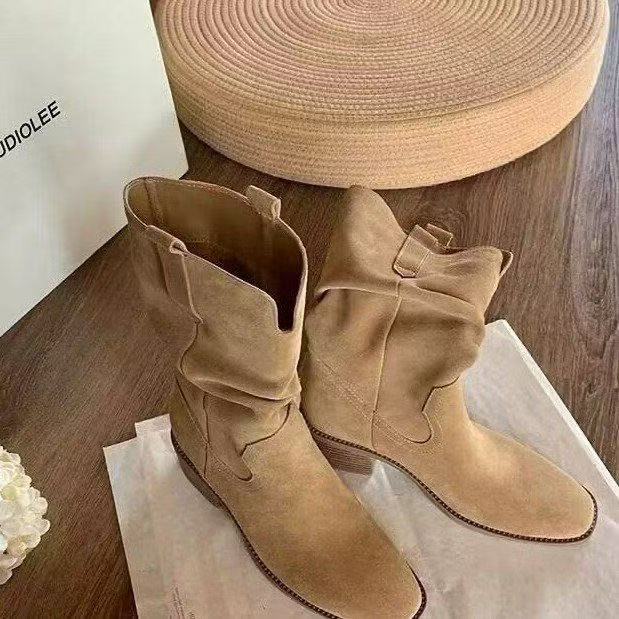 Botas Retro Apiladas Mujer Otoño 2025 Otoño Nuevo Estilo Melaard Vaqueras Occidentales Botas de Moda Botas de Media Caña Botas Martin