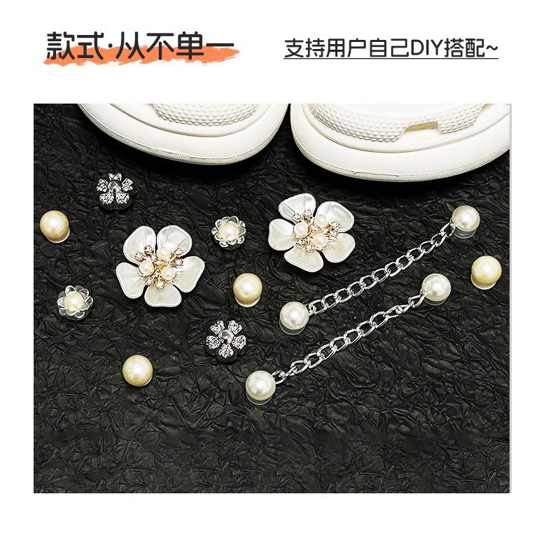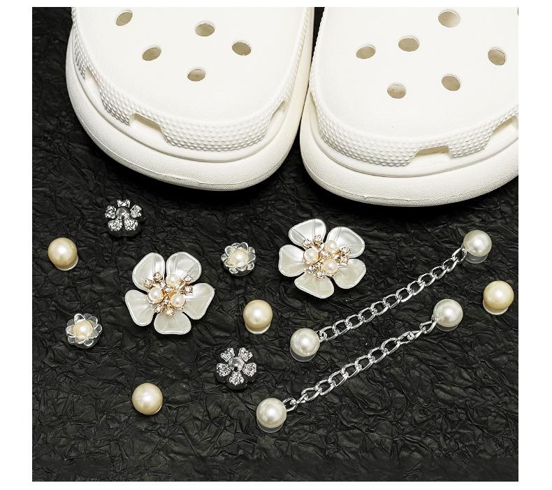 Zapatos con agujeros hebilla para zapatos accesorios de decoración hebilla cadena de perlas flor de diamantes de imitación tridimensional desmontable diy joyería hebilla flor para zapatos