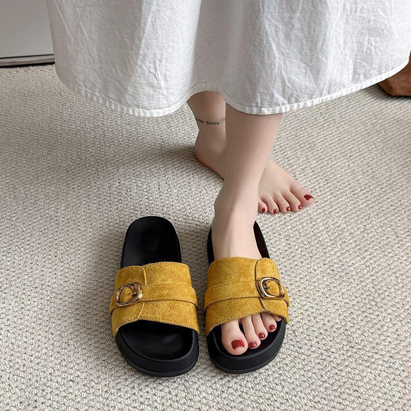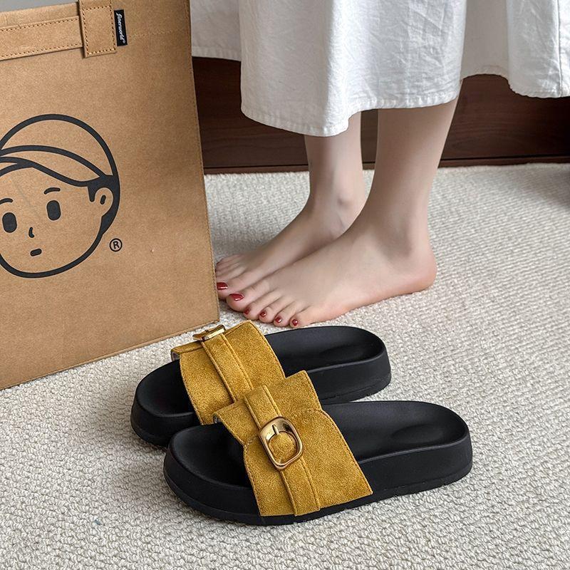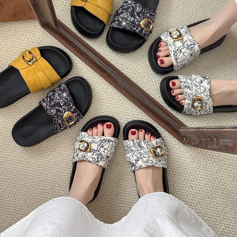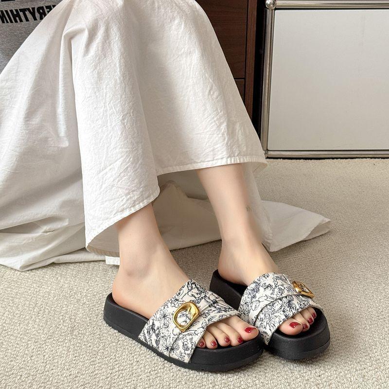 Zapatillas de plataforma de suela gruesa de gran venta de celebridades de Internet para uso al aire libre, nuevos zapatos de playa de moda, sandalias antideslizantes de una línea para el verano de 2025