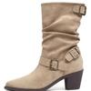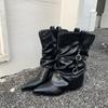 Otoño/Invierno 2025 Botines Retro Franceses de Punta Afilada con Tacón Grueso para Mujer con Hebilla de Cinturón, Fruncidos y Apilados, Botas Versátiles que Estilizan
