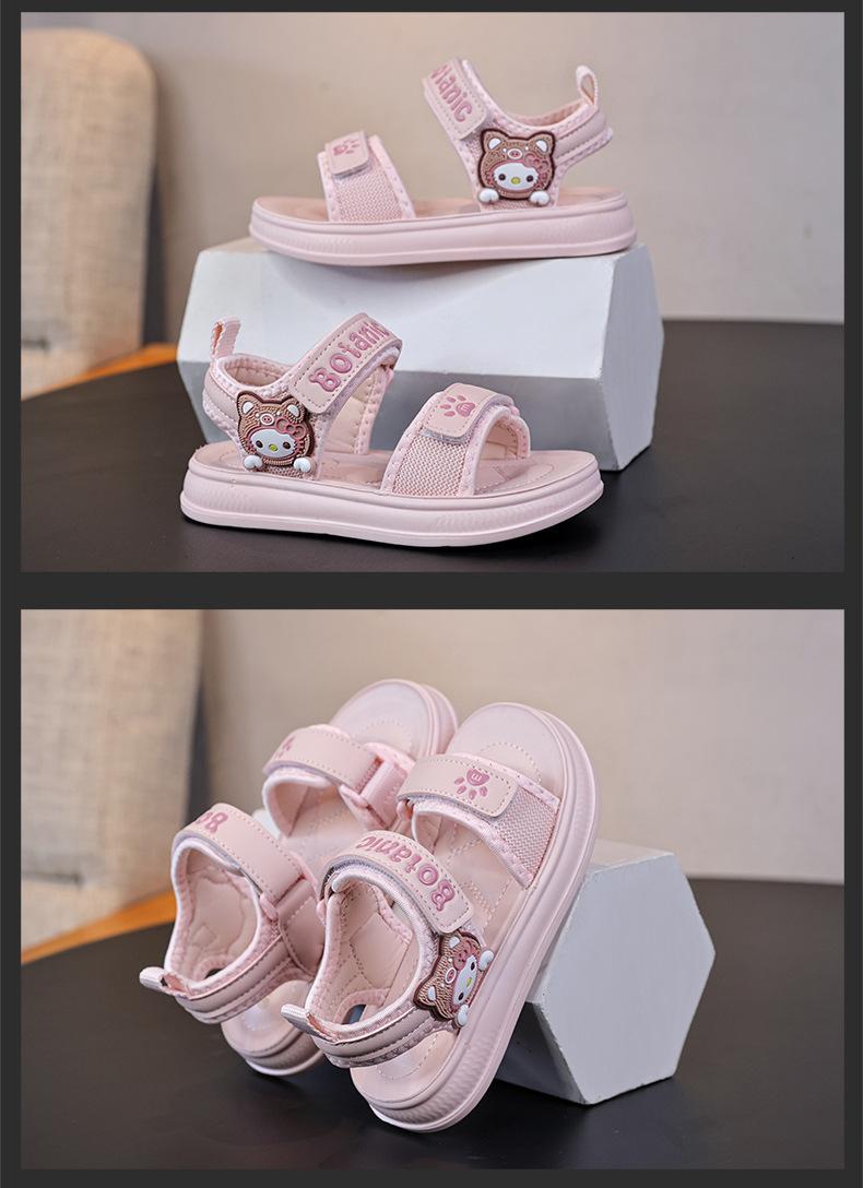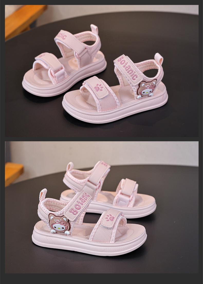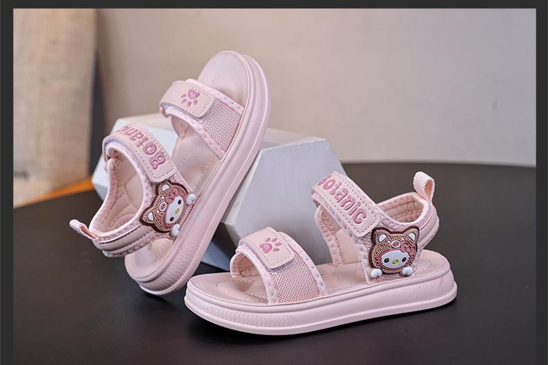 Zapatos de Playa de Punta Abierta para Niños 2025 Primavera y Verano Sandalias para Niñas Lindo Oso Velcro Zapatos para Niños Pequeña Princesa