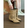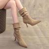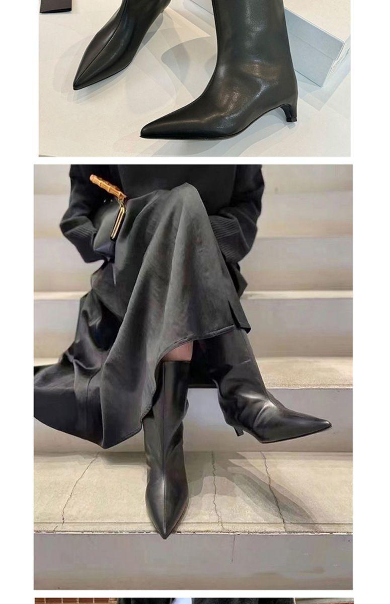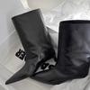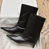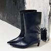 Botas de media caña de punta estilo coreano para mujer, botines franceses de pierna ancha, tacones de aguja tipo caballero, botines super cat heel, botas para otoño e invierno