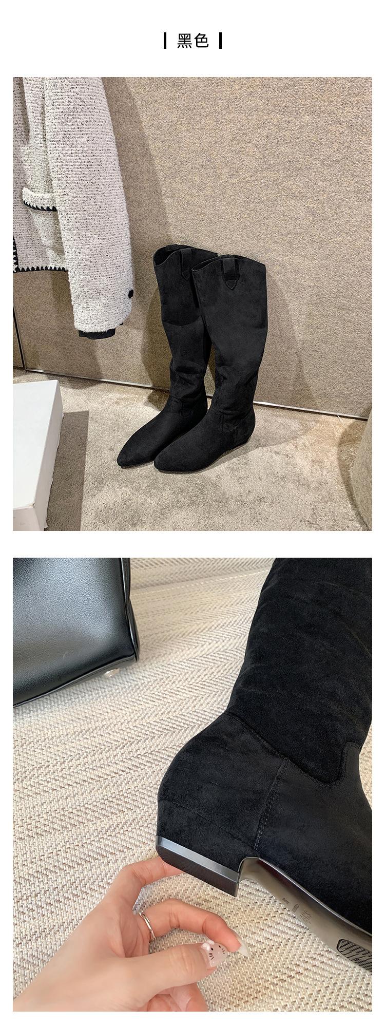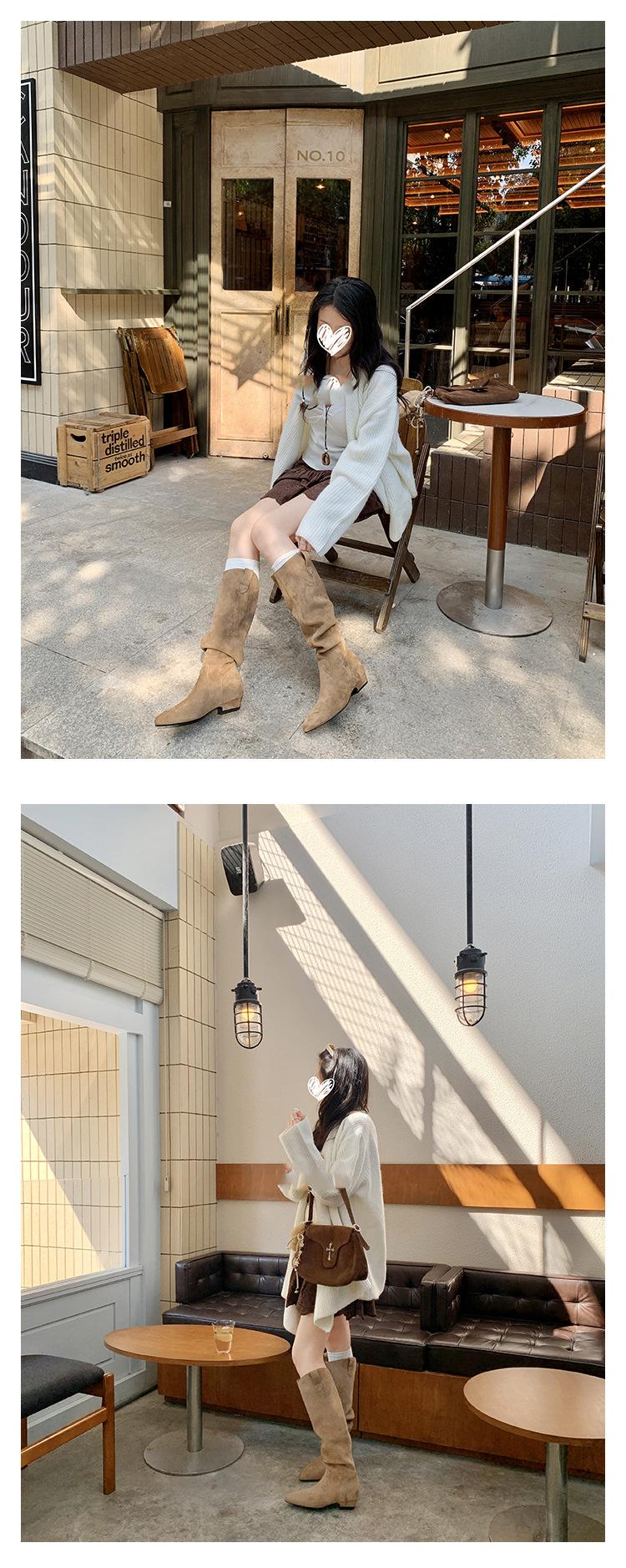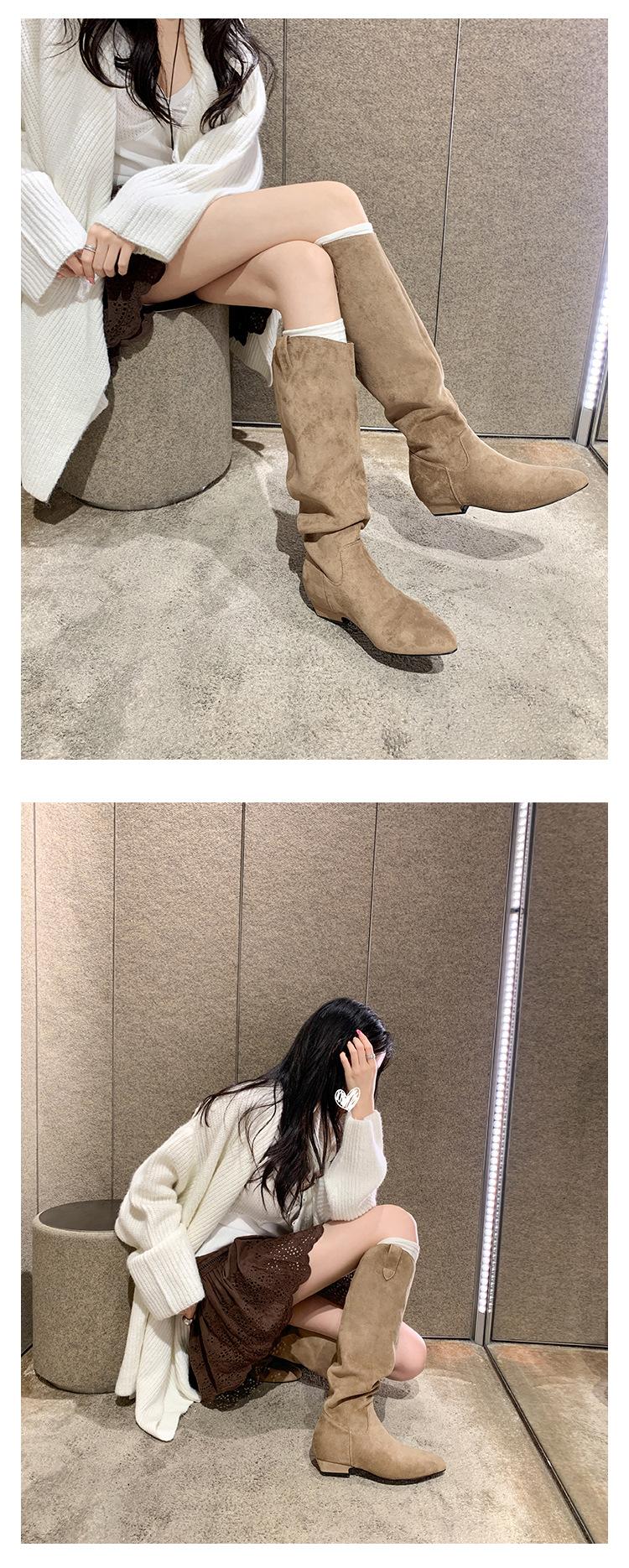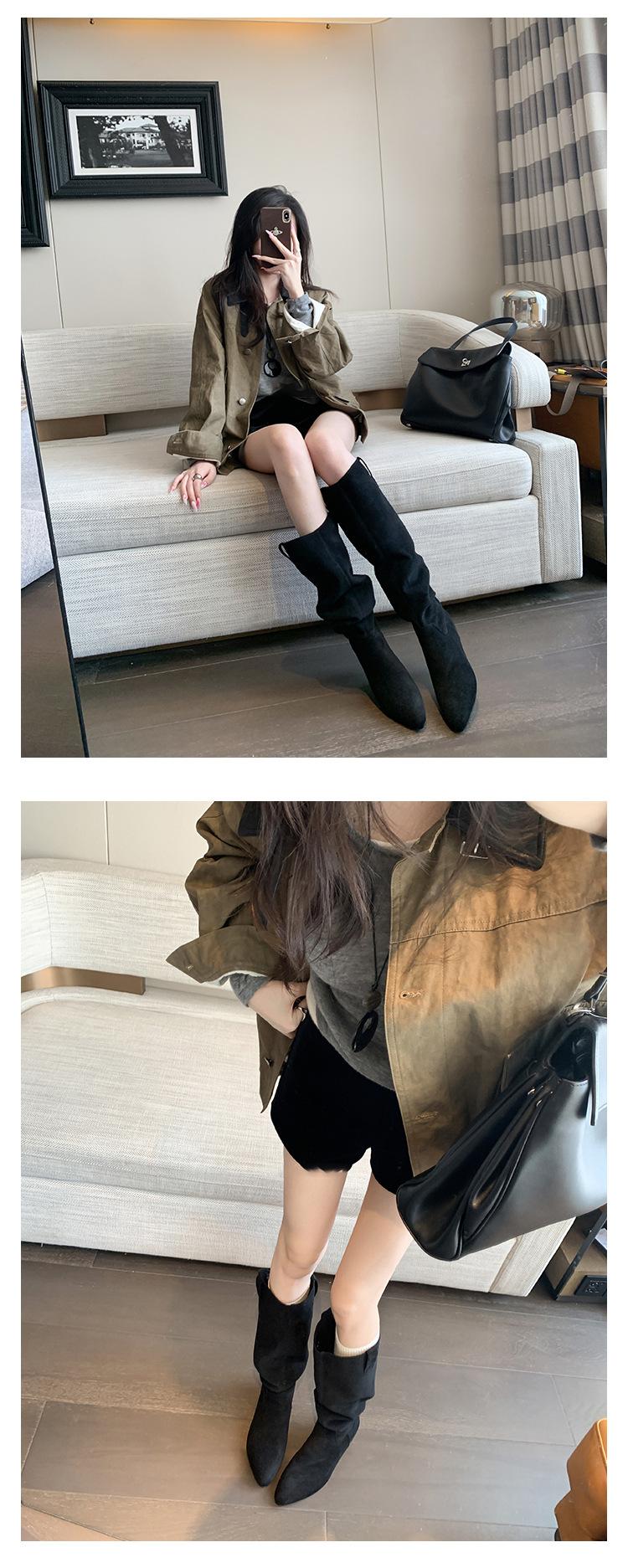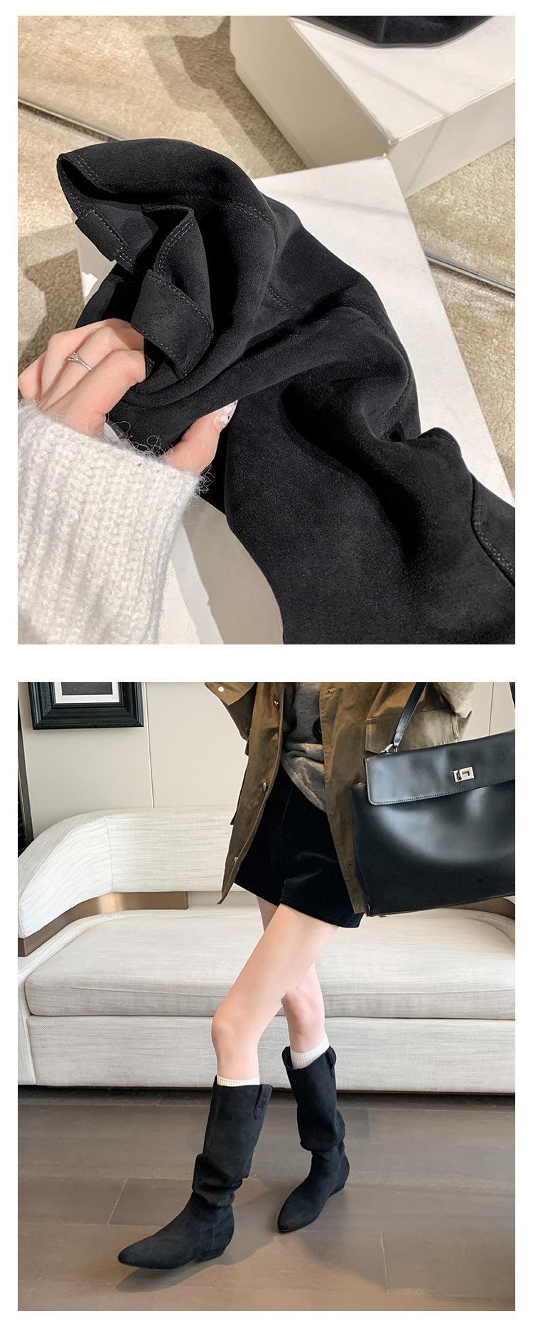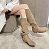 Otoño/Invierno 2025 Nuevas Botas por Encima de la Rodilla con Boca en V para Mujer Merlot Puntiagudas de Gamuza de Caña Alta Altura Interior Botas Apiladas Tacón Grueso