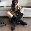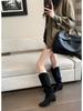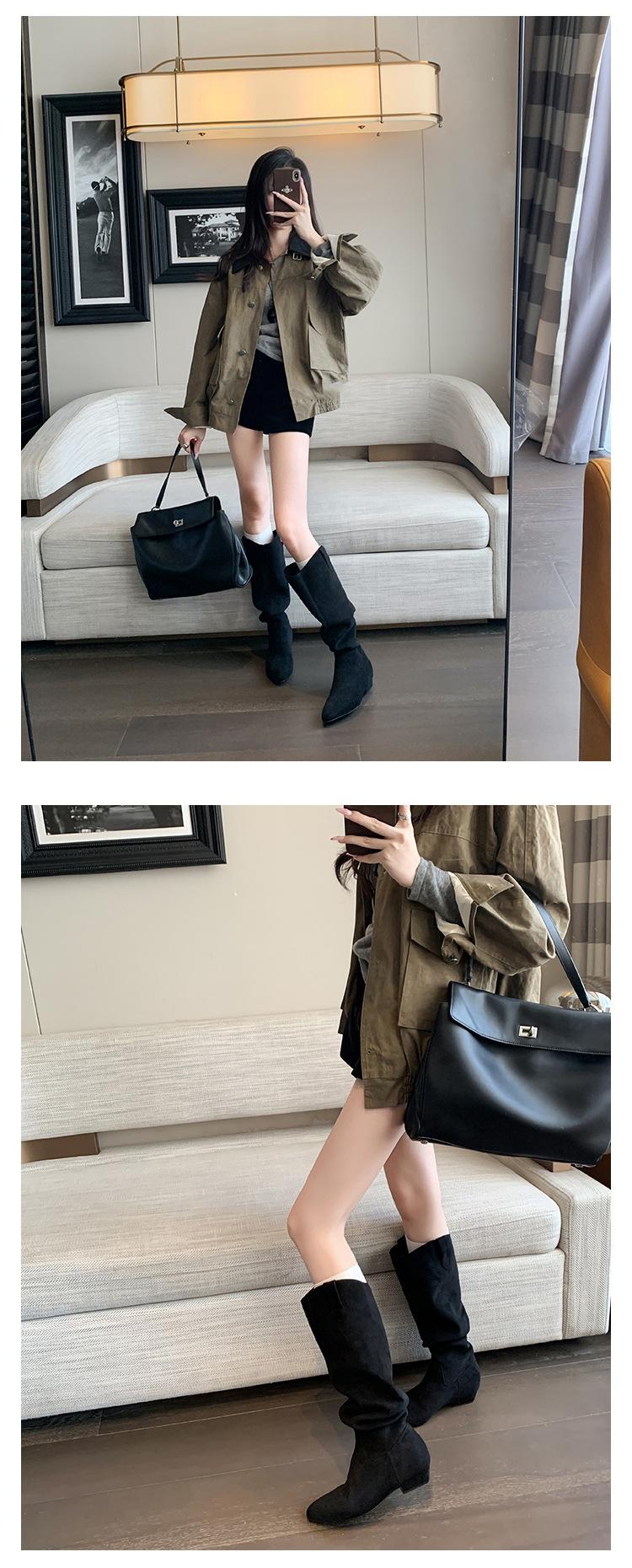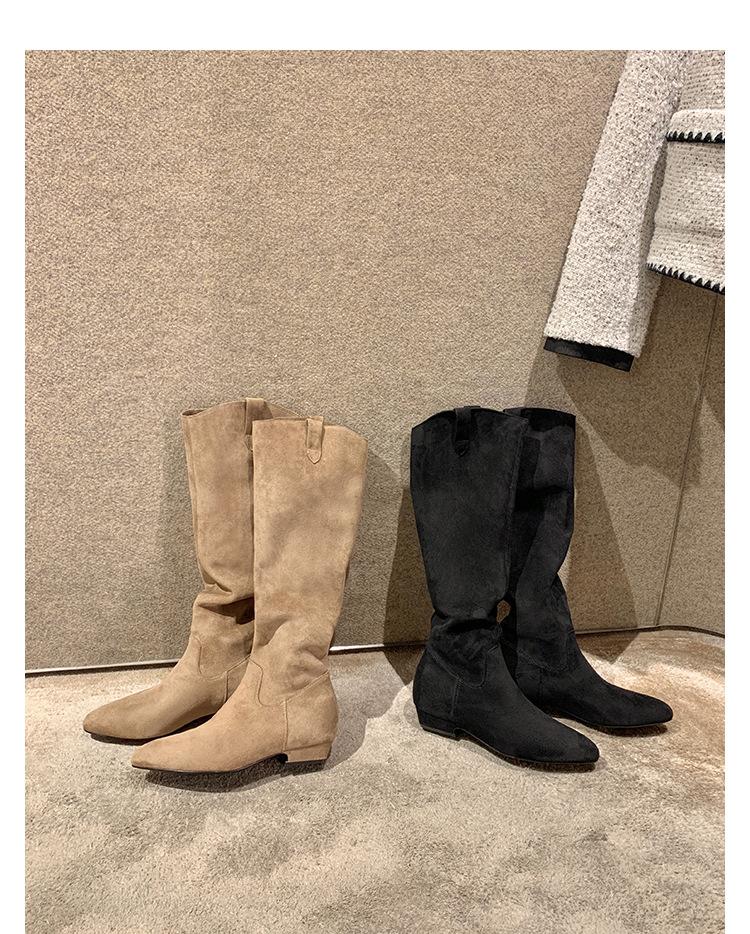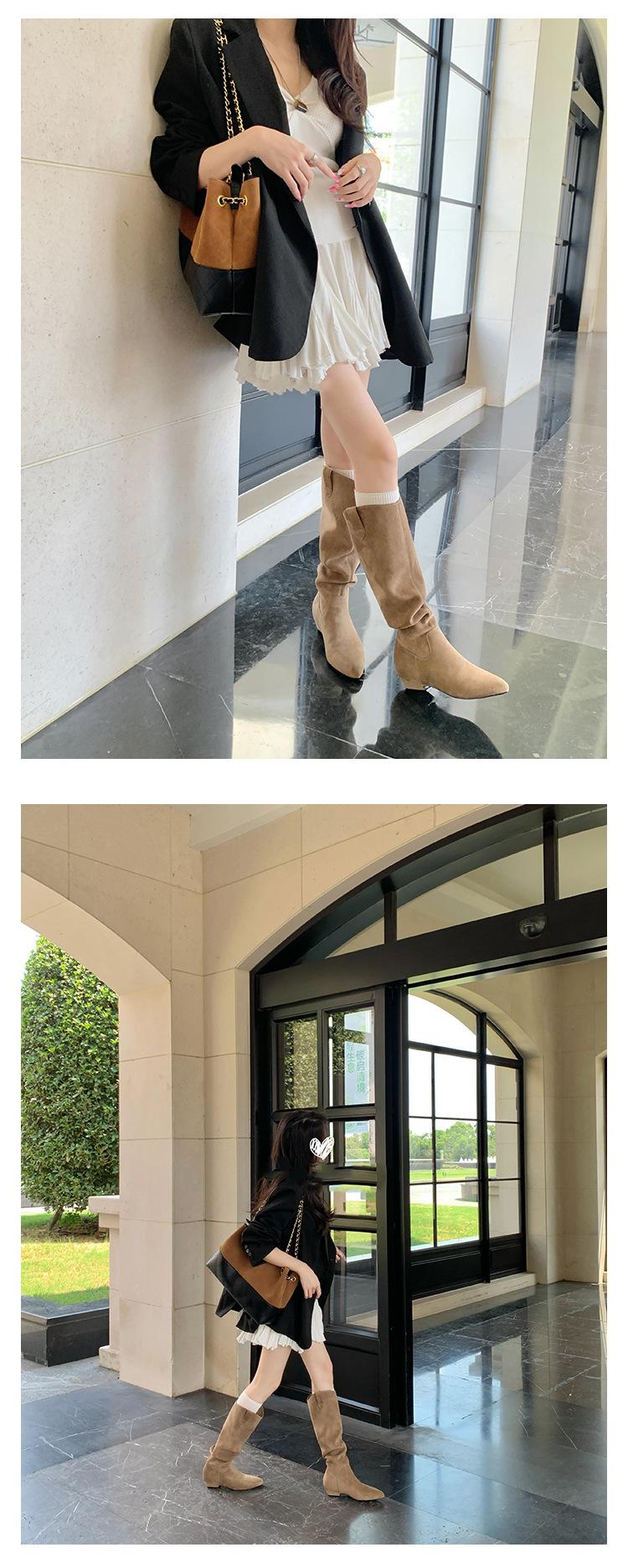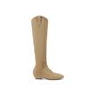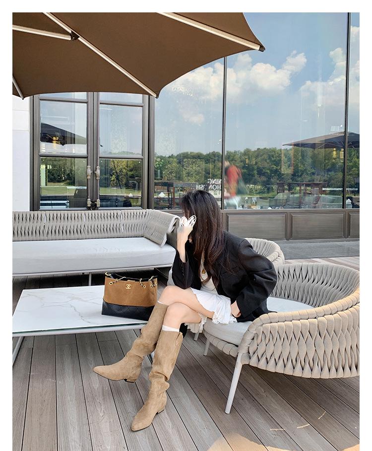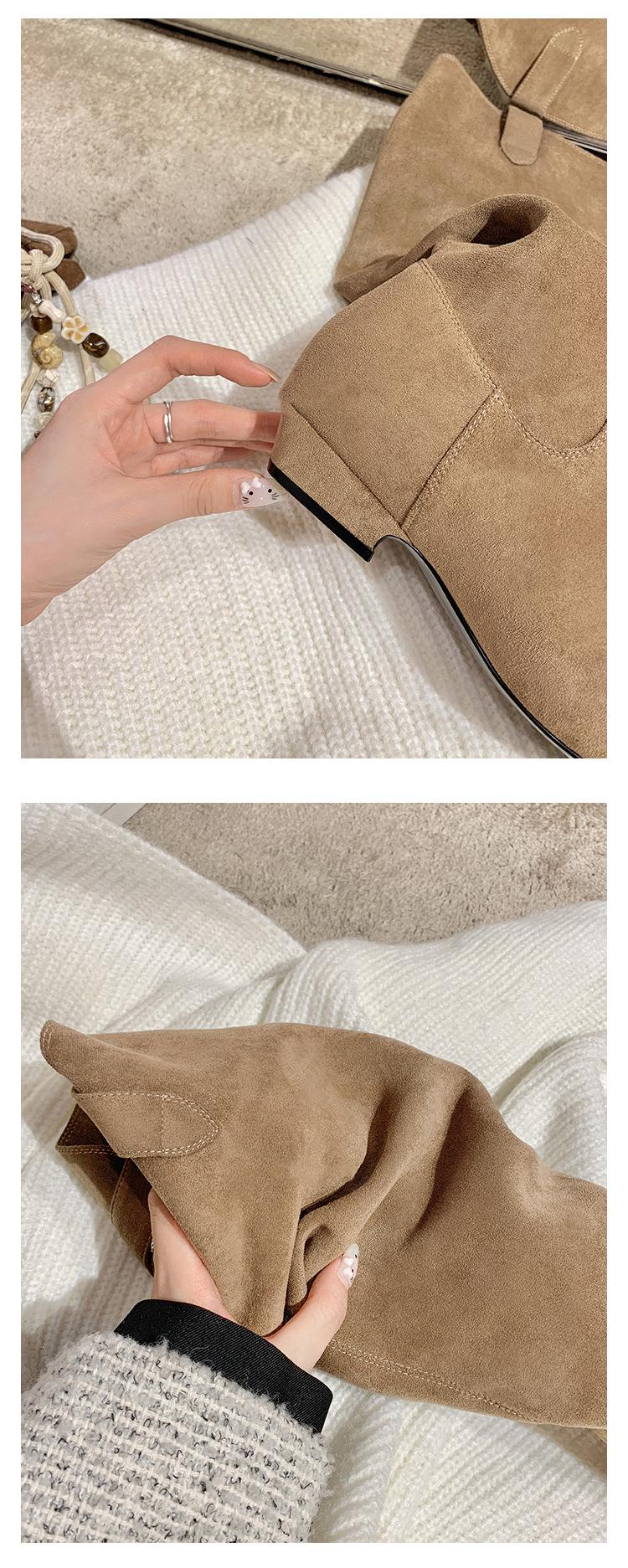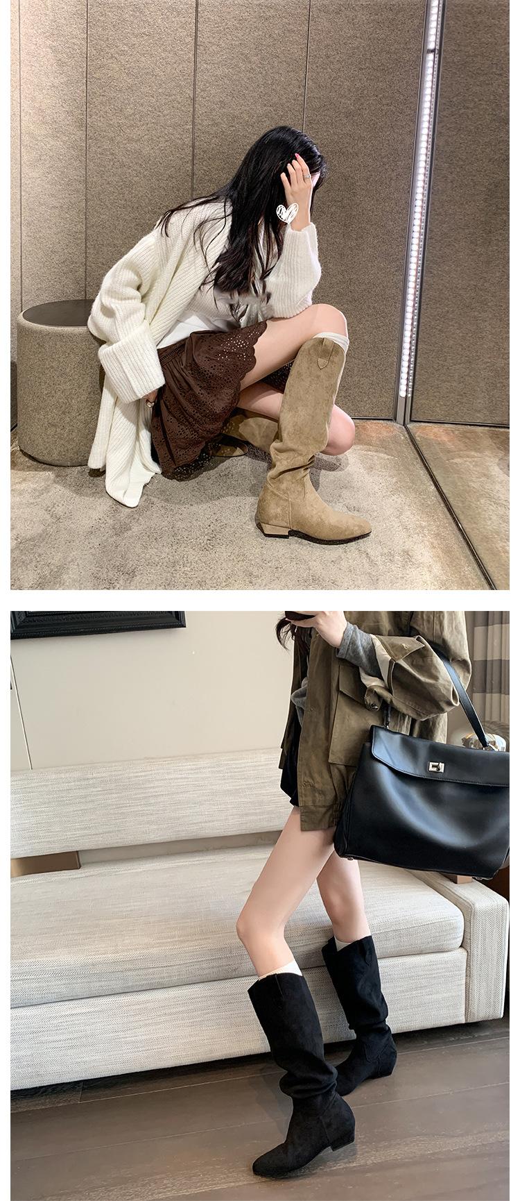 Otoño/Invierno 2025 Nuevas Botas por Encima de la Rodilla con Boca en V para Mujer Merlot Puntiagudas de Gamuza de Caña Alta Altura Interior Botas Apiladas Tacón Grueso