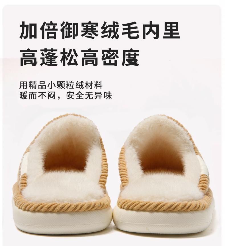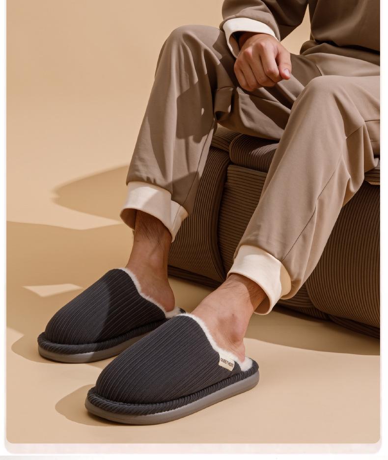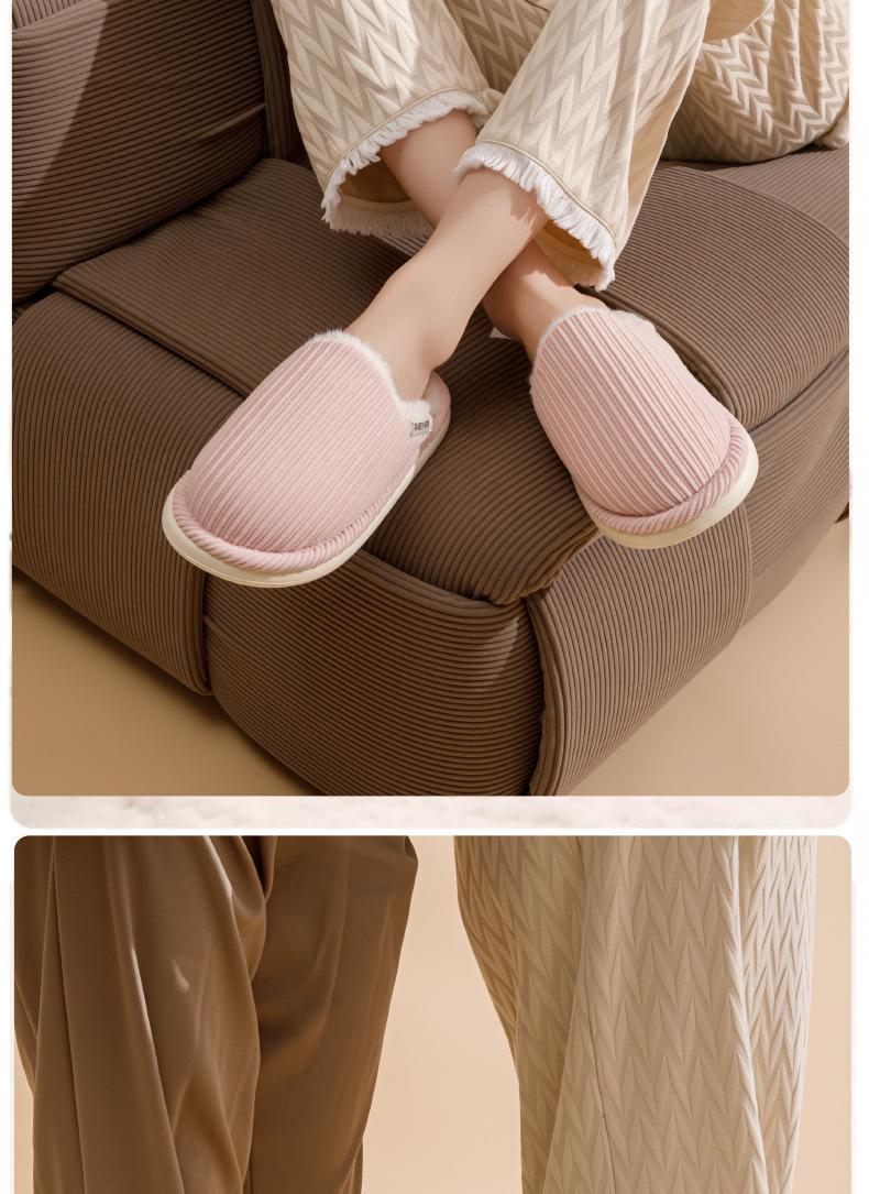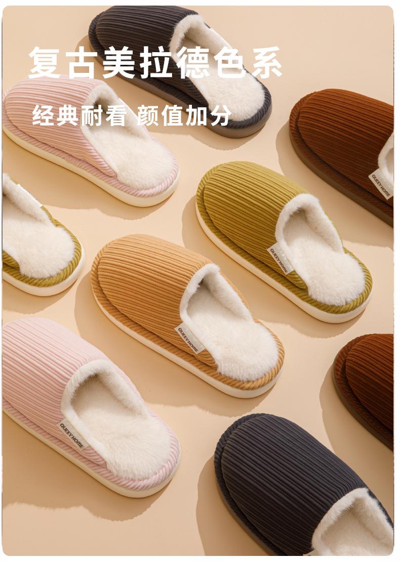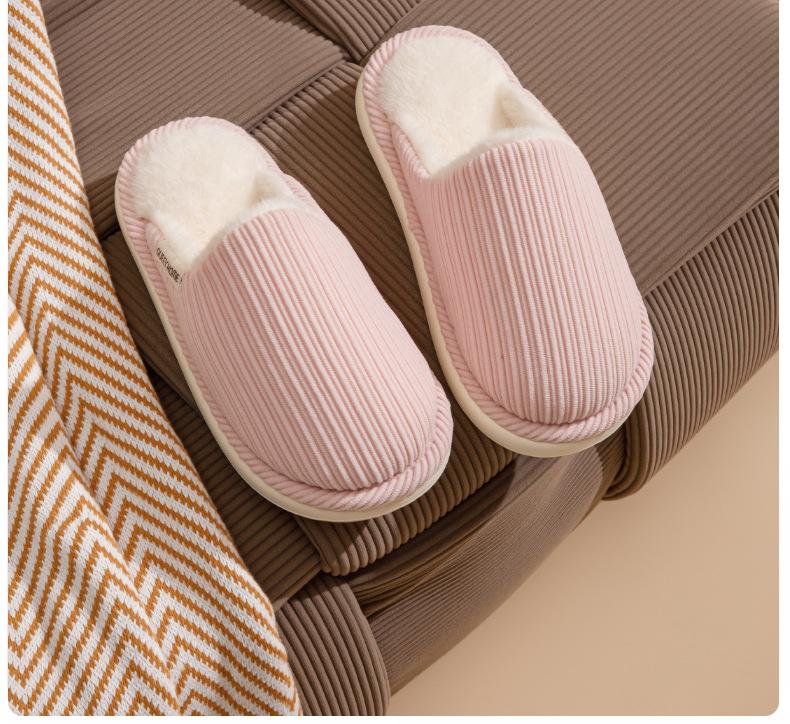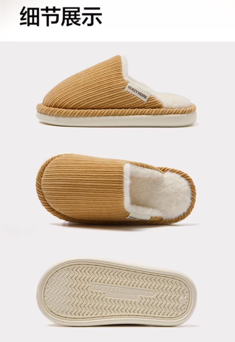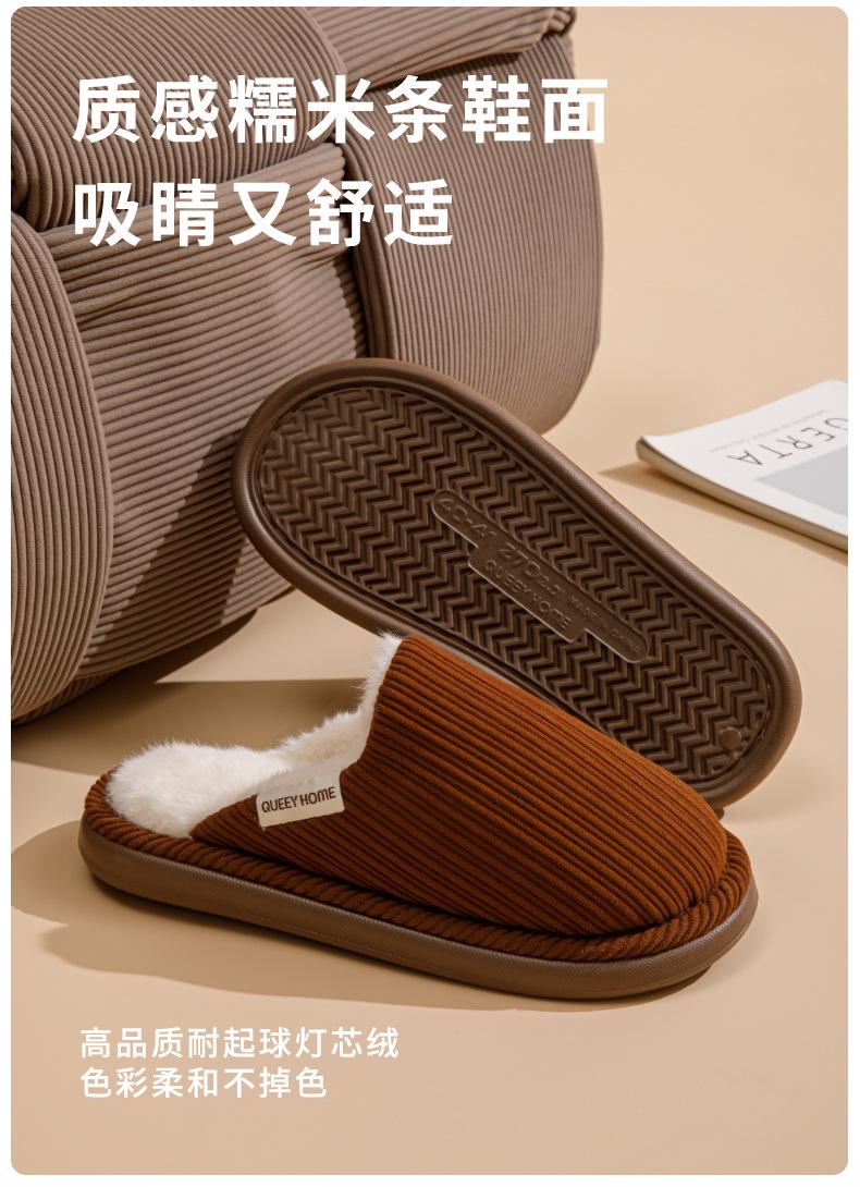 Pantuflas de algodón de suela gruesa para mujer otoño e invierno 2025 nuevo hogar interior antideslizante pareja cálido pana pantuflas de piso para hombre