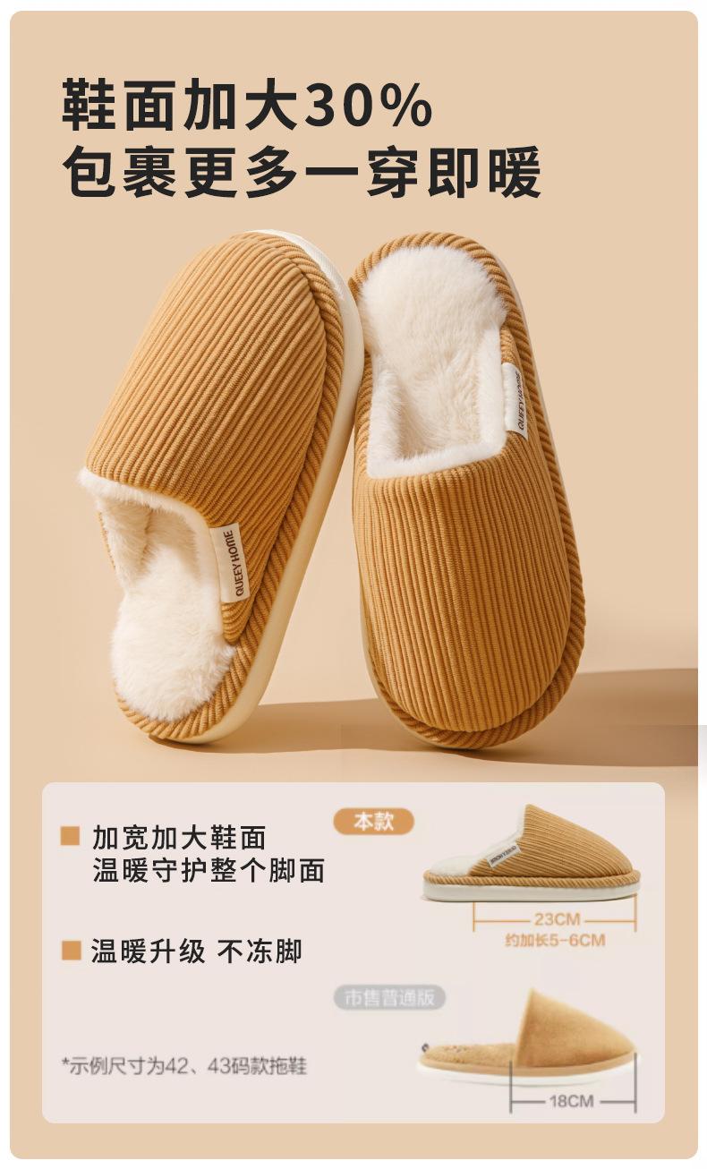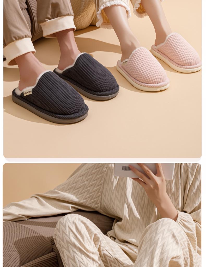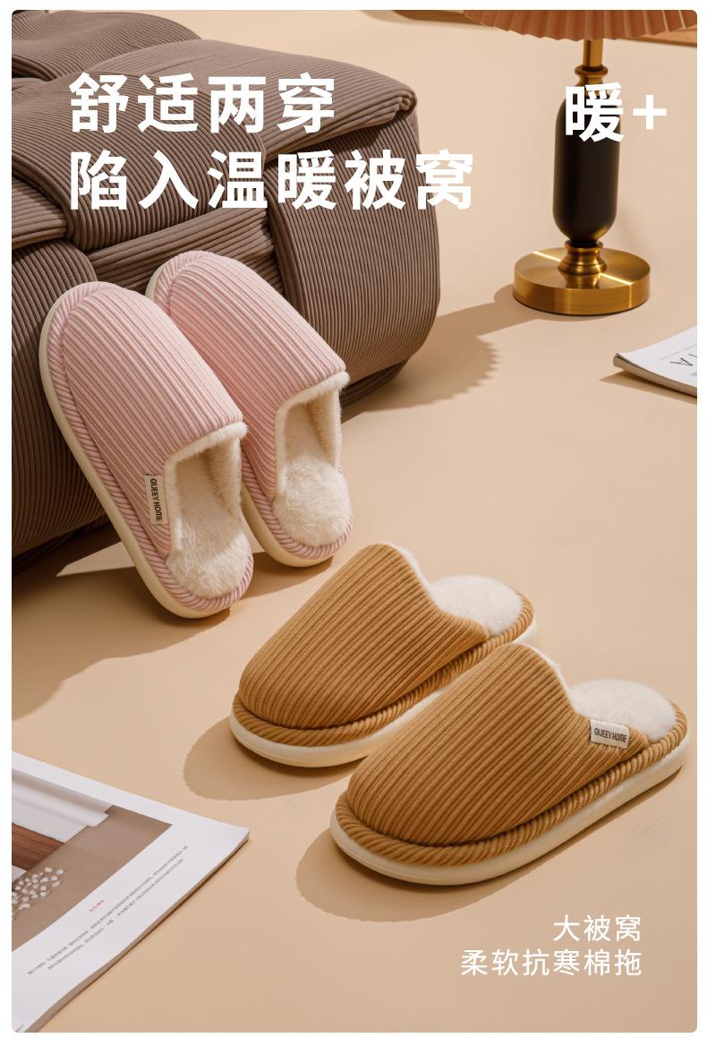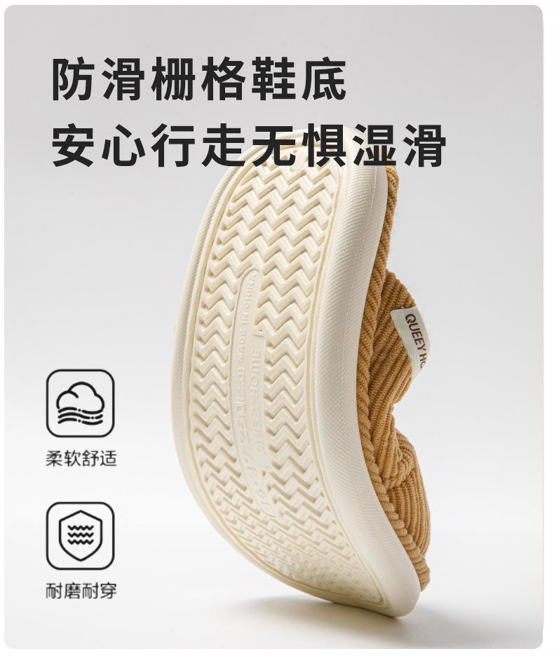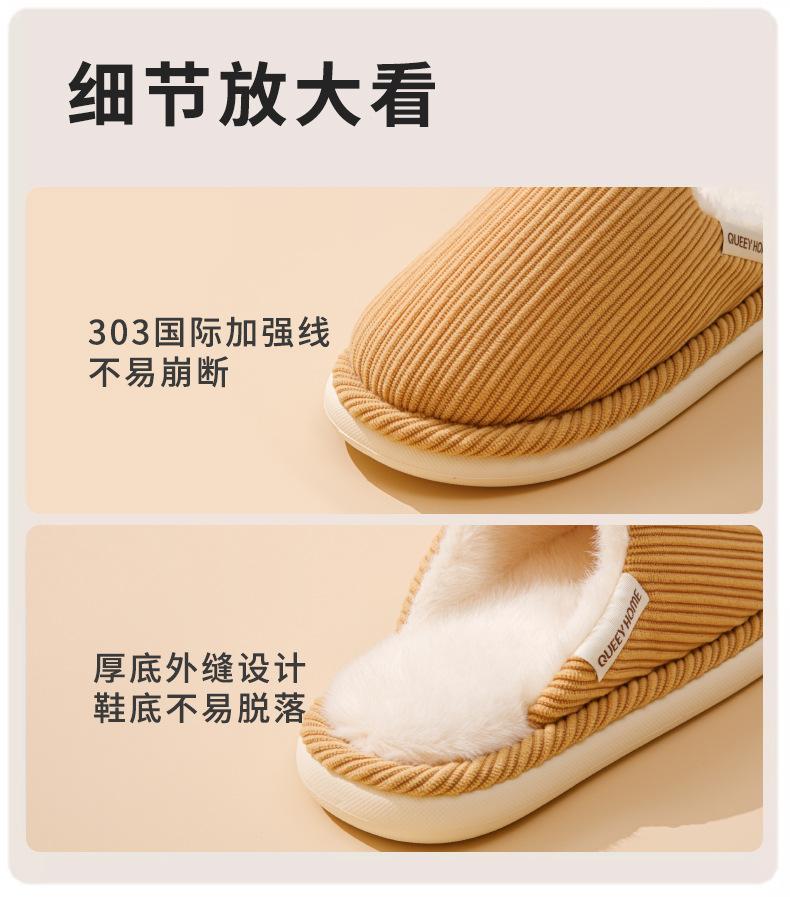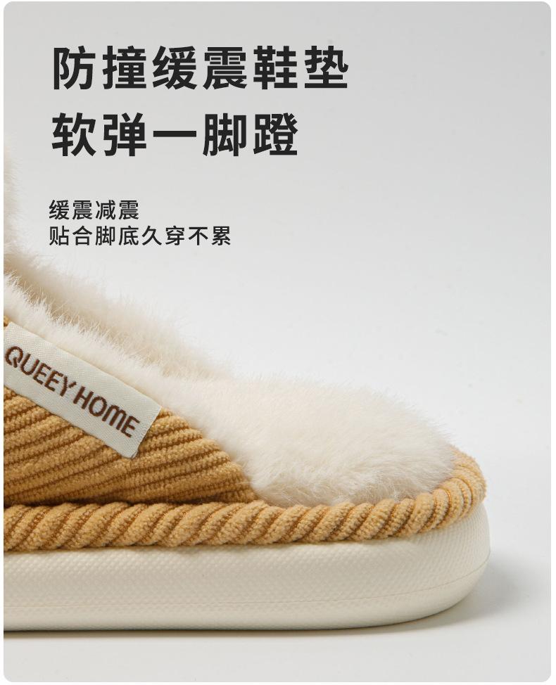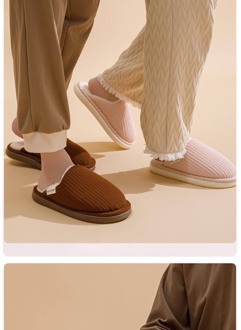 Pantuflas de algodón de suela gruesa para mujer otoño e invierno 2025 nuevo hogar interior antideslizante pareja cálido pana pantuflas de piso para hombre