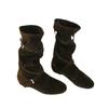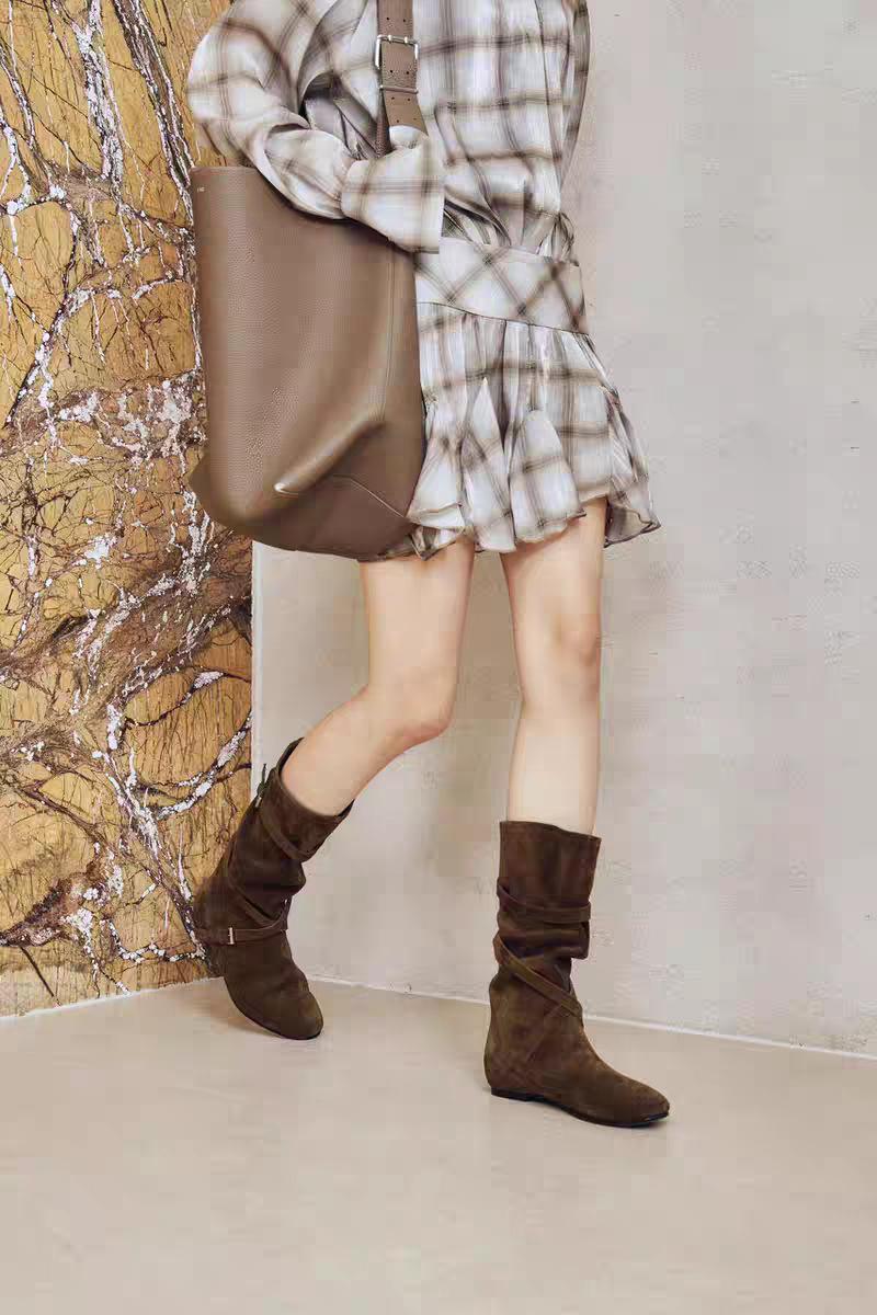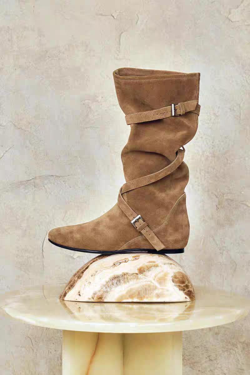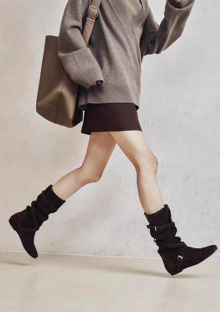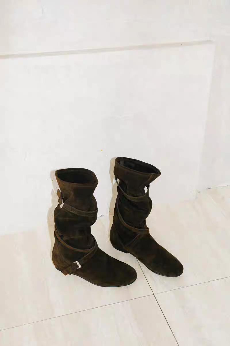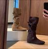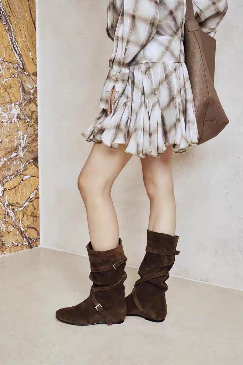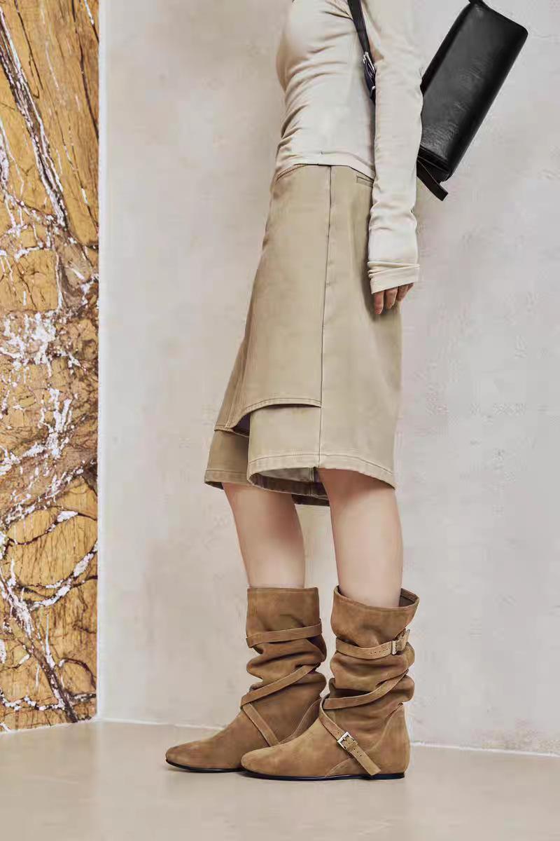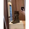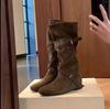 Aumenta altura 6cm~otoño 2025 nuevo estilo coreano punta redonda correa con hebilla suave plisado adelgazante retro desgastado botas media pantorrilla mujer