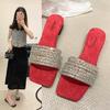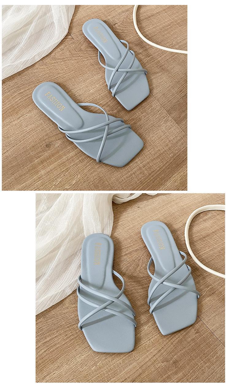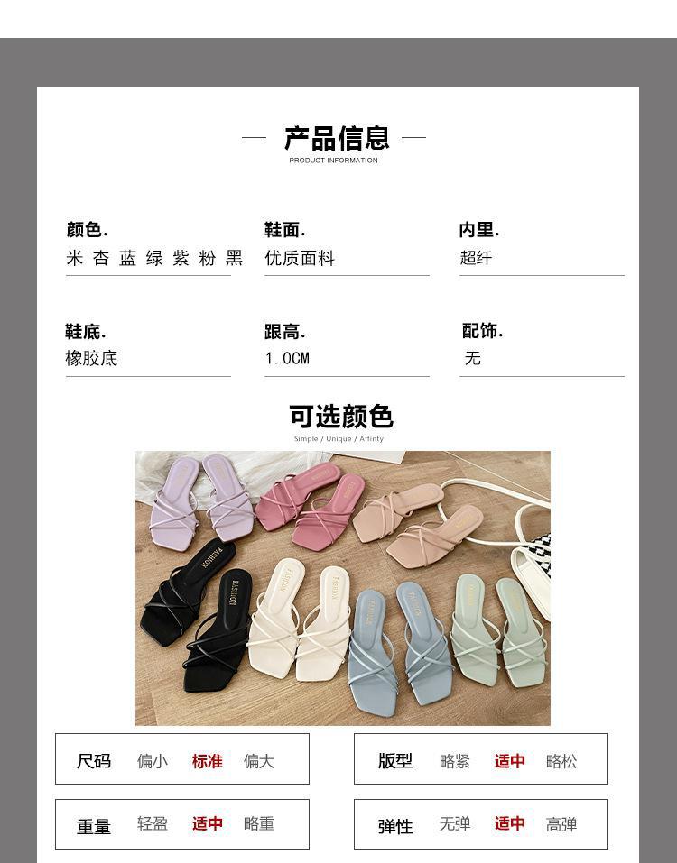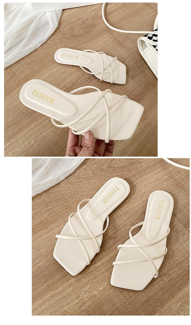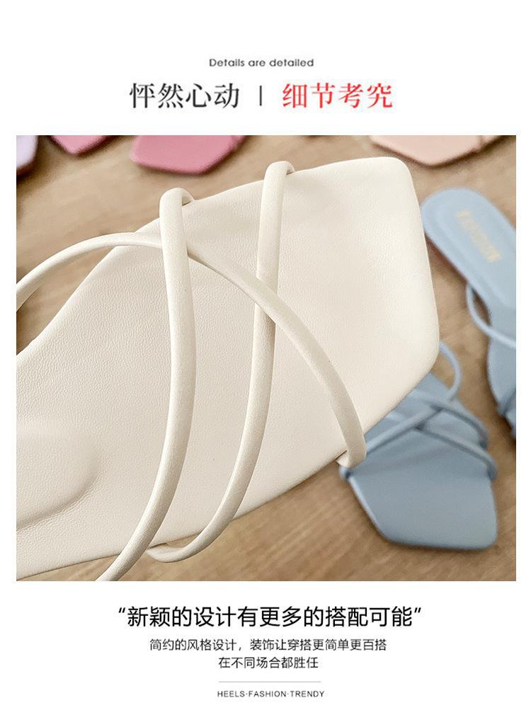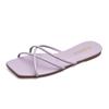 Pantuflas estilo hada para mujer nuevo verano 2024 versión coreana simple tira delgada punta cuadrada suela plana sandalias y pantuflas de playa marea