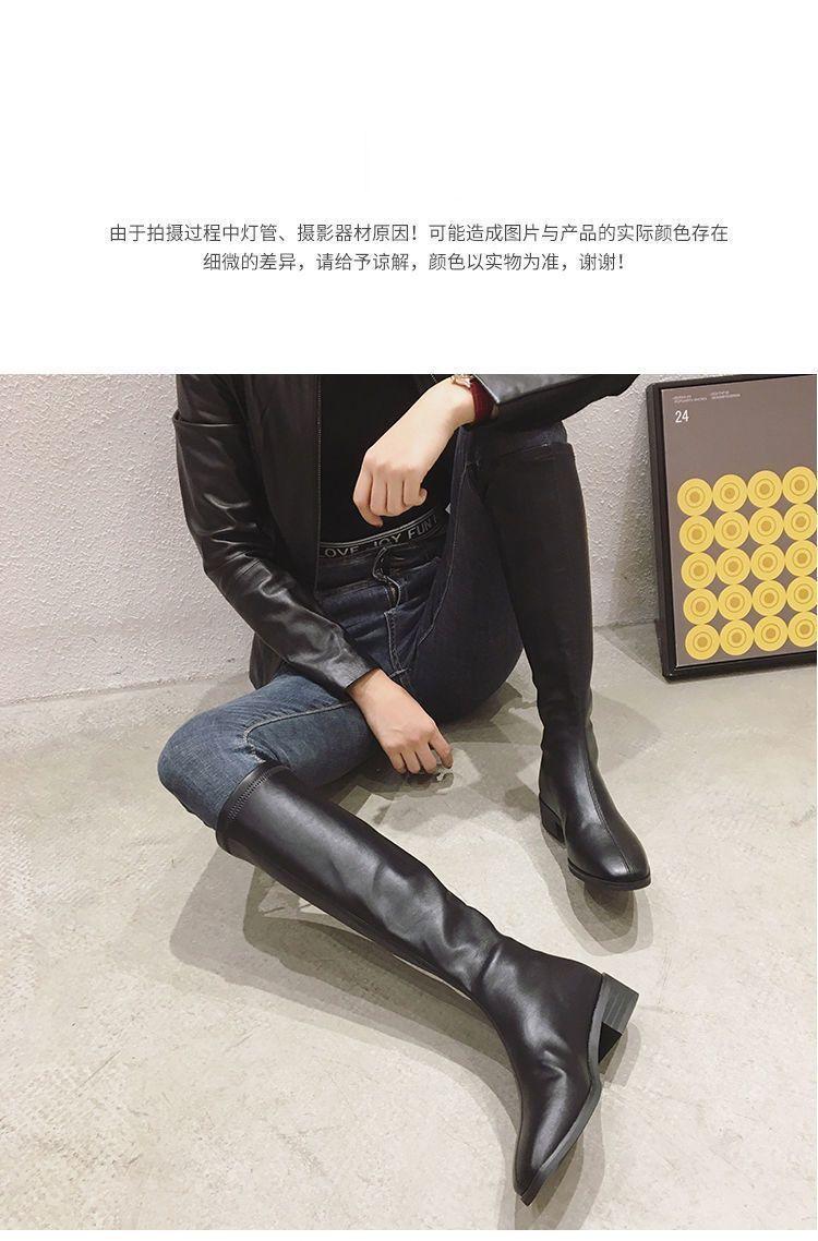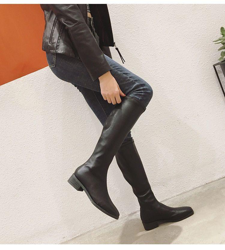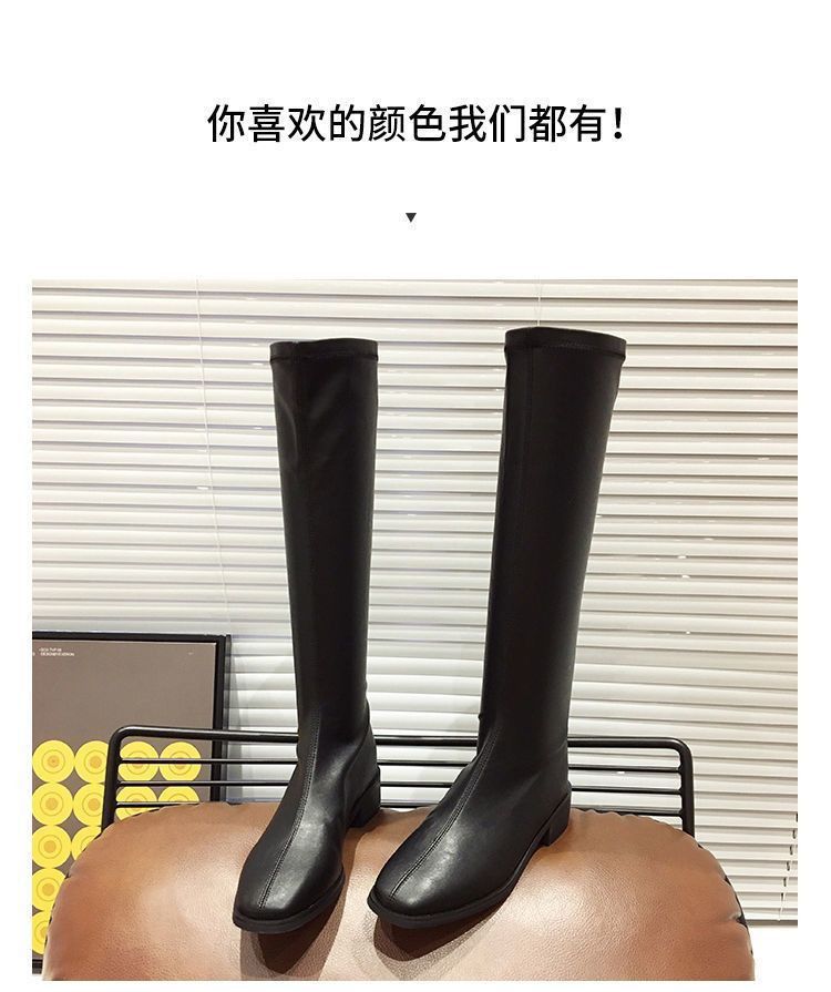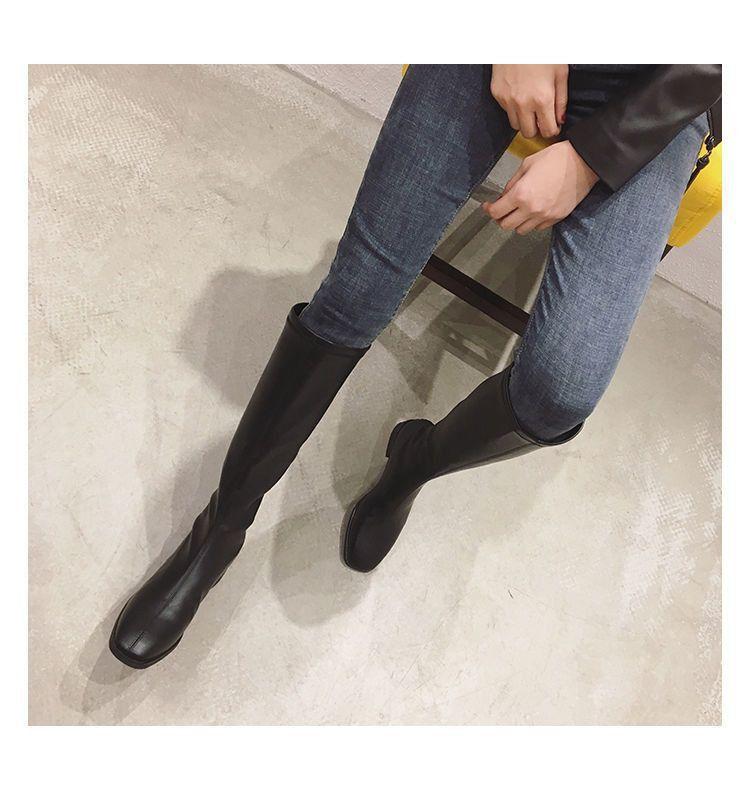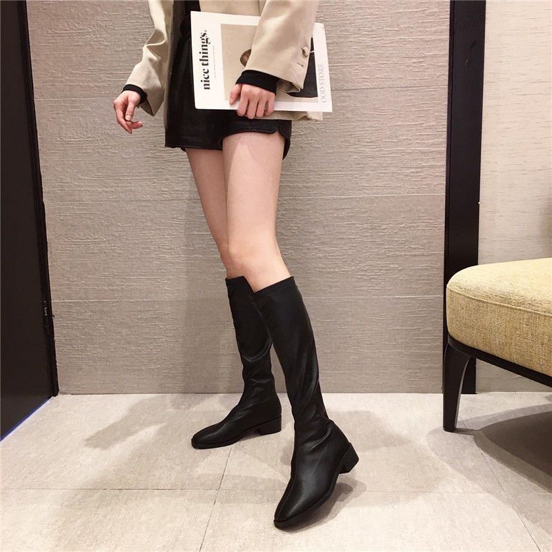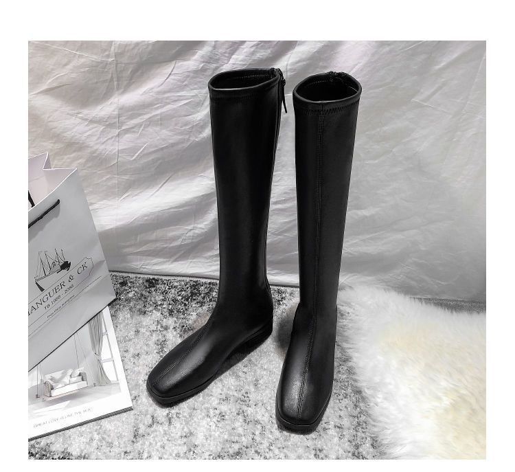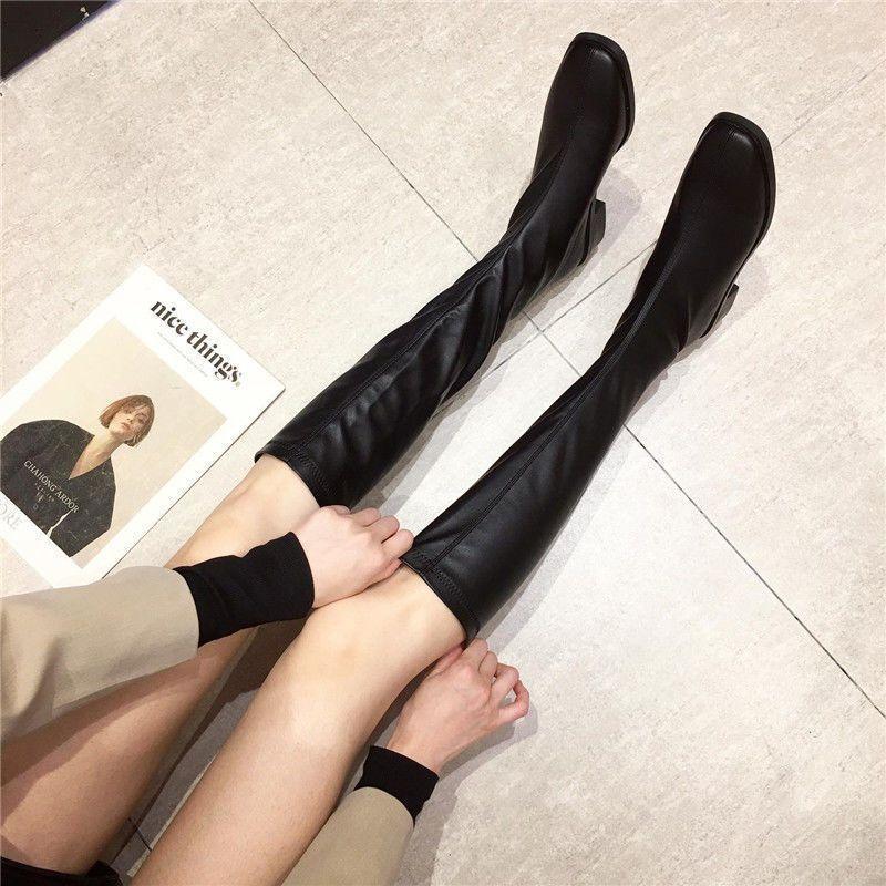 Botas Altas Negras Sobre la Rodilla Botas de Jinete Estilo Coreano Tacón Grueso Botas Largas Mujer 2025 Otoño/Invierno Nuevo Punta Cuadrada Cremallera Trasera