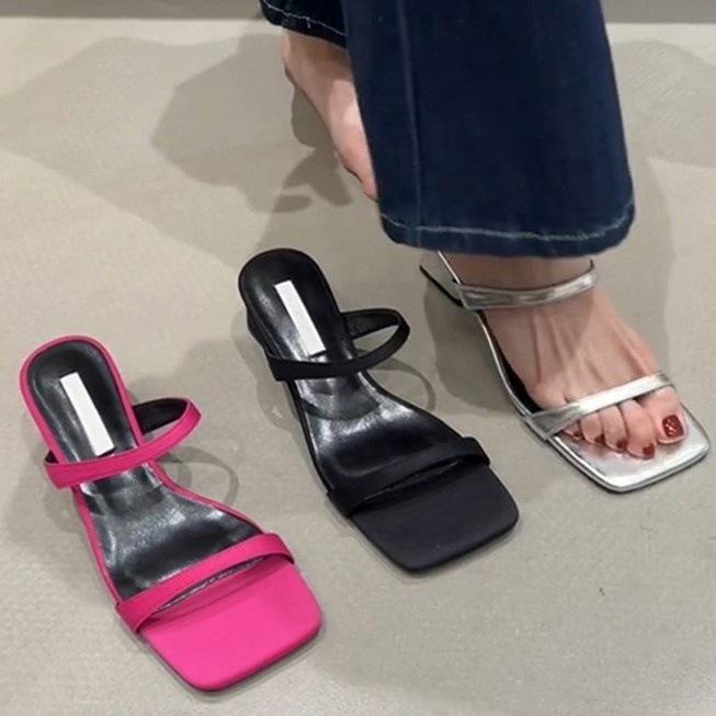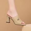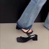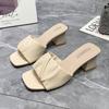 2025 Nuevo Estilo de Verano Punta Cuadrada Francesa Sandalias de Tacón Alto con Puntera Descubierta para Mujer para Usar Zapatillas de Cuero Suave Sandalias de Tacón Grueso