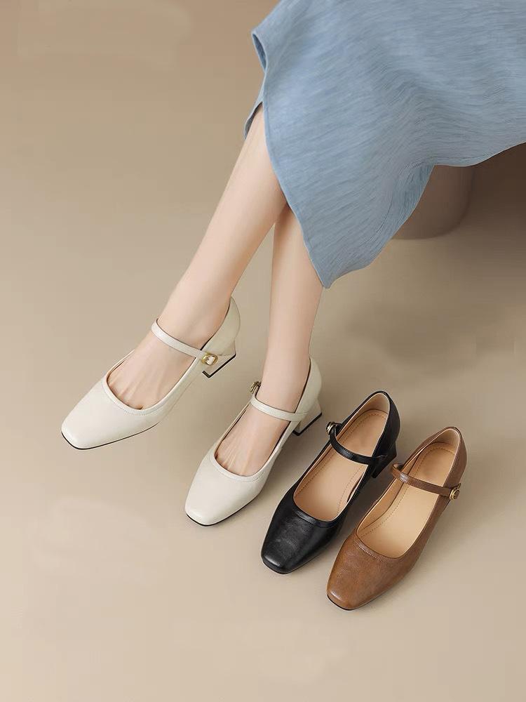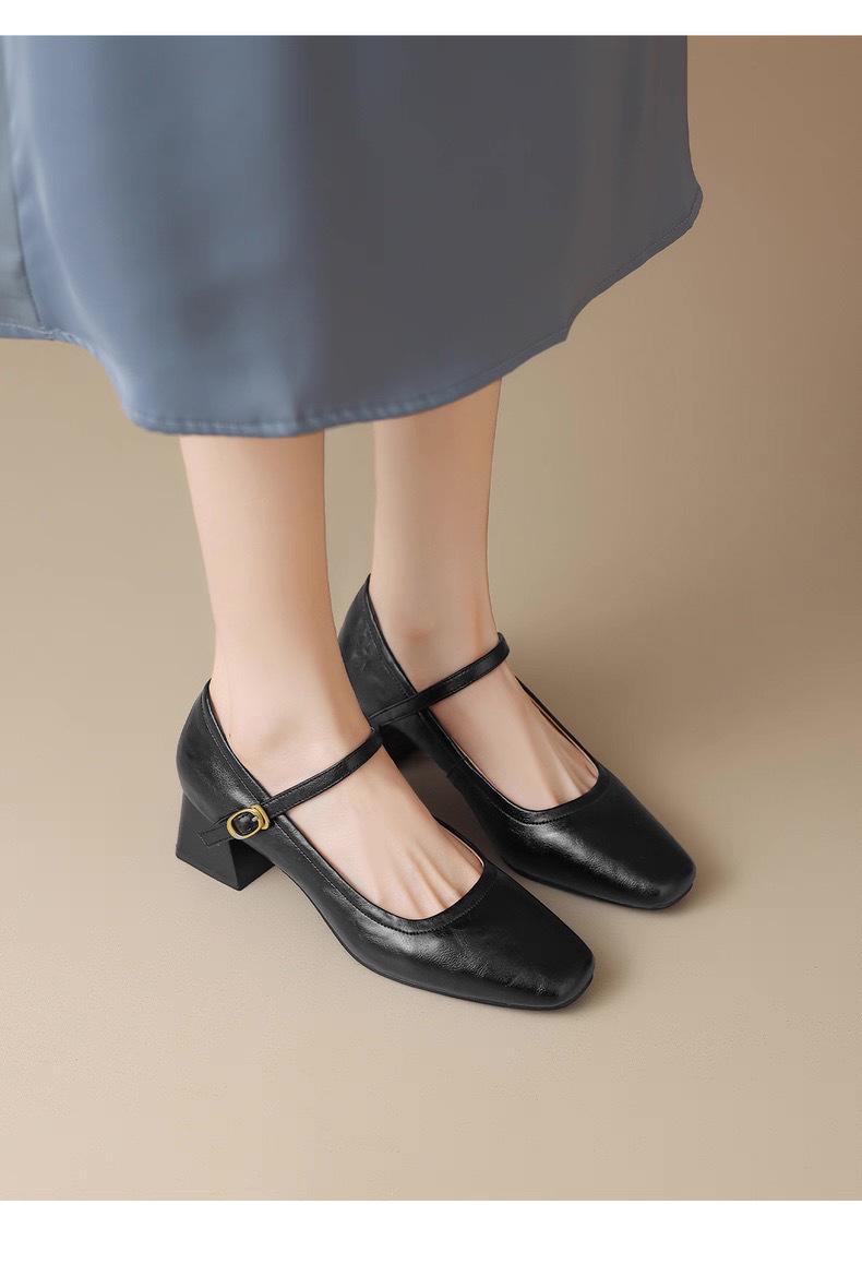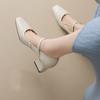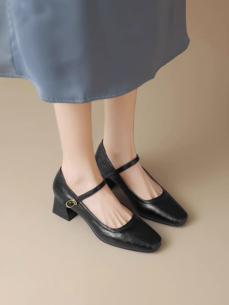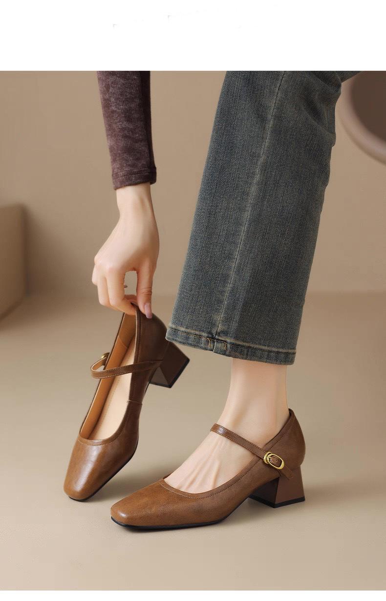 Zapatos de Tacón Alto Rojos 2025 Primavera y Otoño Nuevos Retro Francés Tacón Grueso Mary Janes de Una Tira Zapatos Individuales de Mujer