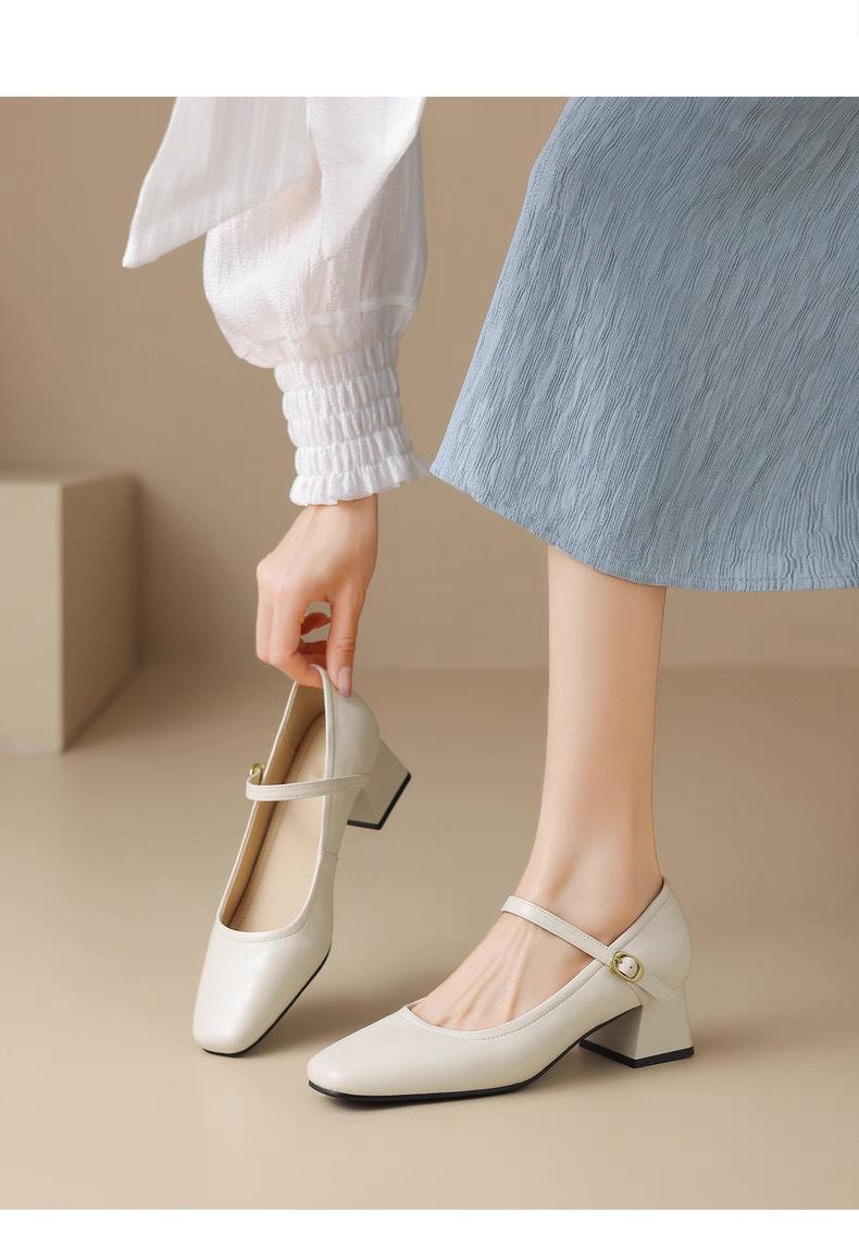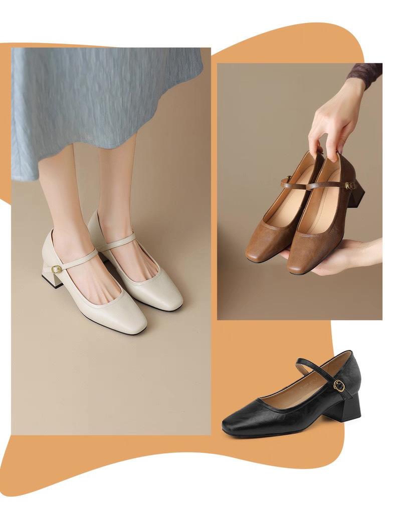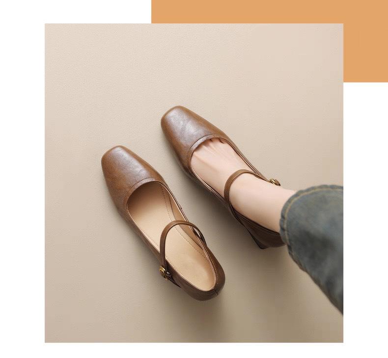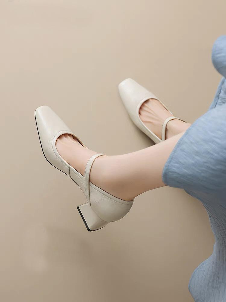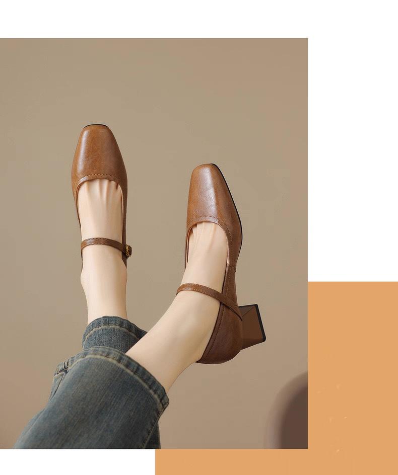 Zapatos de Tacón Alto Rojos 2025 Primavera y Otoño Nuevos Retro Francés Tacón Grueso Mary Janes de Una Tira Zapatos Individuales de Mujer