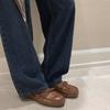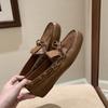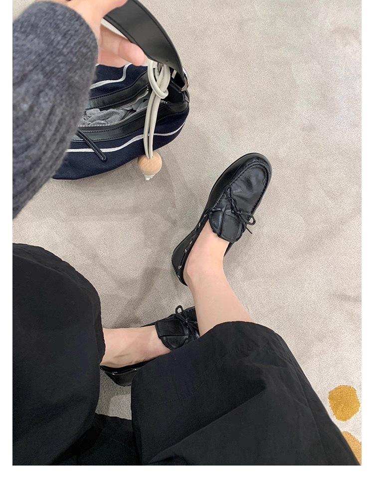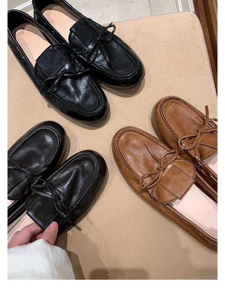 Familia Uva~Versión Piel de Vaca Sydney Fin de Semana~ Textura Piel de Caballo Lavada Mocasín con Lazo Estilo Británico Zapatos de Cuero Mujer