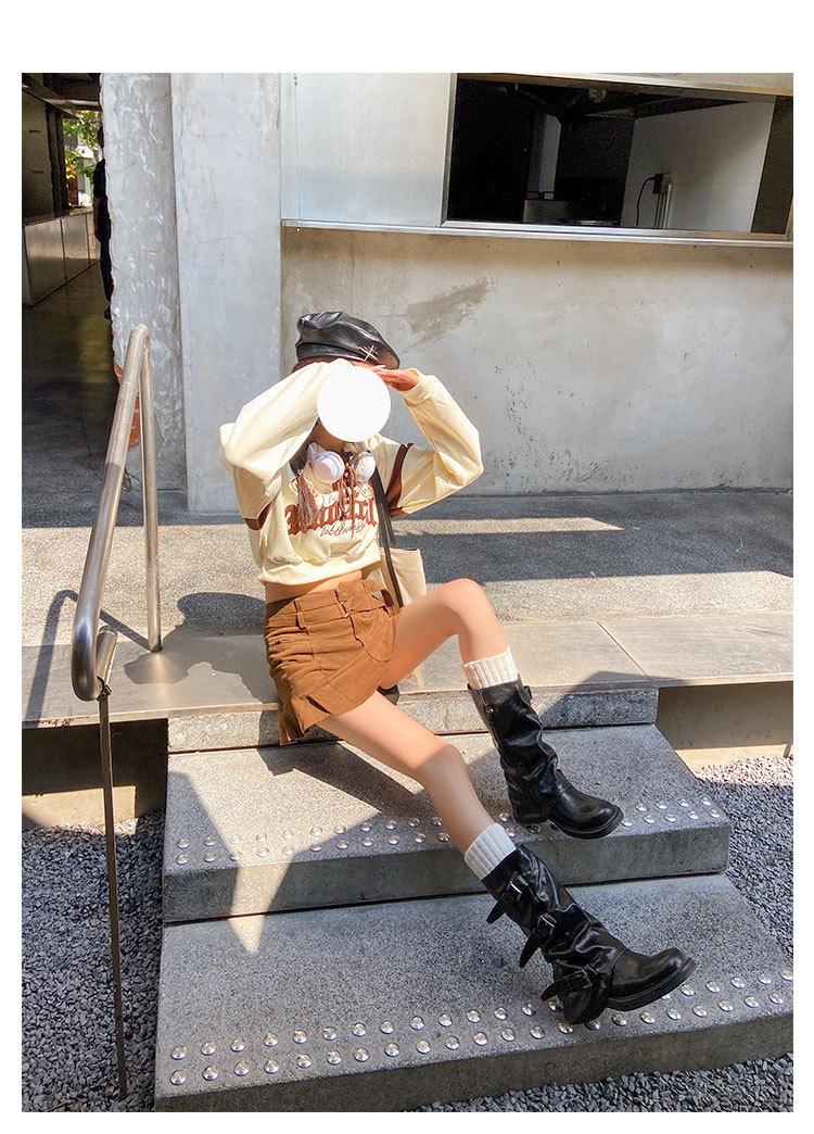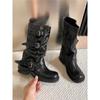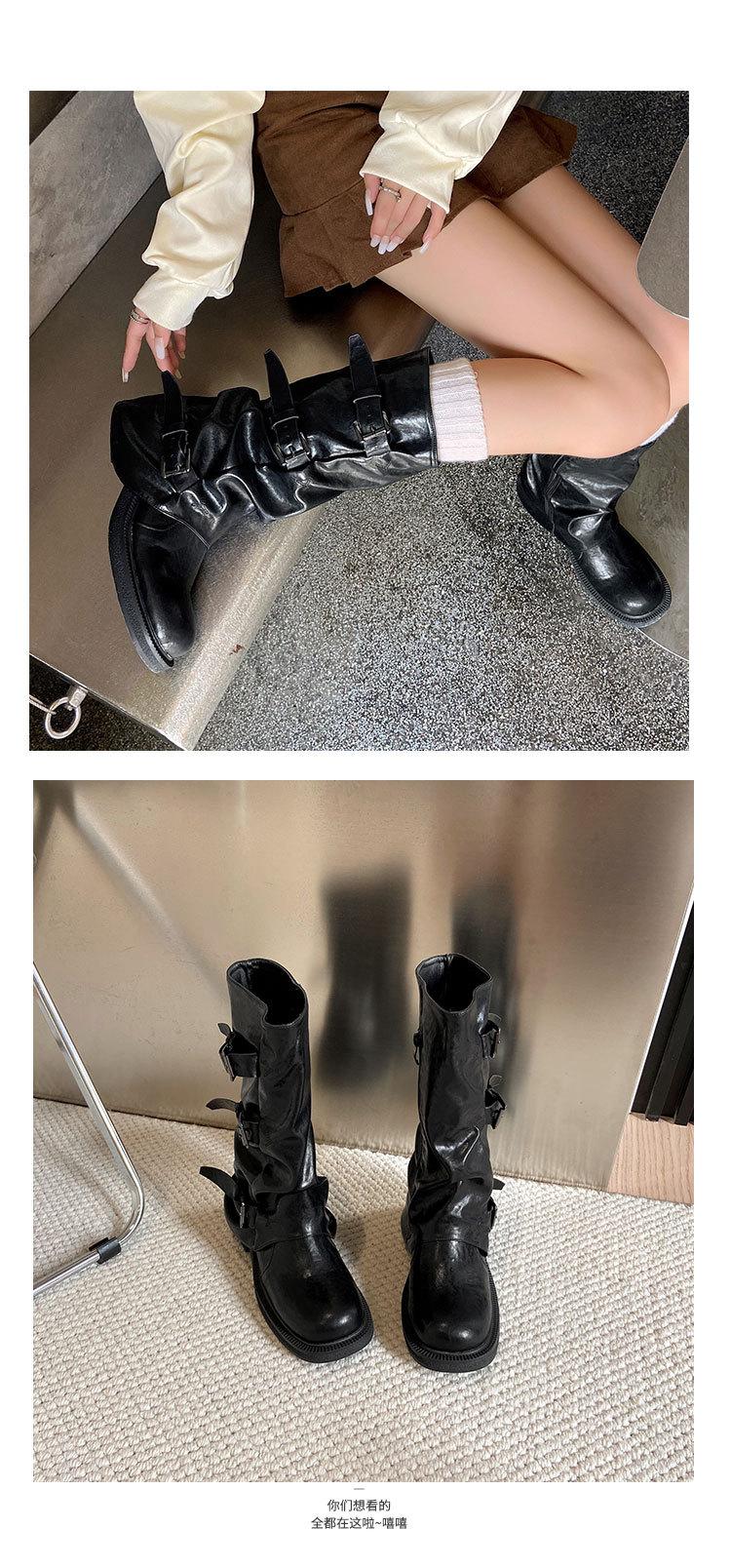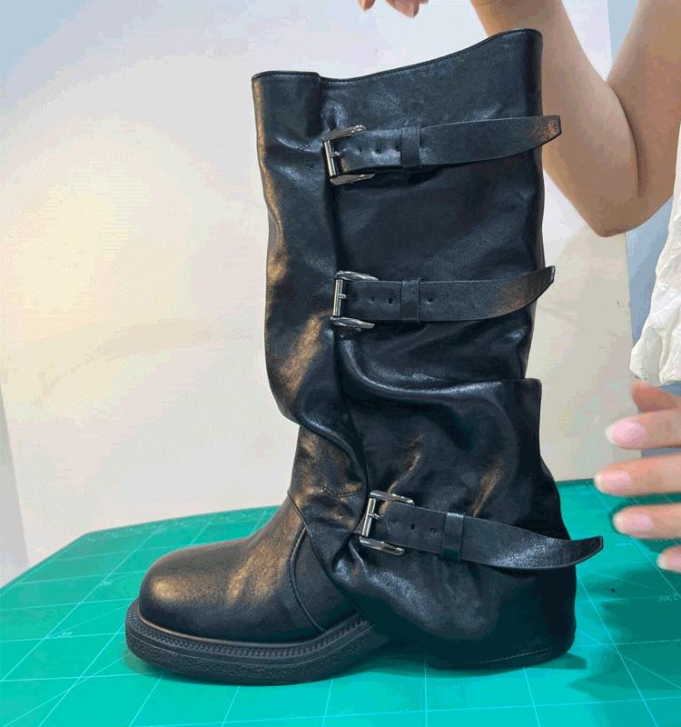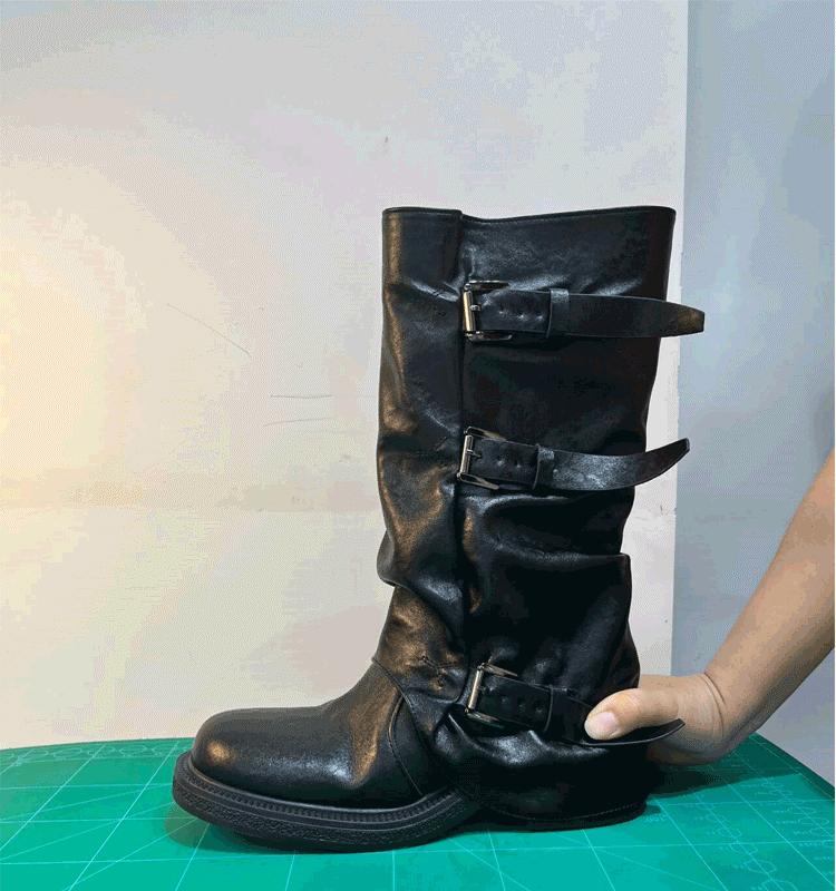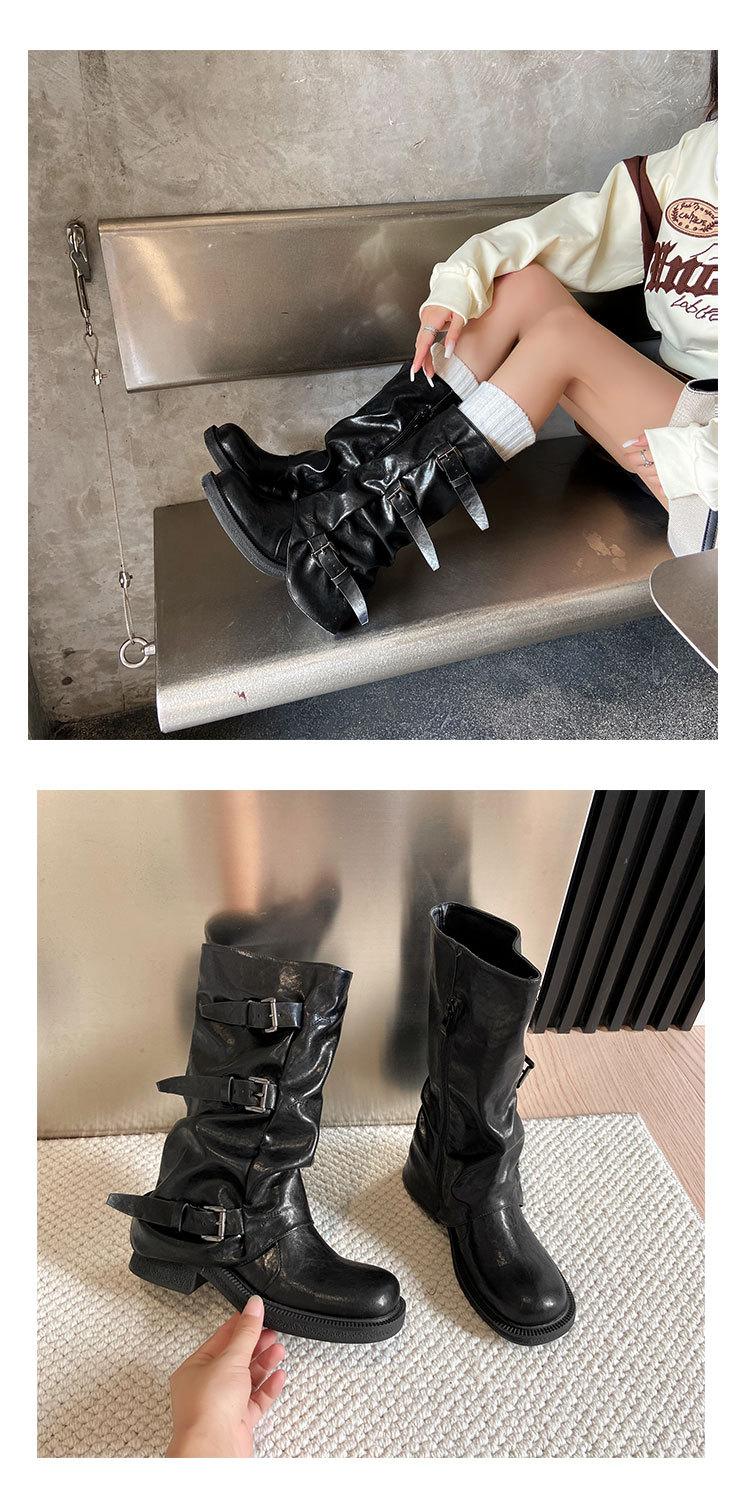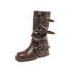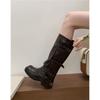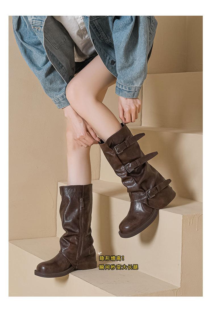 Otoño Nueva Moda Suela Gruesa Hebilla de Cinturón Botas Western Botas de Mujer por Encima de la Rodilla Botas Apiladas Arrugadas Botas de Media Caña