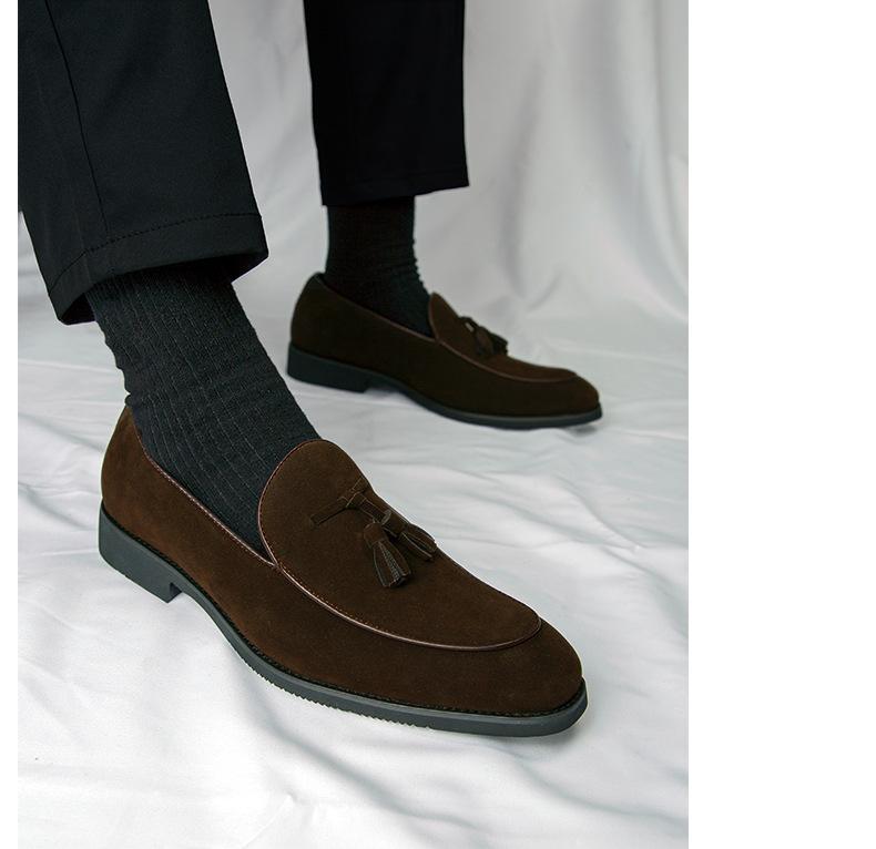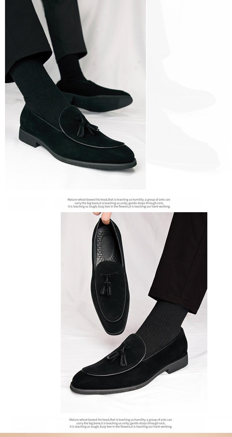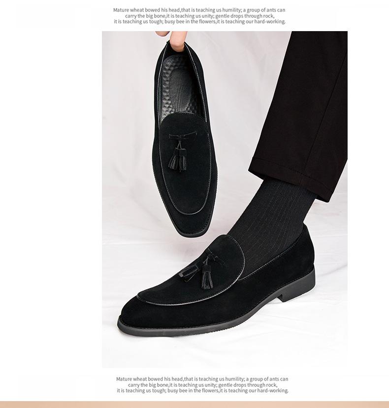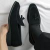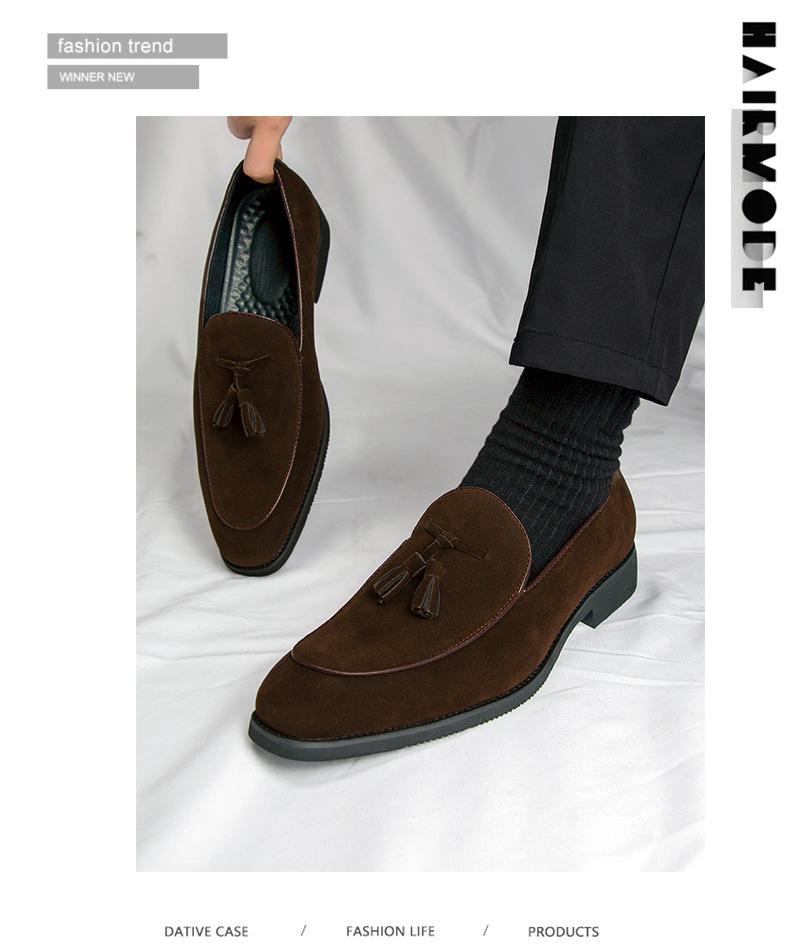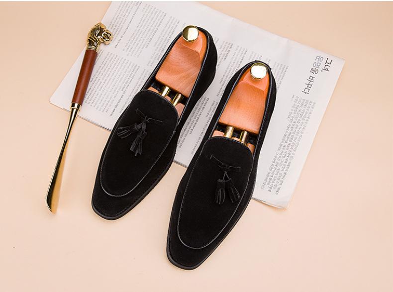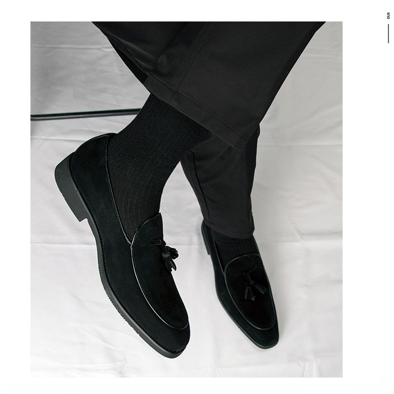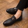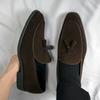Zapatos de cuero versátiles sin cordones de moda coreana para hombre, estilo británico, punta afilada, zapatos de cuero casual de negocios, mocasines ligeros y cómodos
