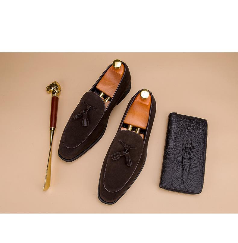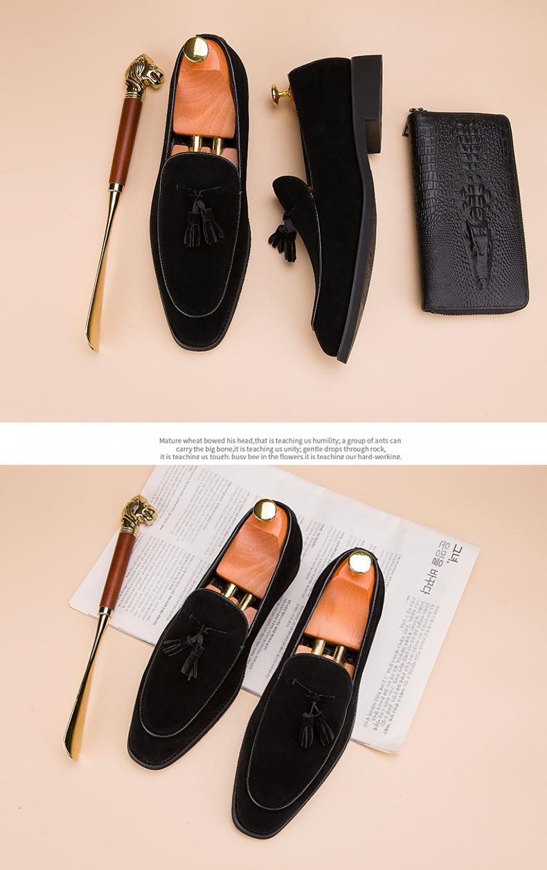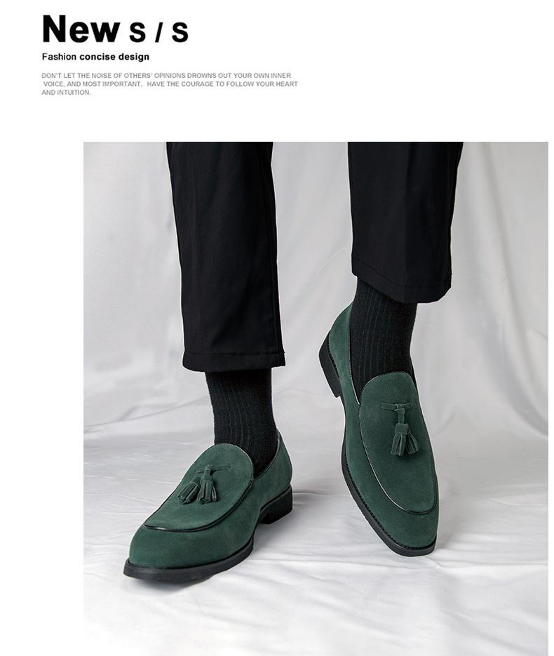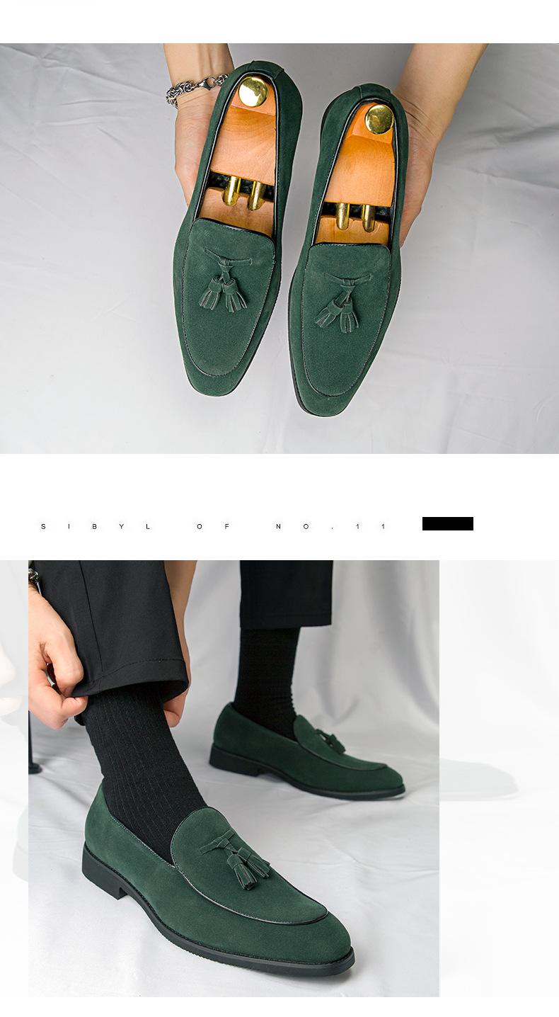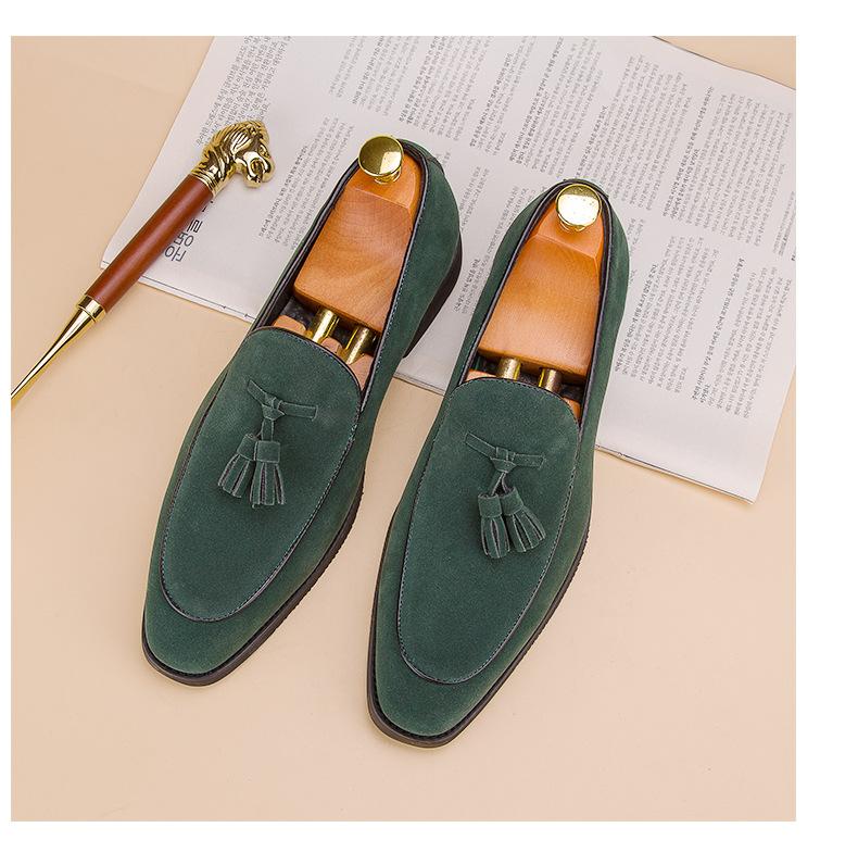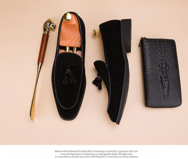 Zapatos de cuero versátiles sin cordones de moda coreana para hombre, estilo británico, punta afilada, zapatos de cuero casual de negocios, mocasines ligeros y cómodos