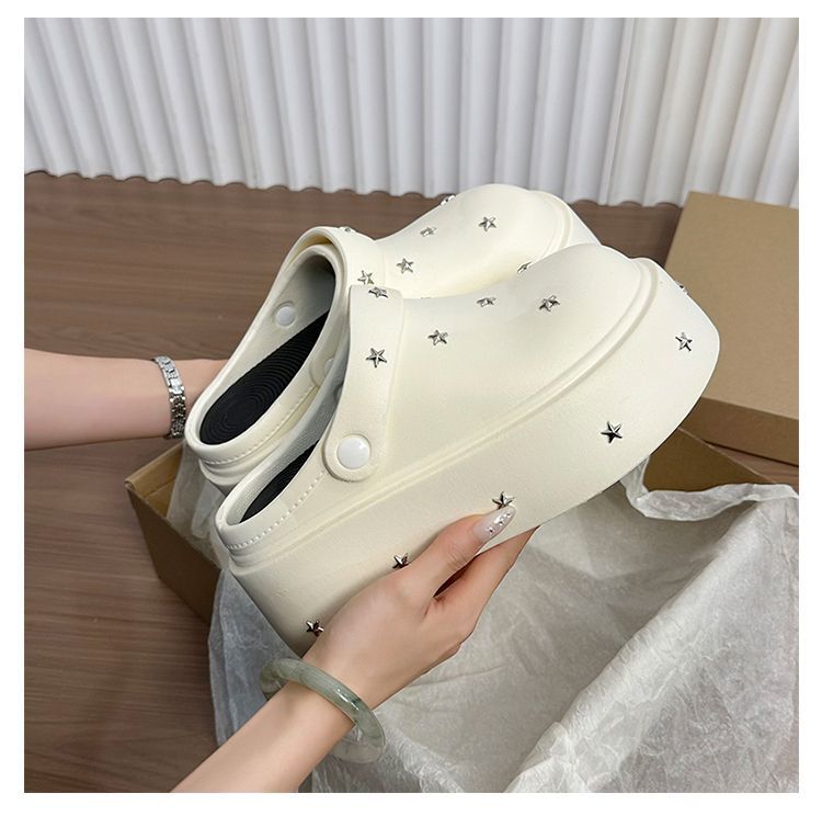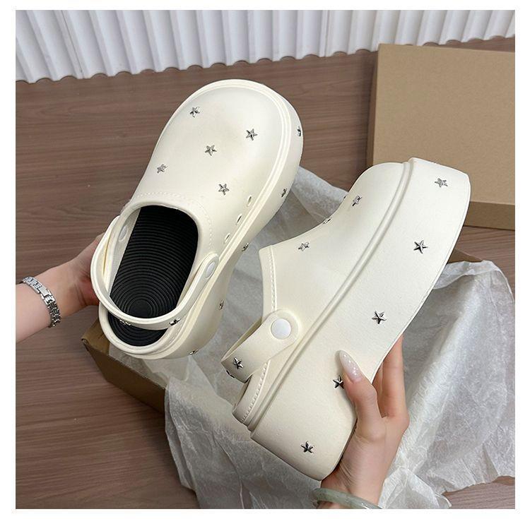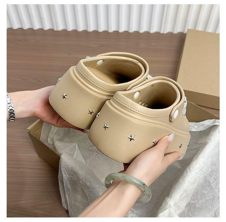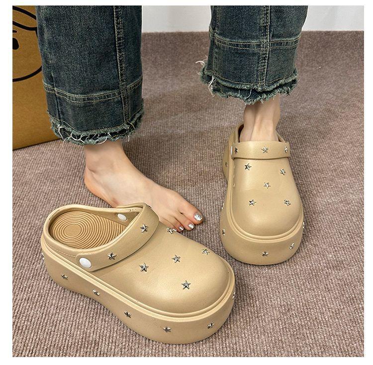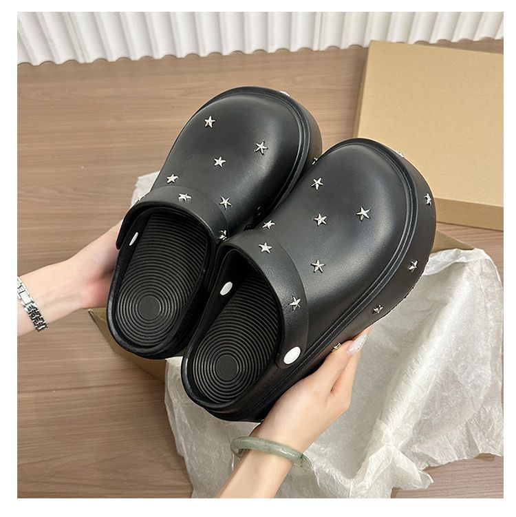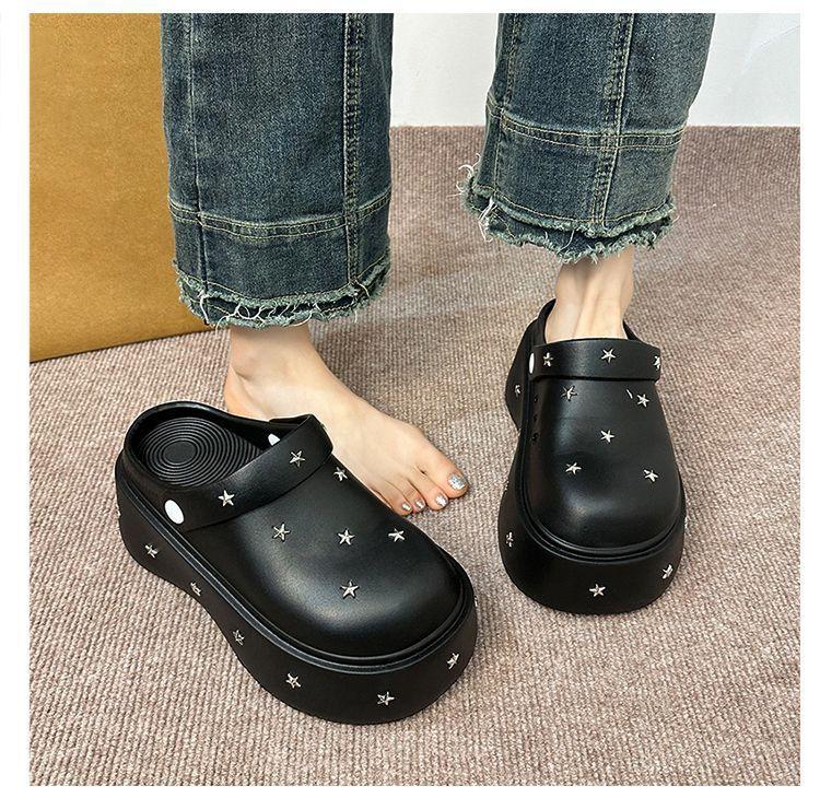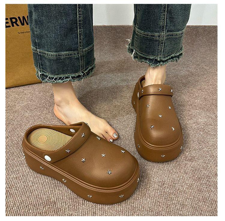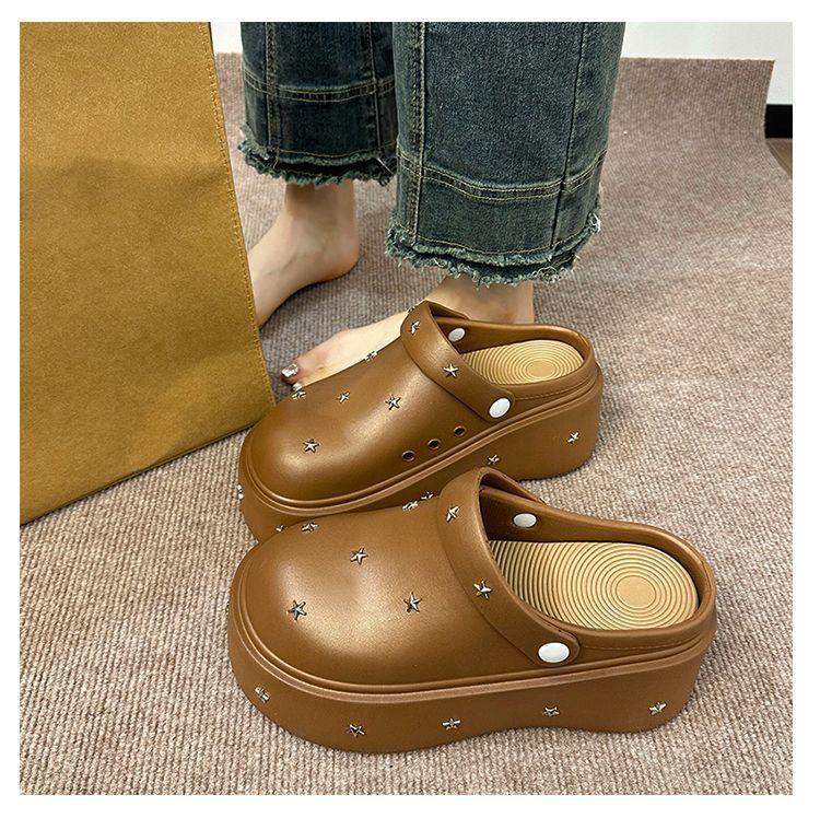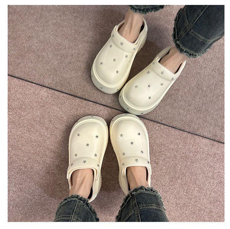 Lindos Zapatos de Agujeros de Medio Slip de Punta Redonda Antideslizantes de Suela Gruesa para Mujer 2025 Primavera y Otoño Nuevos Talla Pequeña Aumentadores de Altura Resistentes al Olor Pantuflas Frescas