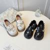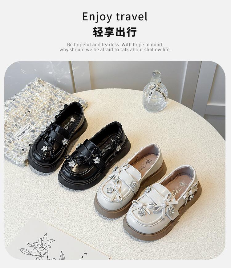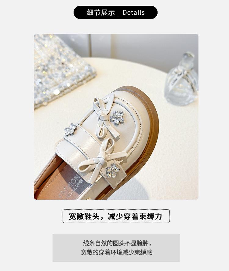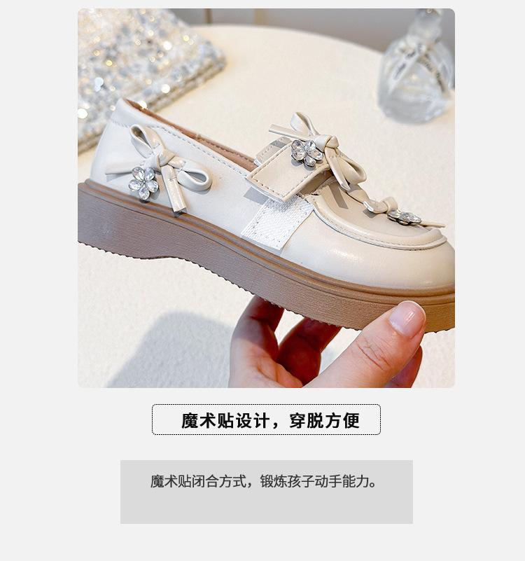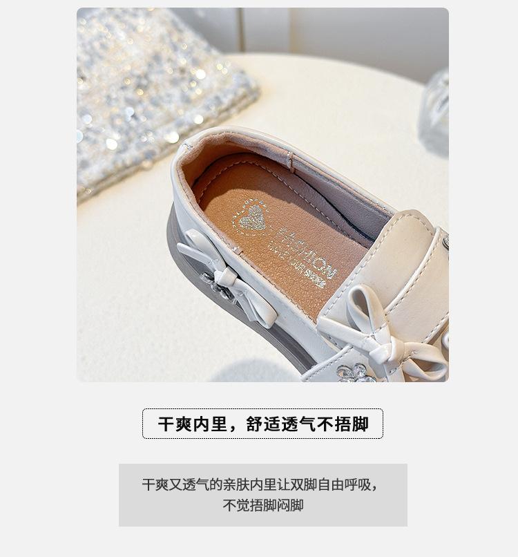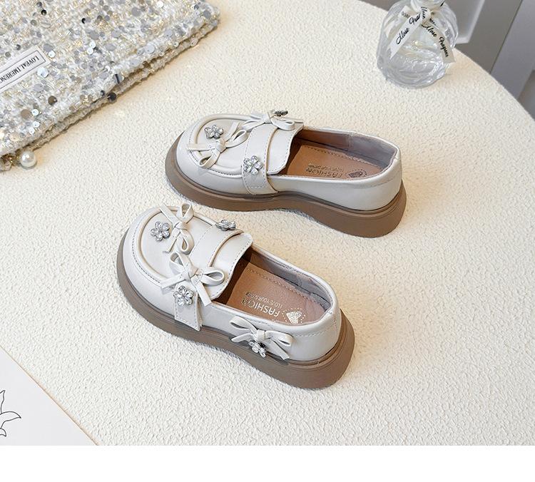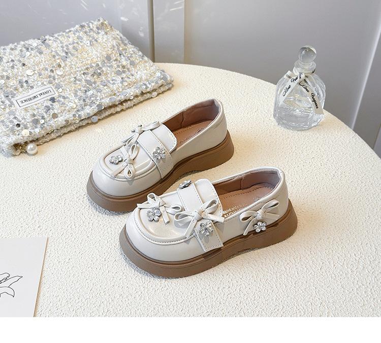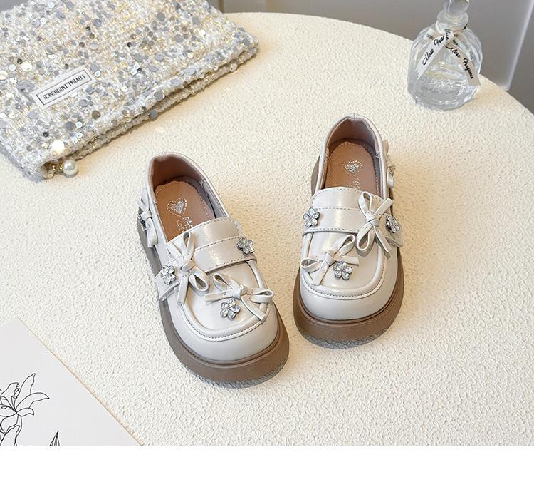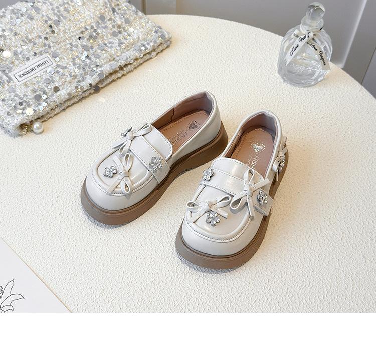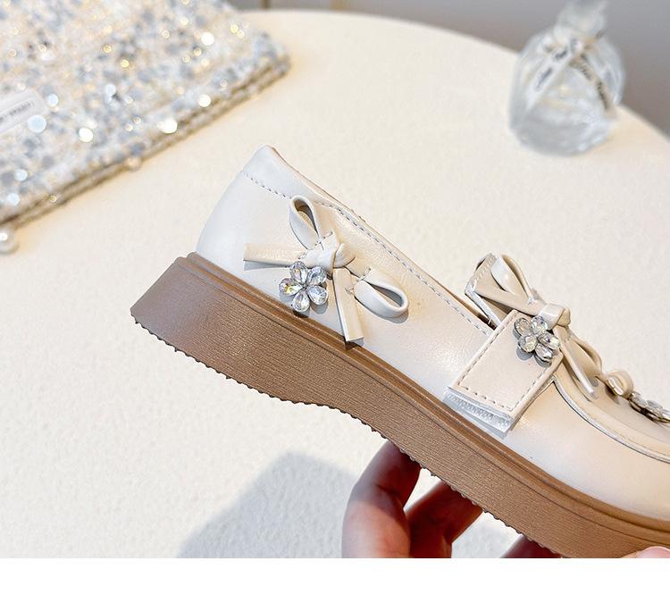 Zapatos de Princesa para Niñas Zapatos Individuales Otoño 2025 Nuevos Pedrería Desempeño Mocasines Niñas Lazo Zapatos de Cuero Negros