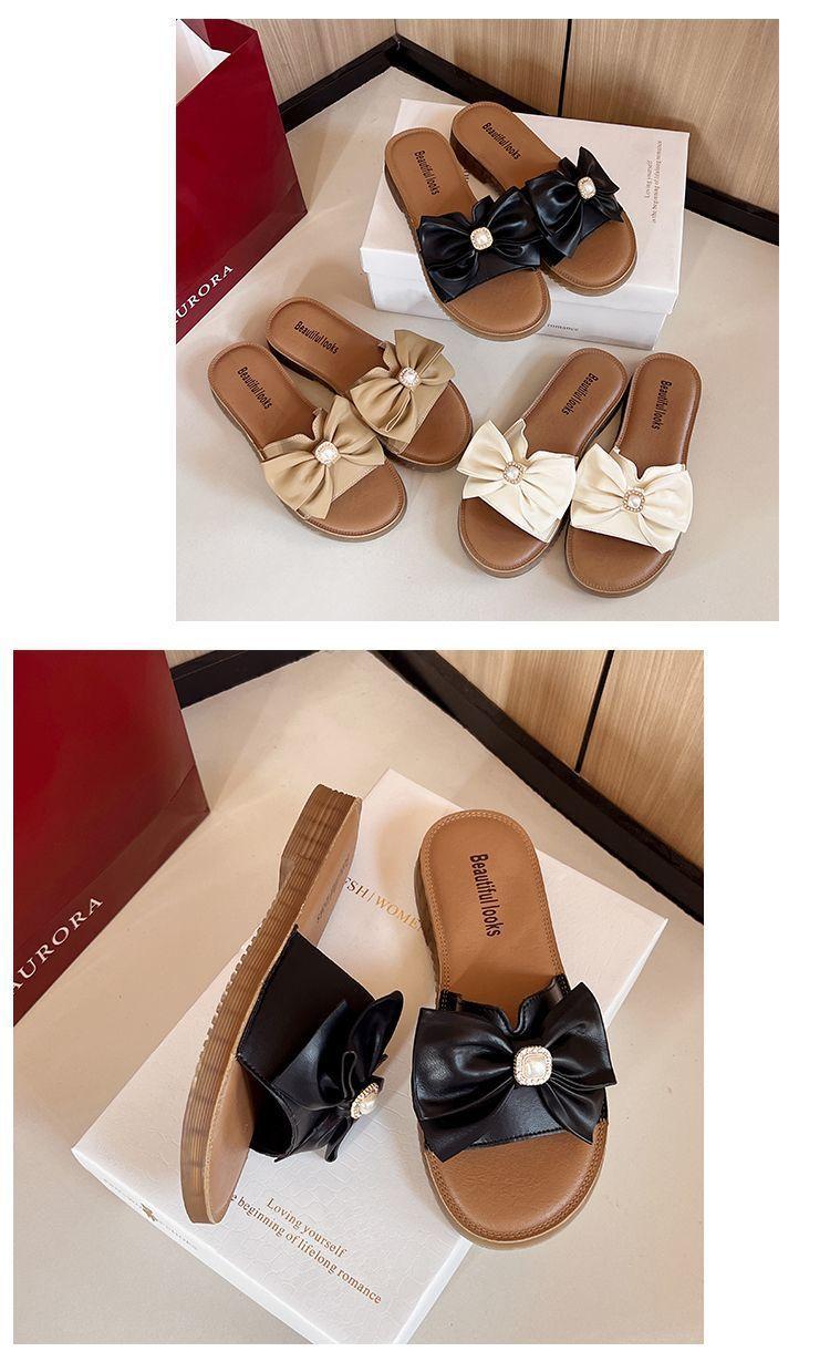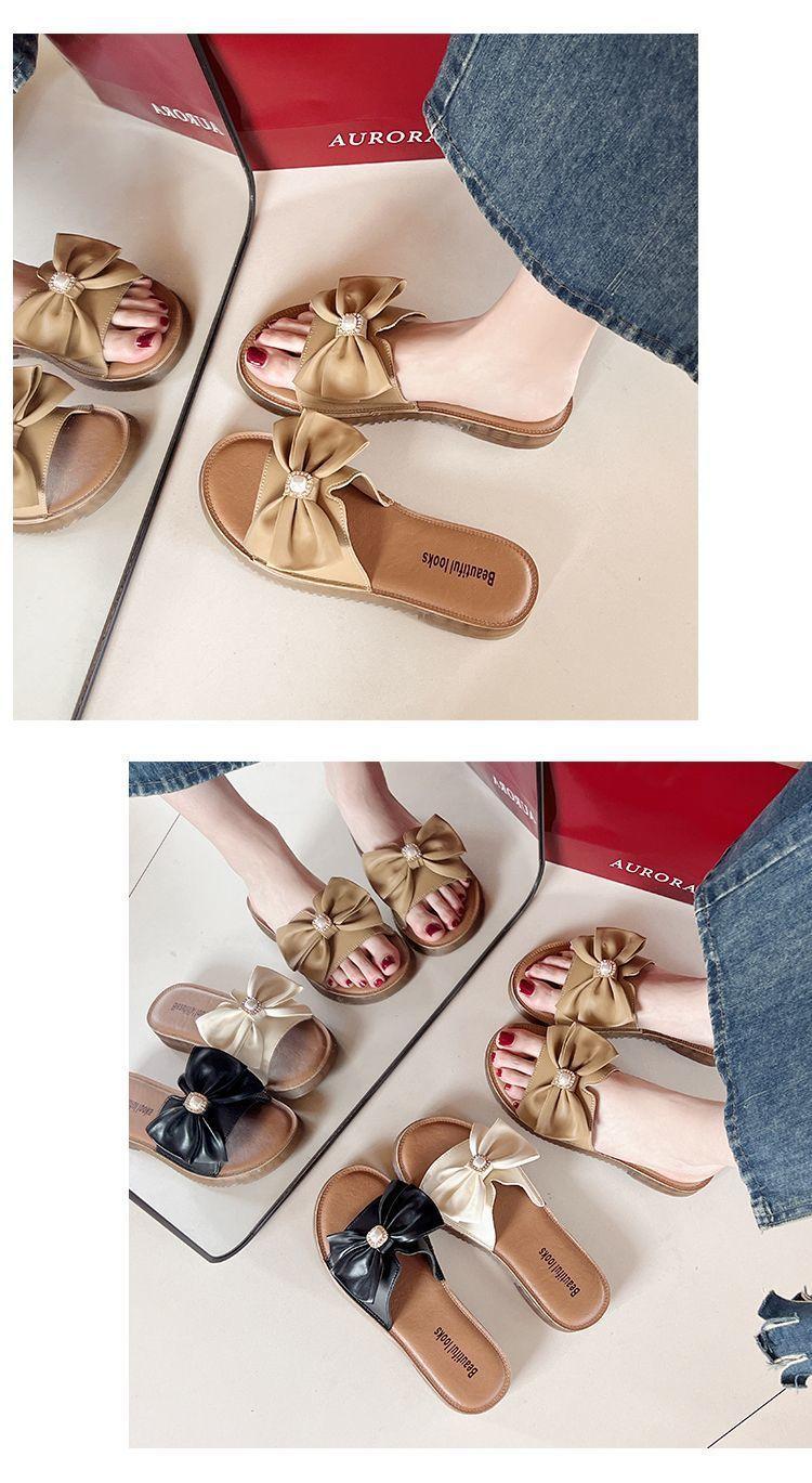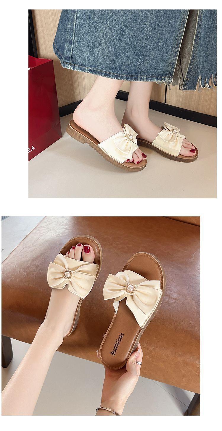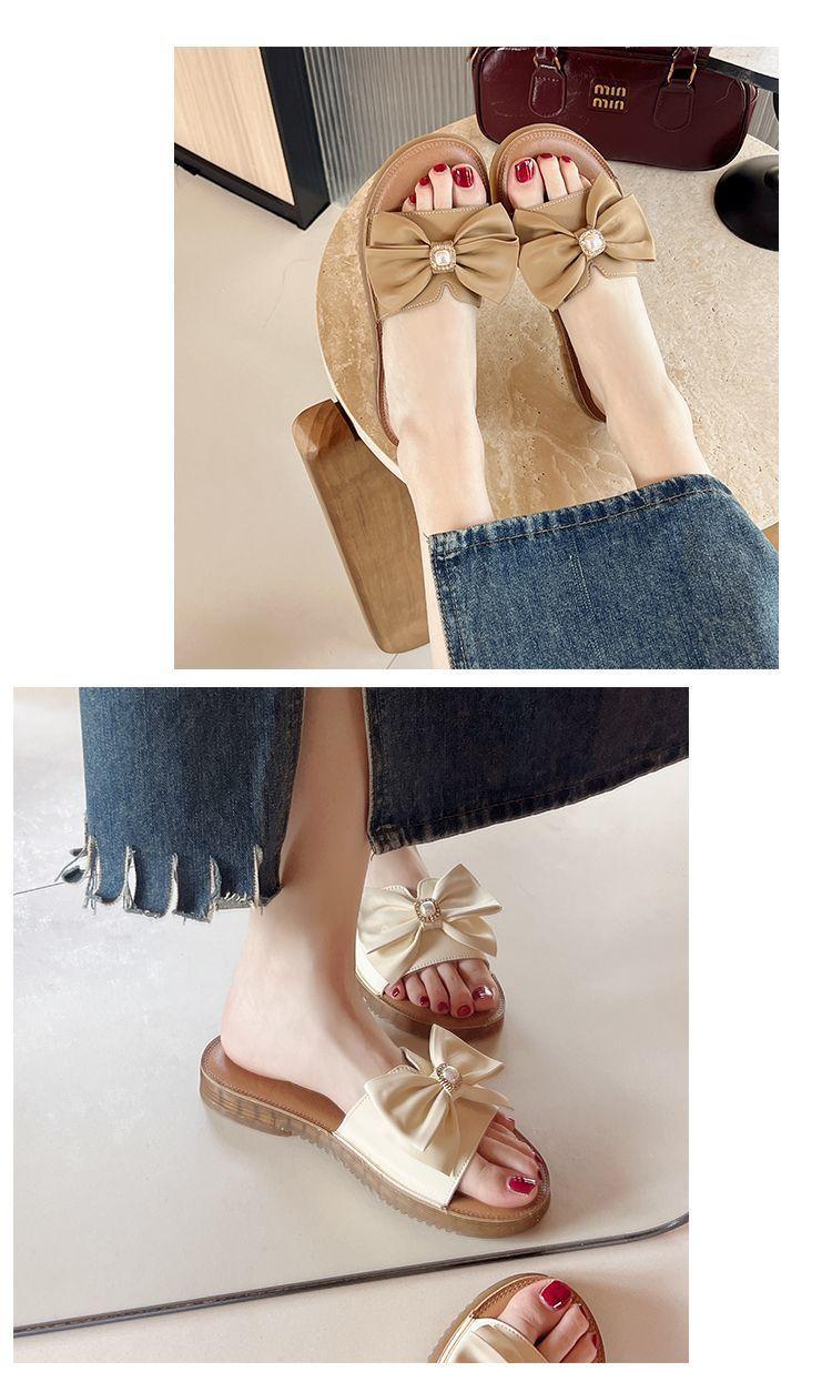 Sandalias de Playa de Moda de Suela Blanda Francesa de Hada para Mujer Verano 2025 Zapatillas Planas de Una Tira para Playa Zapatillas con Lazo para Playa