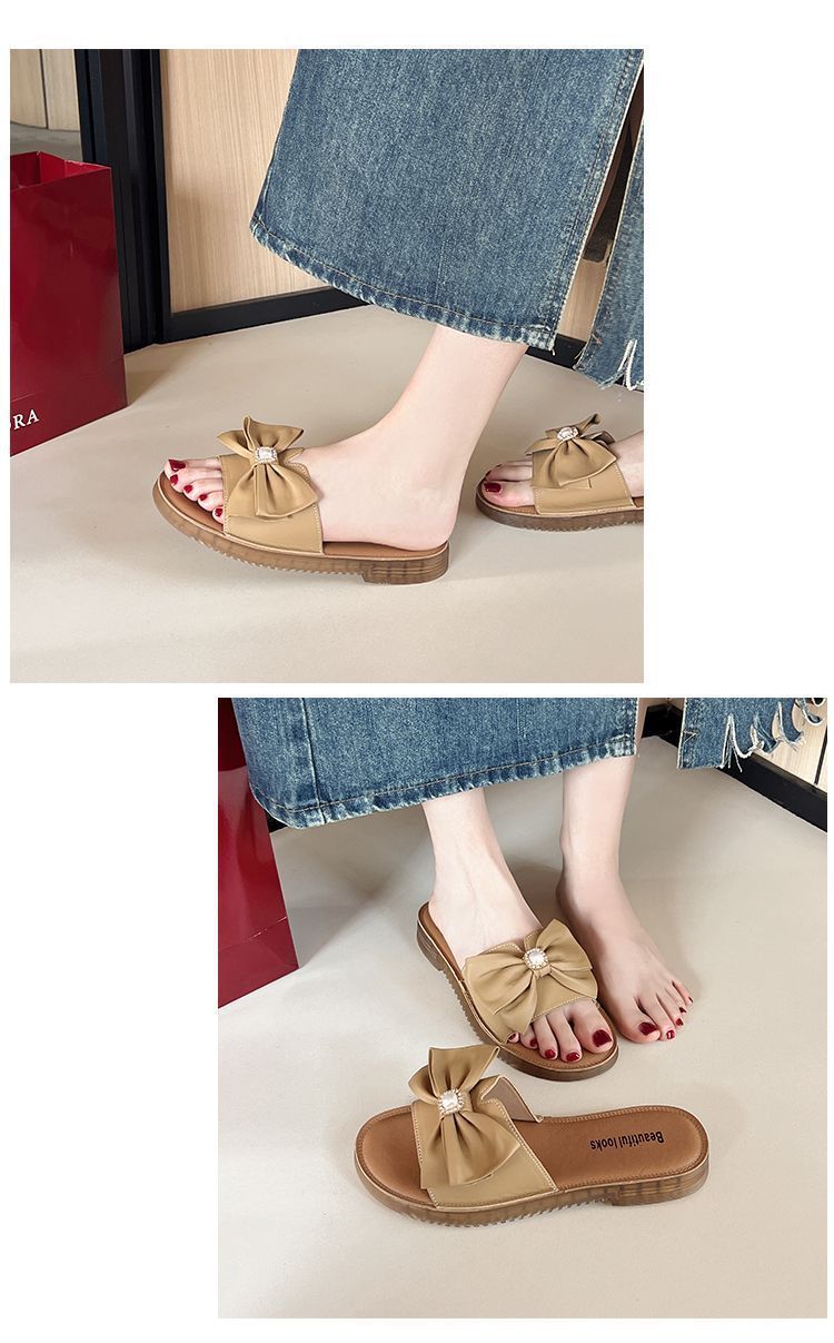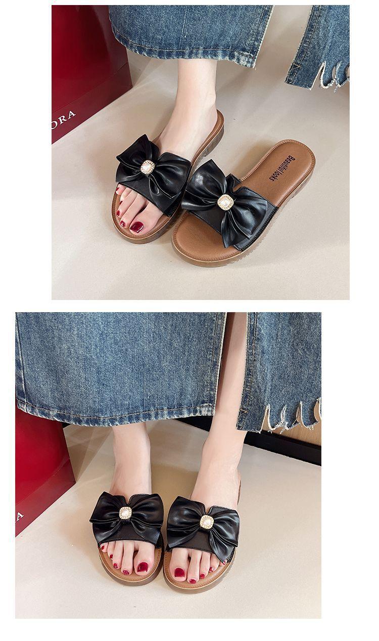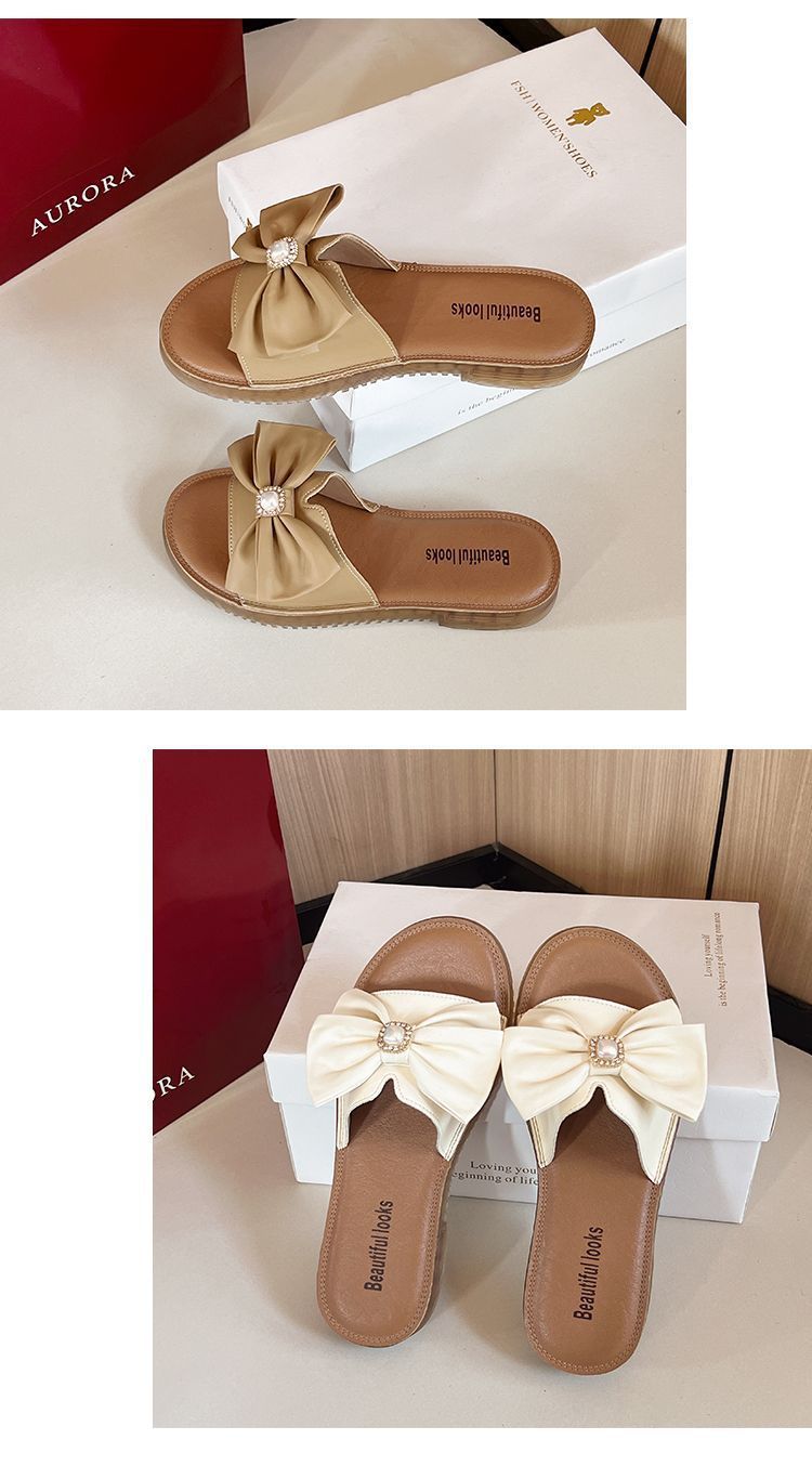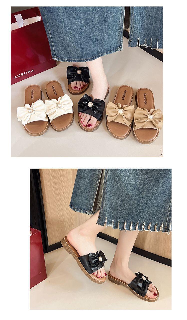 Sandalias de Playa de Moda de Suela Blanda Francesa de Hada para Mujer Verano 2025 Zapatillas Planas de Una Tira para Playa Zapatillas con Lazo para Playa