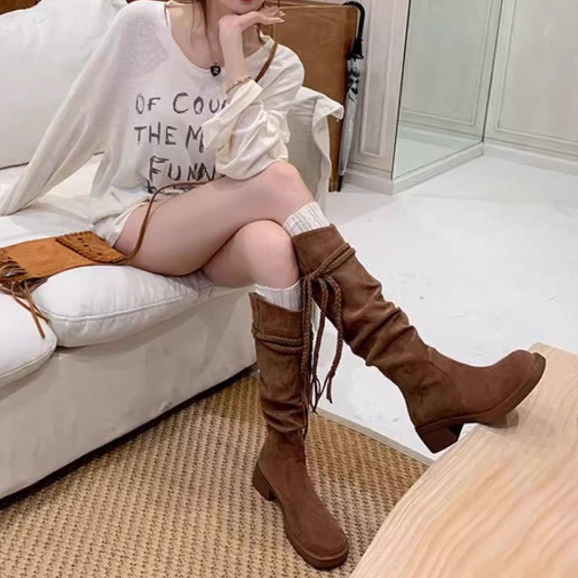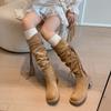 Botas de Tacón Grueso de Moda Apiladas Mujer 2025 Primavera y Otoño Nuevo Retro Borla Tubo Alto Sobre la Rodilla Botas Largas para Dama