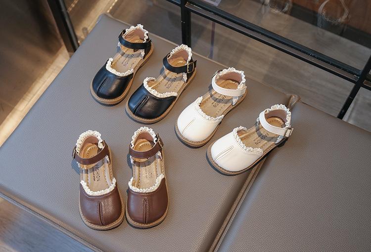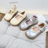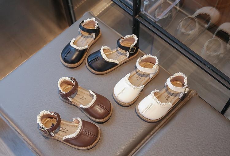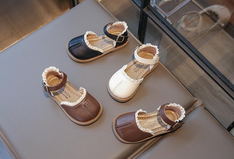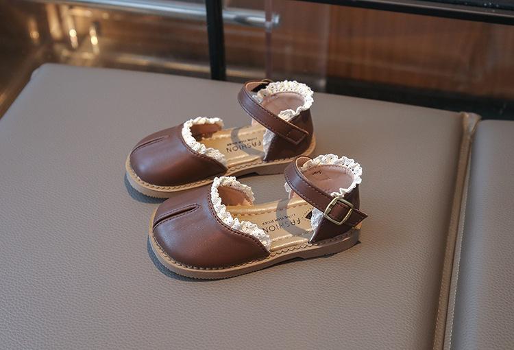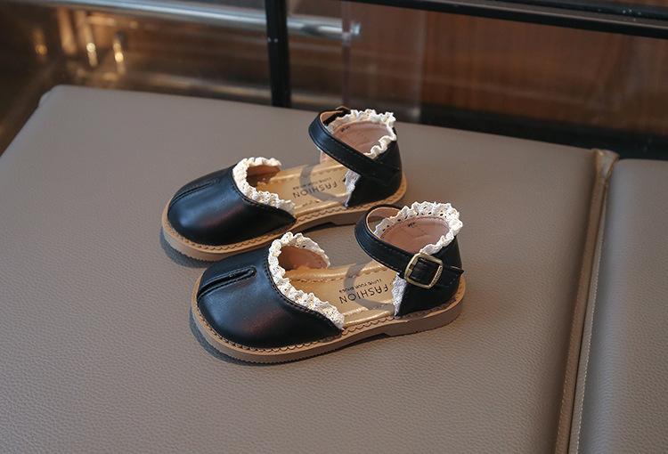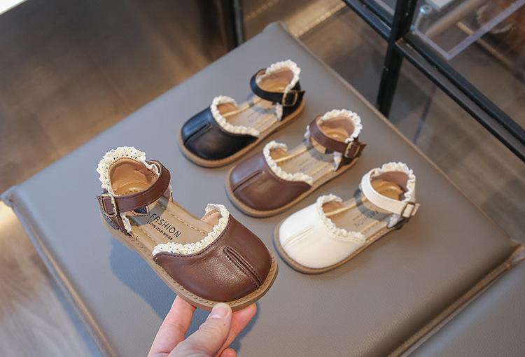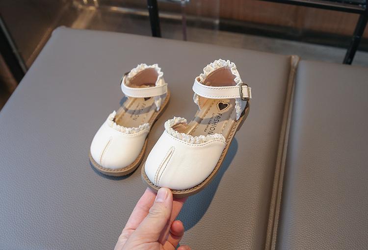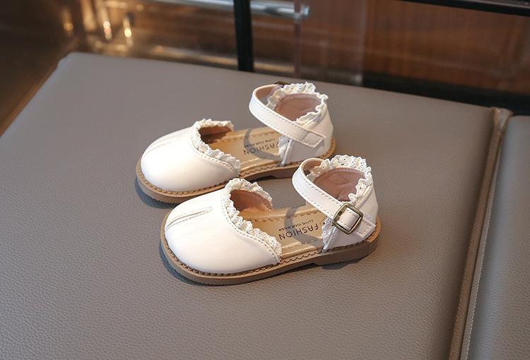 Zapatos de Princesa de Encaje de Moda para Bebé con Punta Falsa Escotados Primavera y Otoño 2025 Nuevos Zapatos Pequeños de Cuero de Temperamento Simple para Niñas