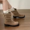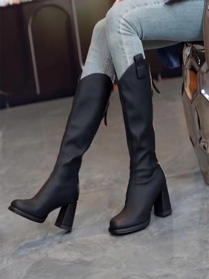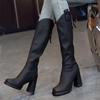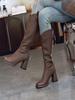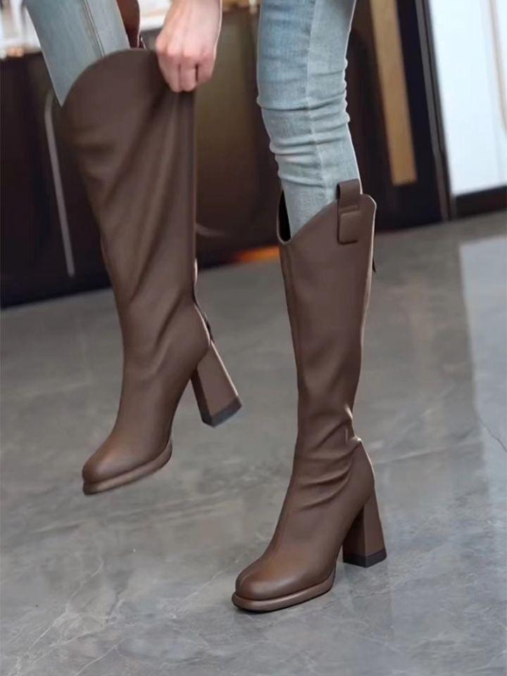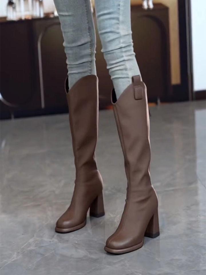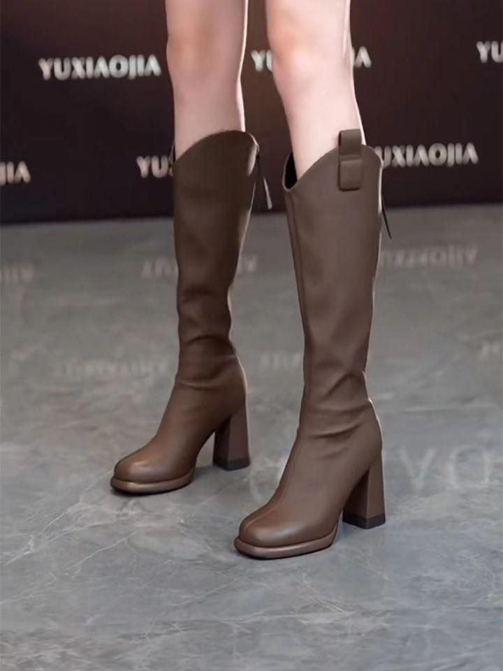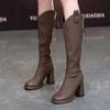 Zapatos de marca temperamento punta cuadrada botas de caballero mujer 2025 invierno nuevo botas de tacón alto más terciopelo cálido tacón grueso botas largas
