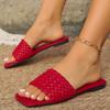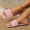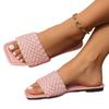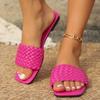 Tallas Grandes Flats de Punta Cuadrada Zapatillas de Mujer Simples Color Puro Correa Trenzada de una Línea para Exterior Playa Zapatillas de Mujer Zapatillas