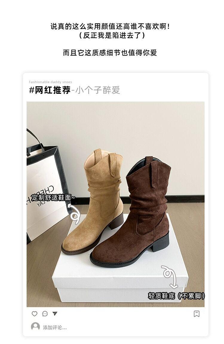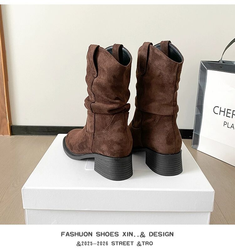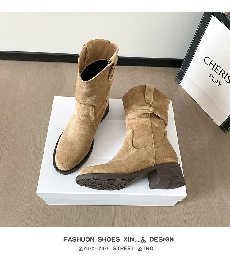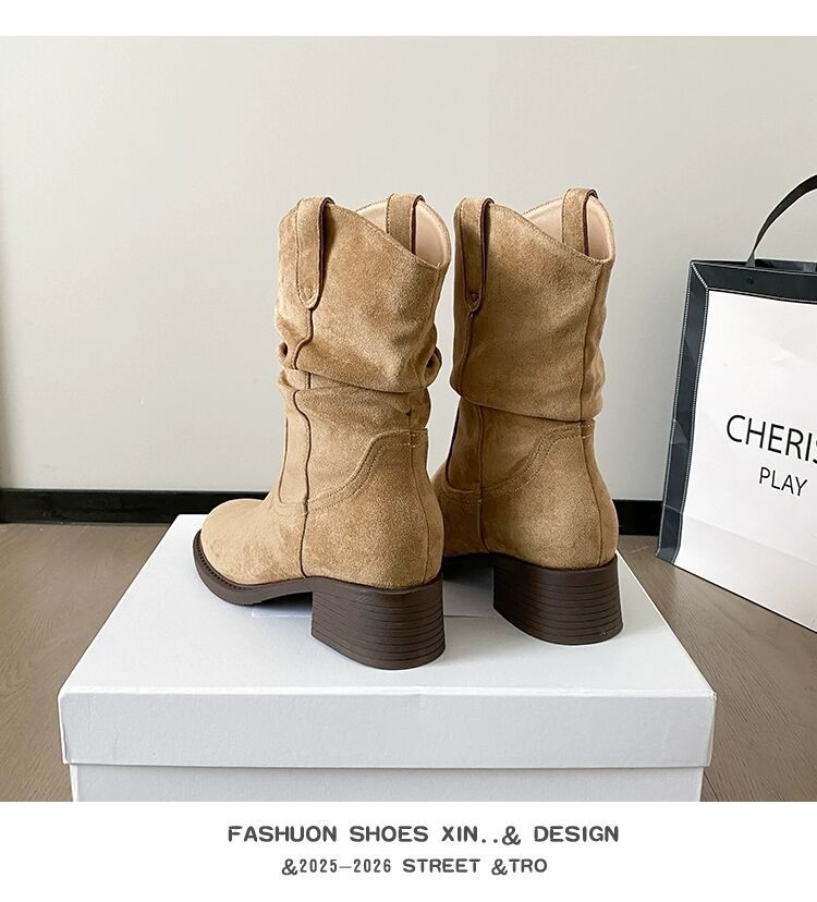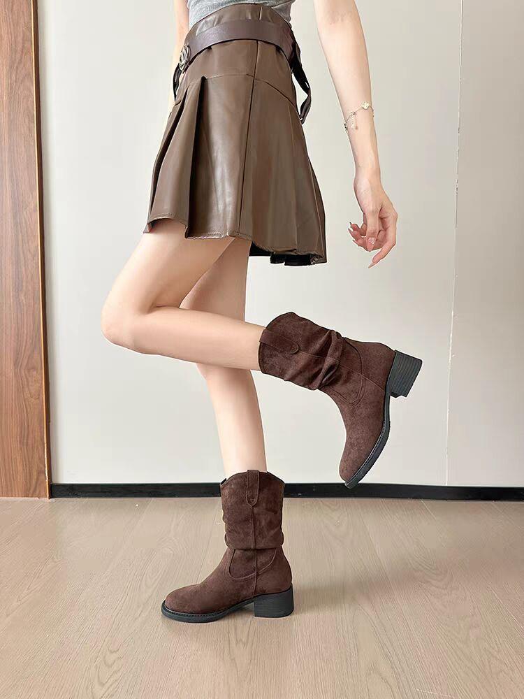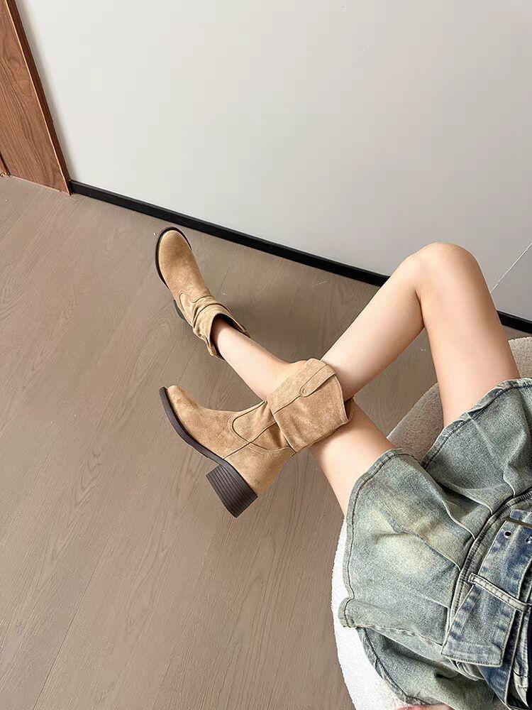 Botas Apiladas Qiaofeifei Mujer Verano 2025 Nuevo Estilo Merlad Vaqueras Western Botines Tobilleros Media Pantorrilla Botas Martin Primavera y Otoño