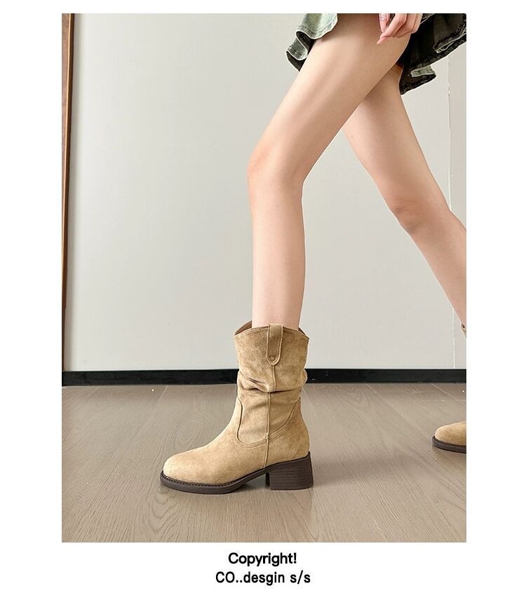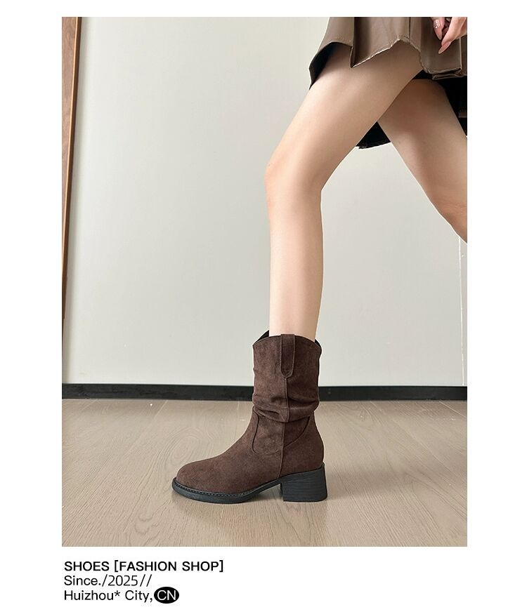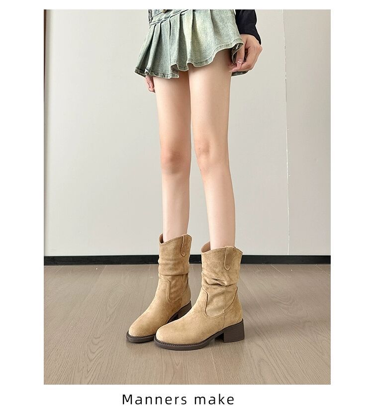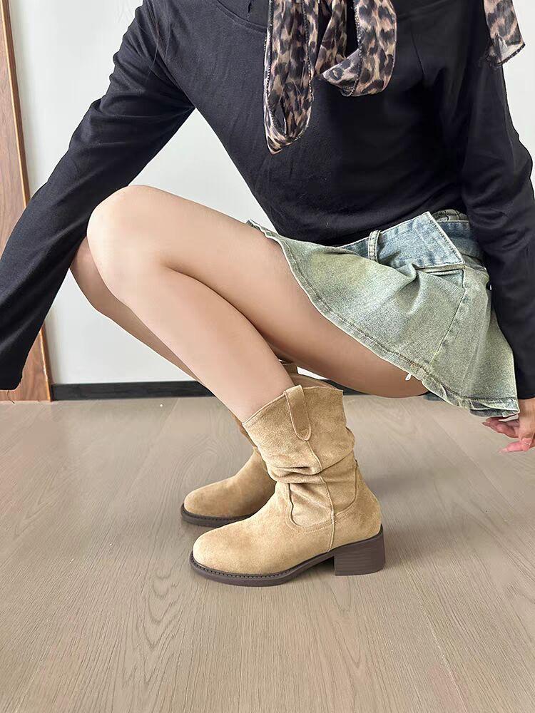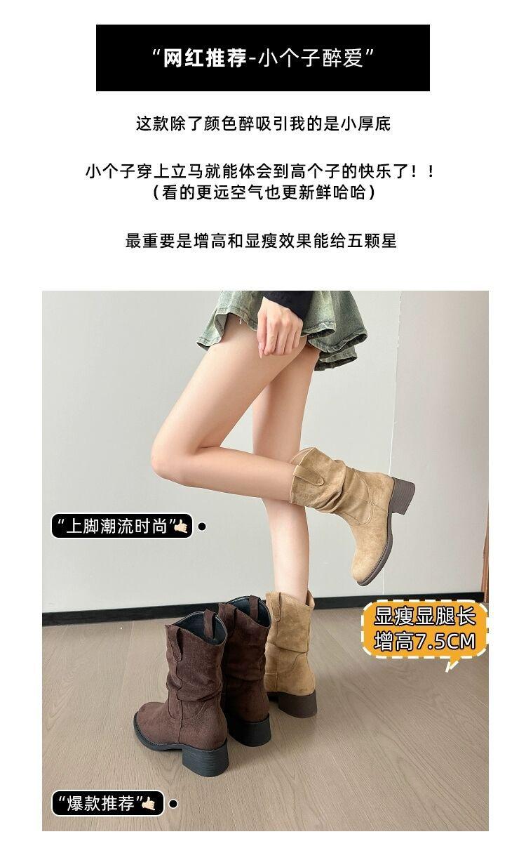 Botas Apiladas Qiaofeifei Mujer Verano 2025 Nuevo Estilo Merlad Vaqueras Western Botines Tobilleros Media Pantorrilla Botas Martin Primavera y Otoño