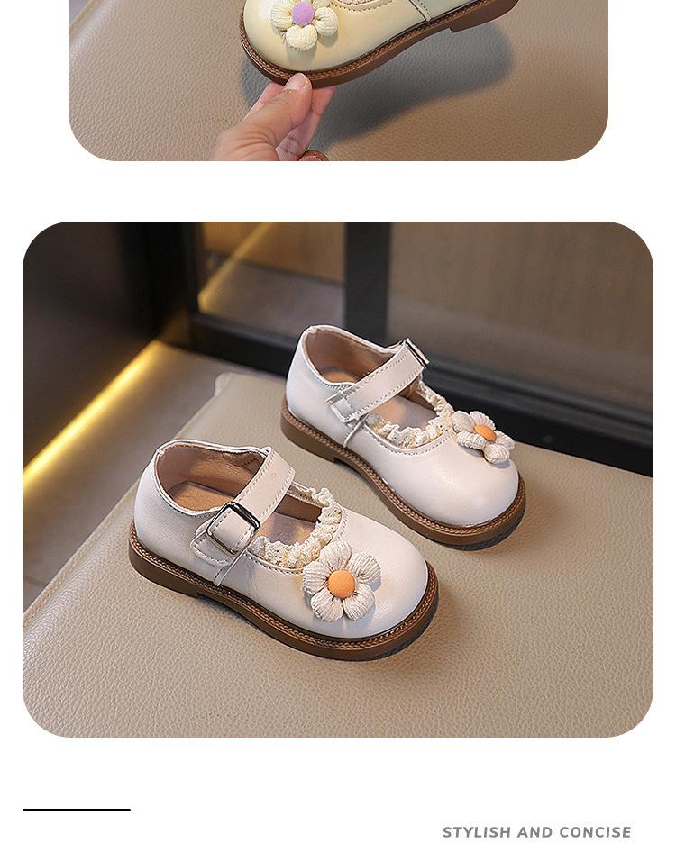 Zapatos de princesa de moda y dulces para niños zapatos de cuero verano 2025 nuevos zapatos individuales para niñas girasol zapatos individuales para niños pequeños