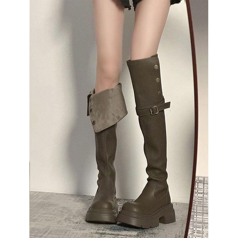 Botas de Caballero 2024 Nuevo Otoño Fondo Alto Grueso Slim Sobre la Rodilla Uso Retro Botines Botas de Mujer