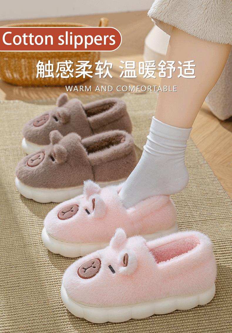 Capybara Plush Cotton Slippers - Pink