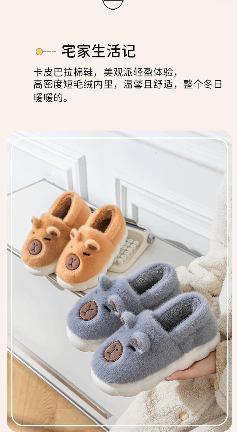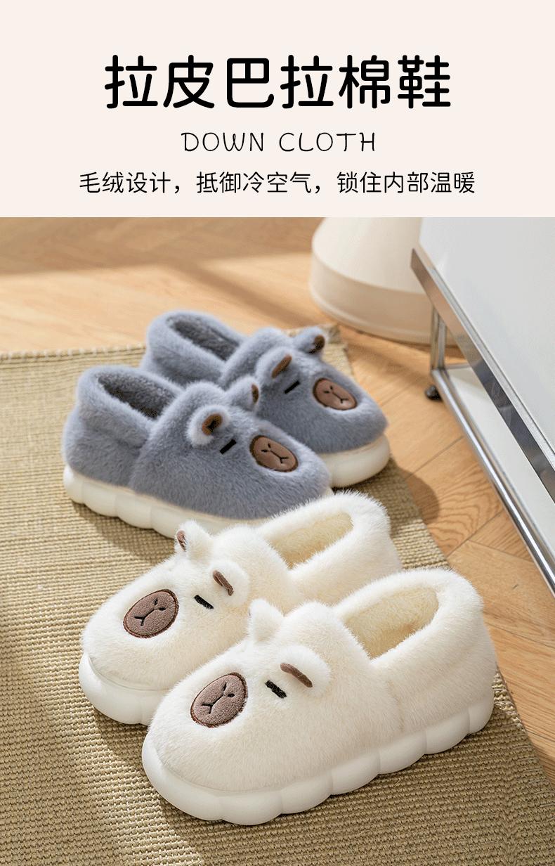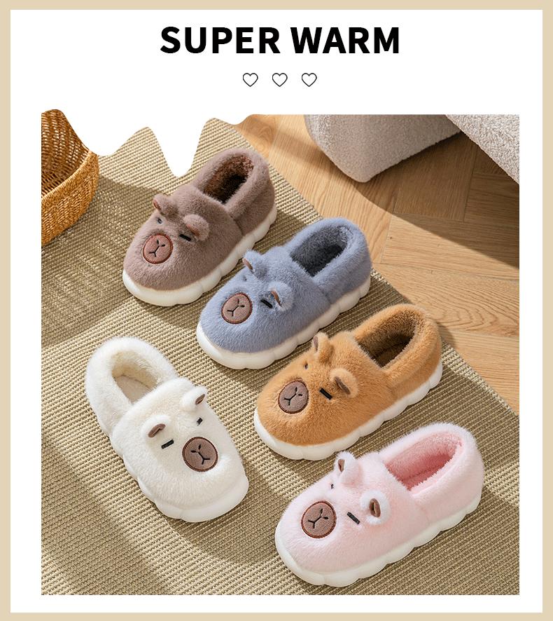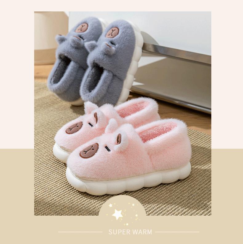 Capybara Plush Cotton Slippers - Grey