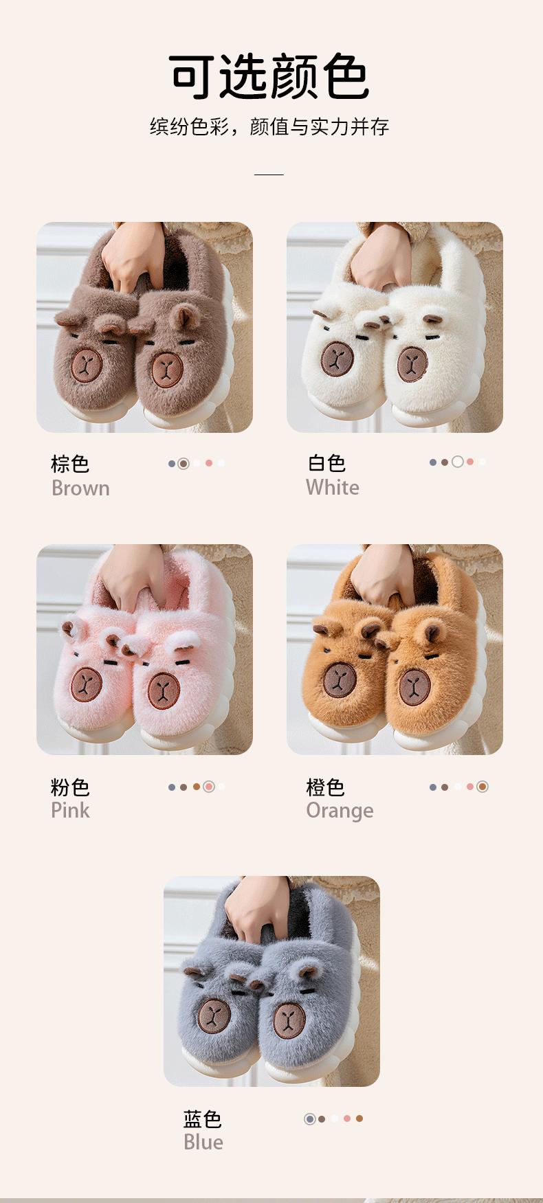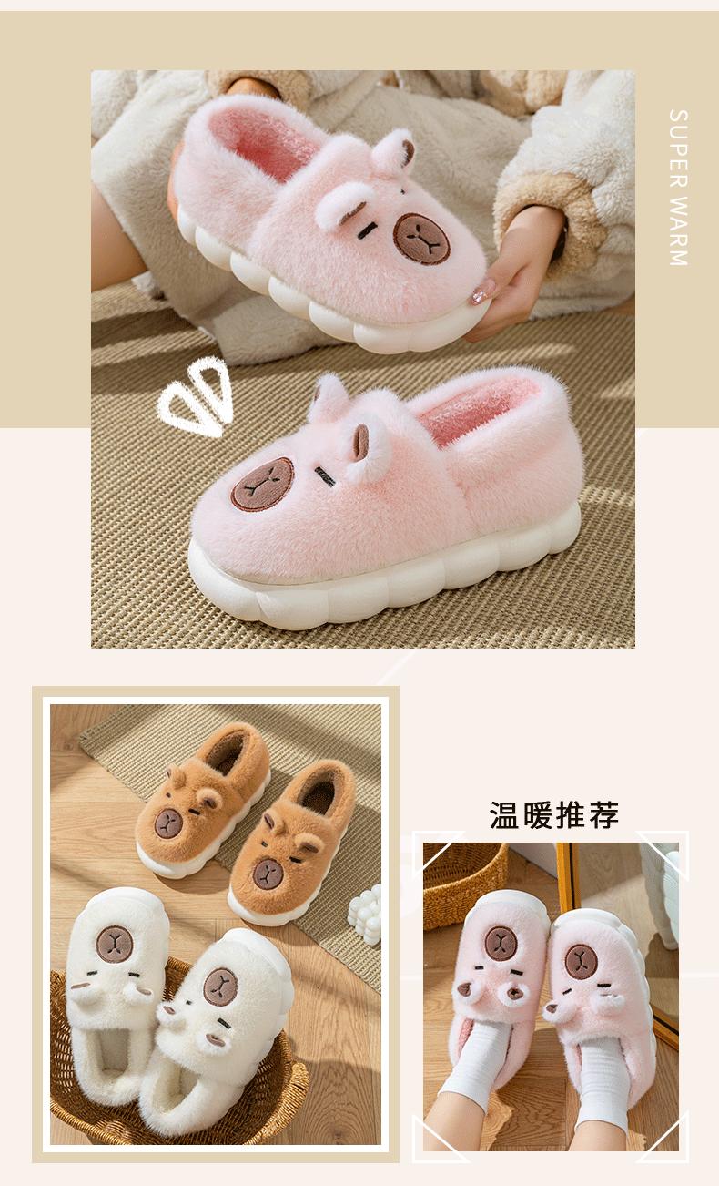 Capybara Plush Cotton Slippers - Brown, Capybara Plush Cotton Slippers - Off-White, Capybara Plush Cotton Slip...