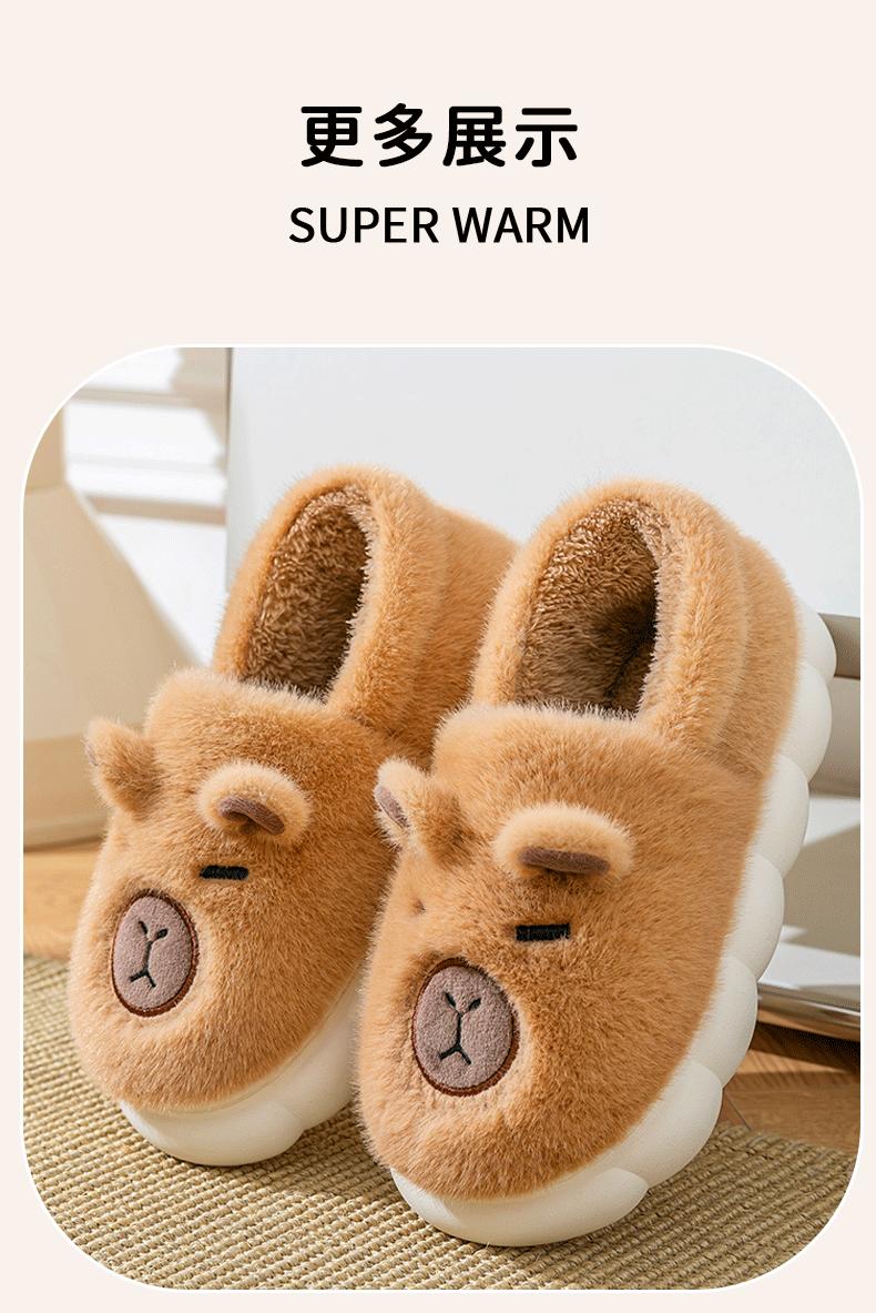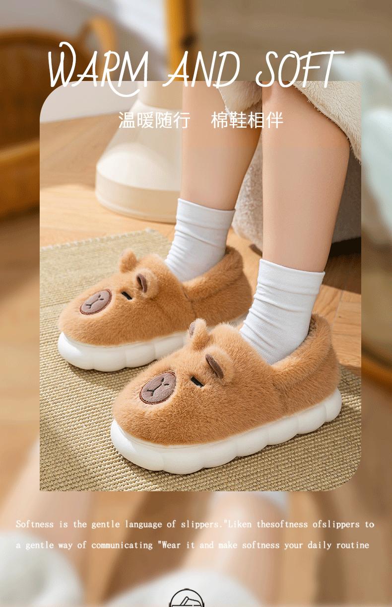 Capybara Plush Cotton Slippers - Brown