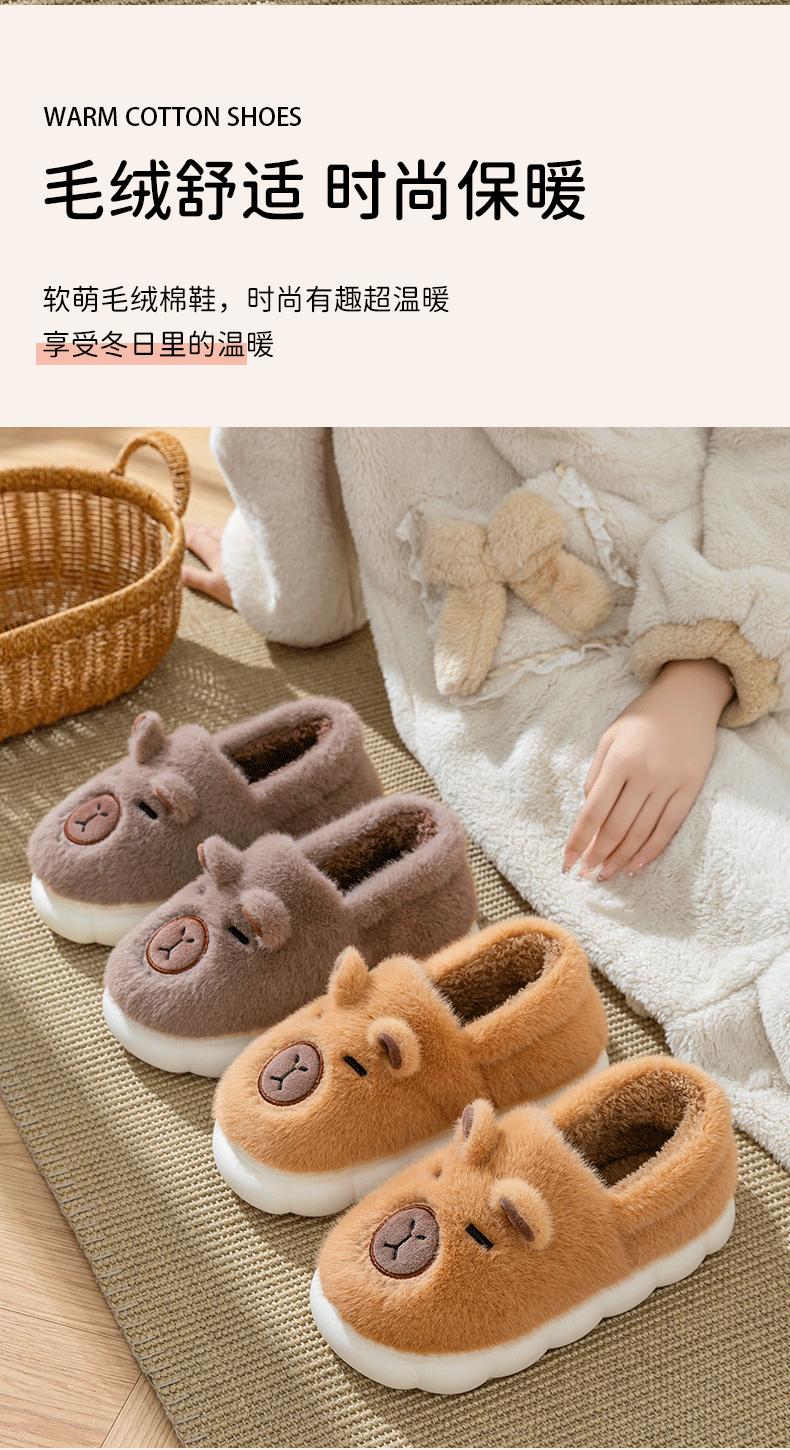 Capybara Plush Cotton Slippers - Coffee