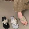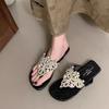 Sandalias de Verano para Mujer para Exterior Estilo Retro Bohemio Chanclas de Perlas Zapatos de Playa