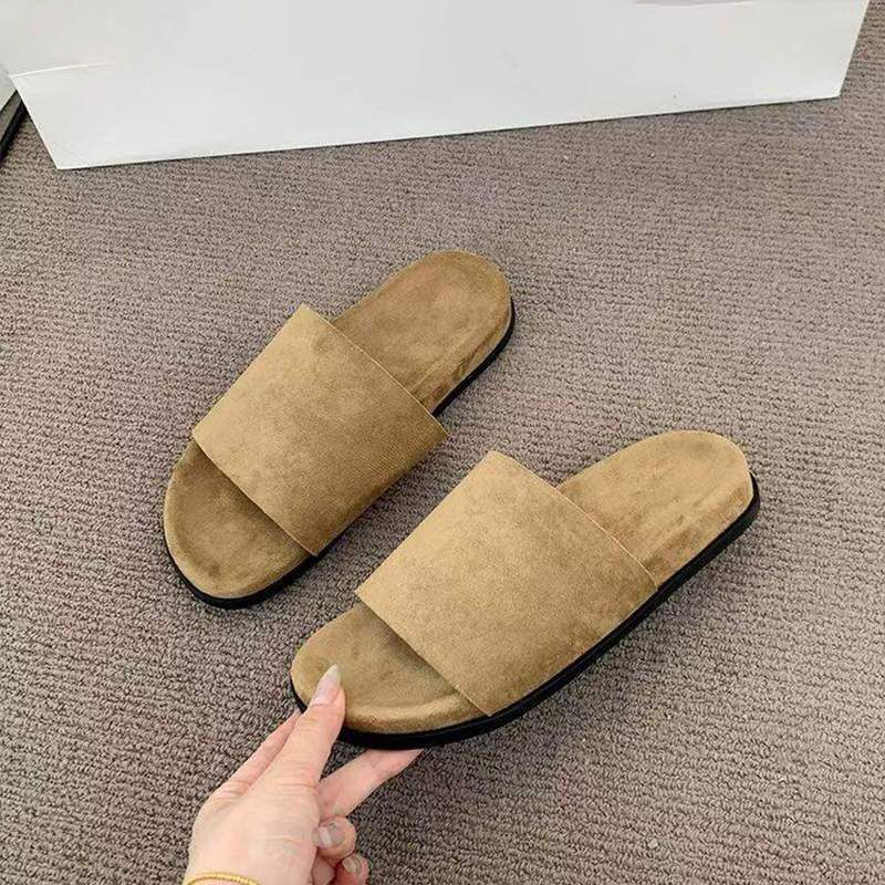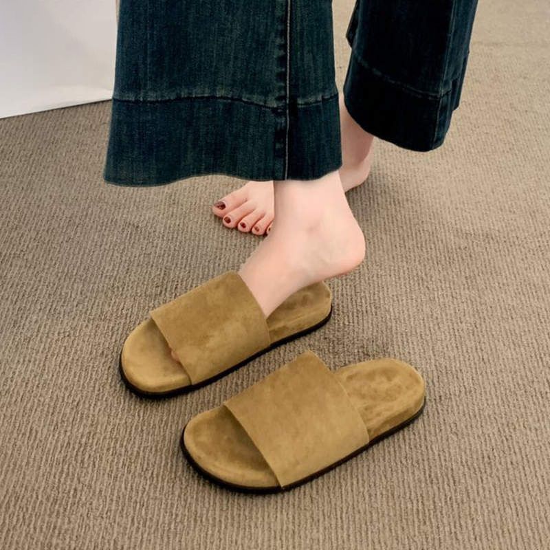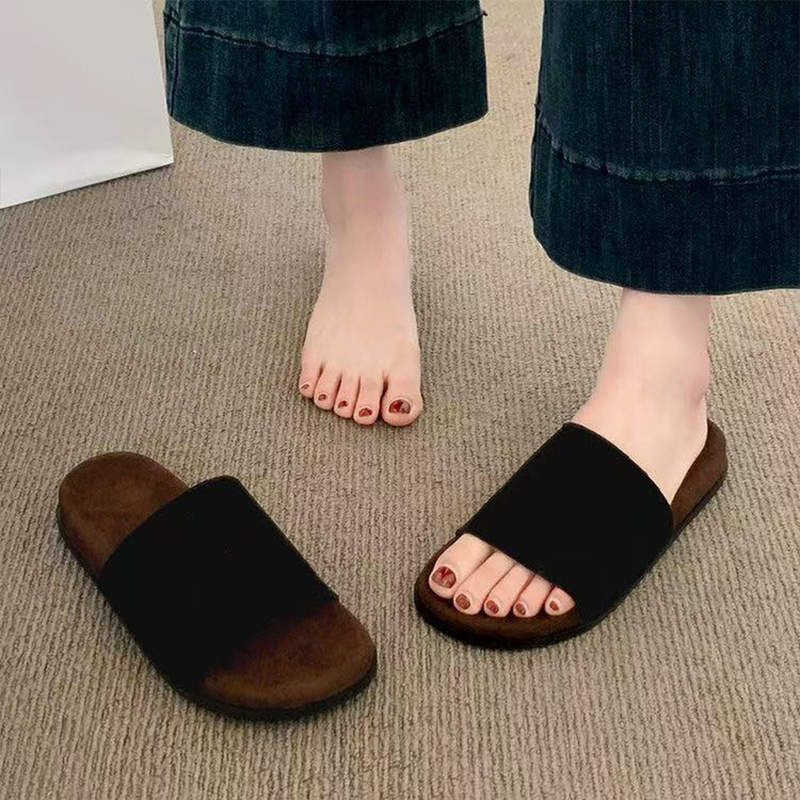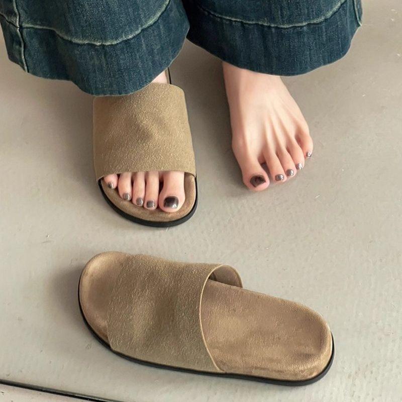 Zapatillas Versátiles Cómodas de Tacón Plano Estilo Coreano para Mujer 2025 Verano Nuevo Estilo Hada Zapatillas de Una Tira para Mujer para Exterior